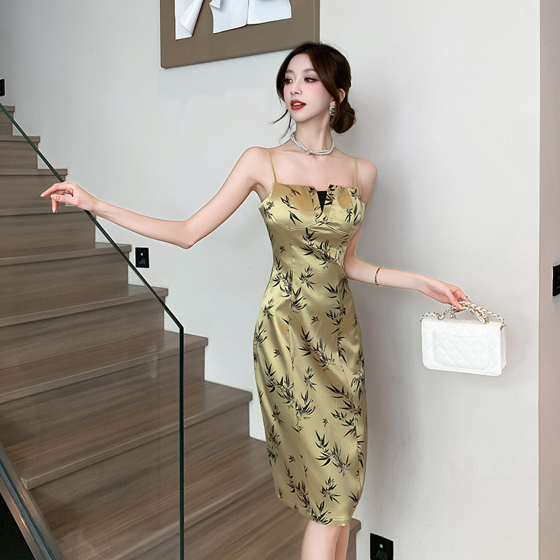 프랑스 복고풍 고급 슬림 슬링 원피스 여성의 2024 봄과 여름 새로운스토어 가기