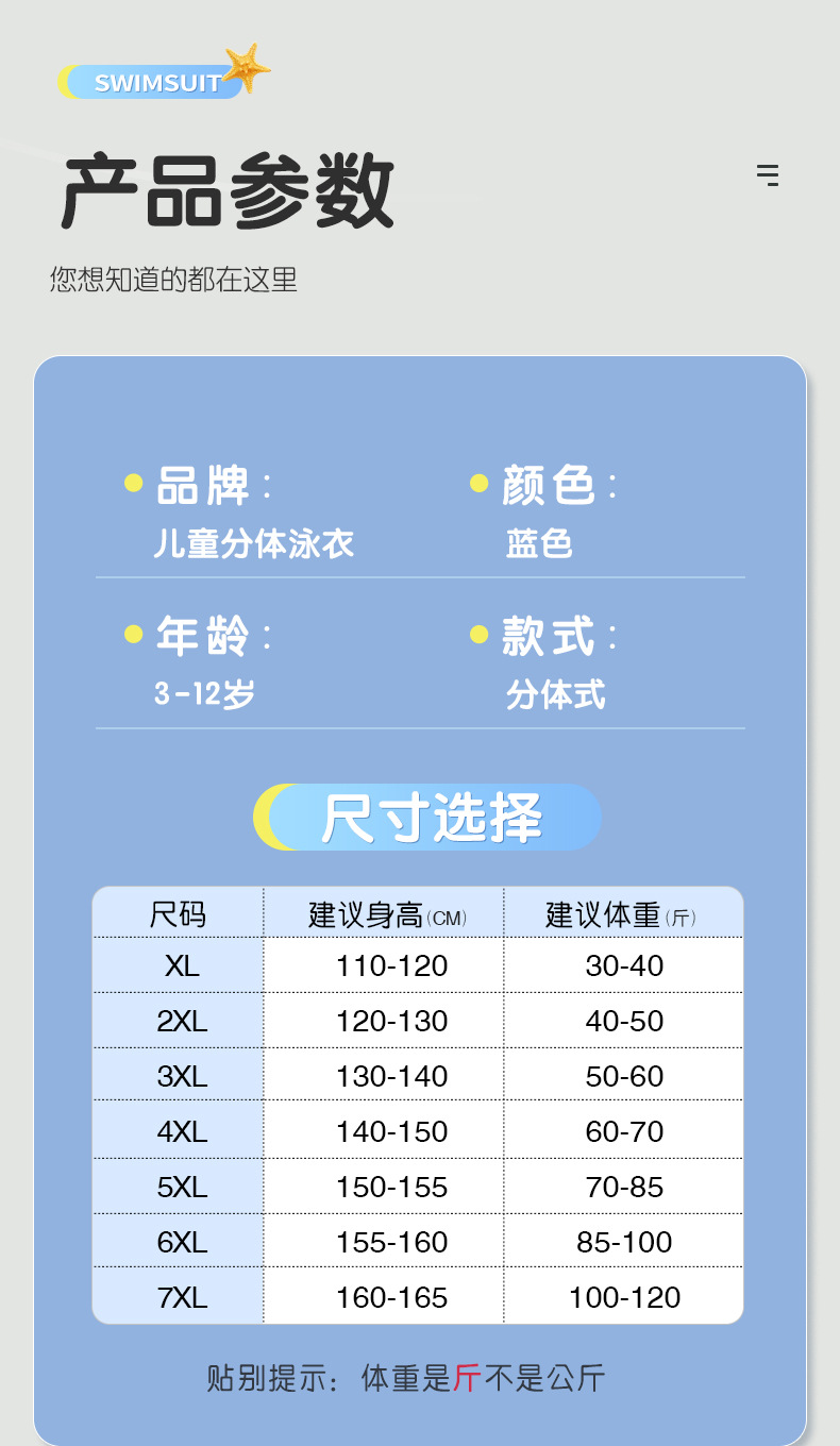 • 儿童泳衣男小中大童男孩学生游泳衣2024夏季新款宝宝分体游泳装备折扣价:¥20.0