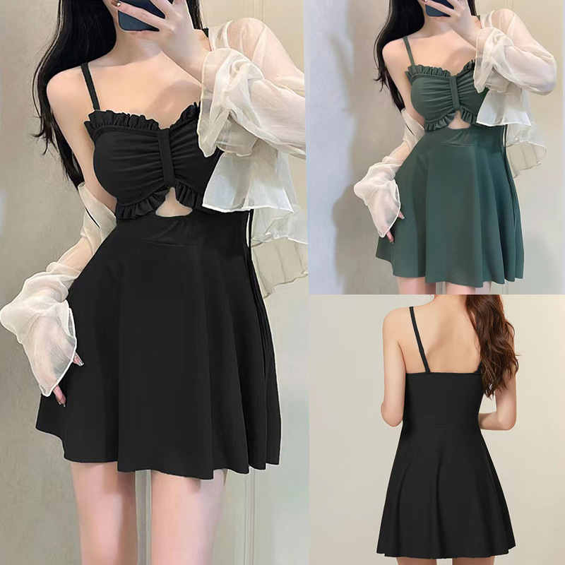 • 泳衣女连体吊带两件套防晒长袖小外套连衣裙保守温泉泳装显瘦度假折扣价:¥18.5