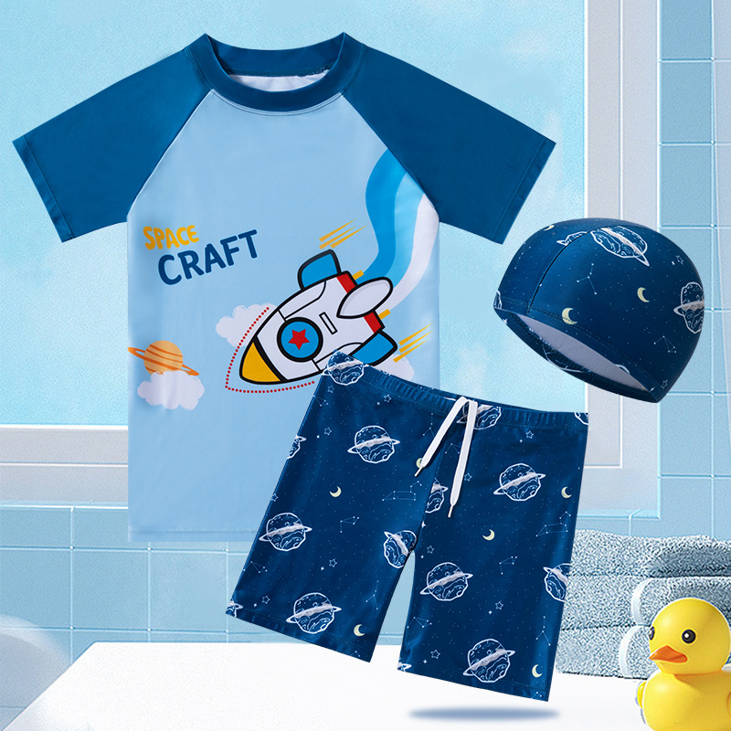 • 파란색 작은 우주선 3 피스 세트 (수영 모자 플러스)