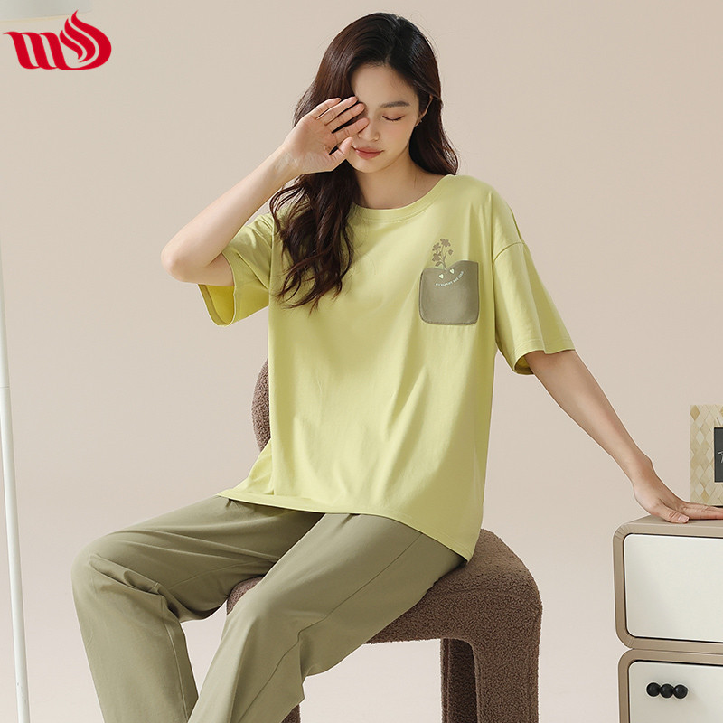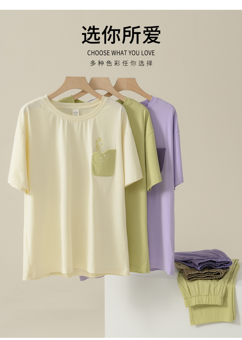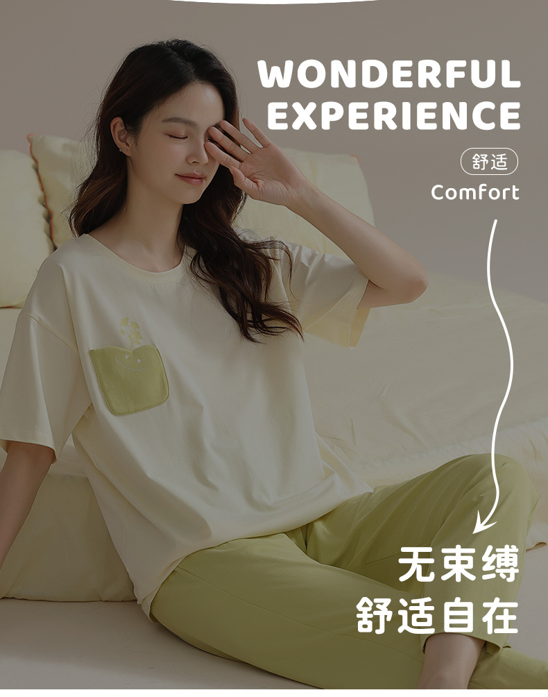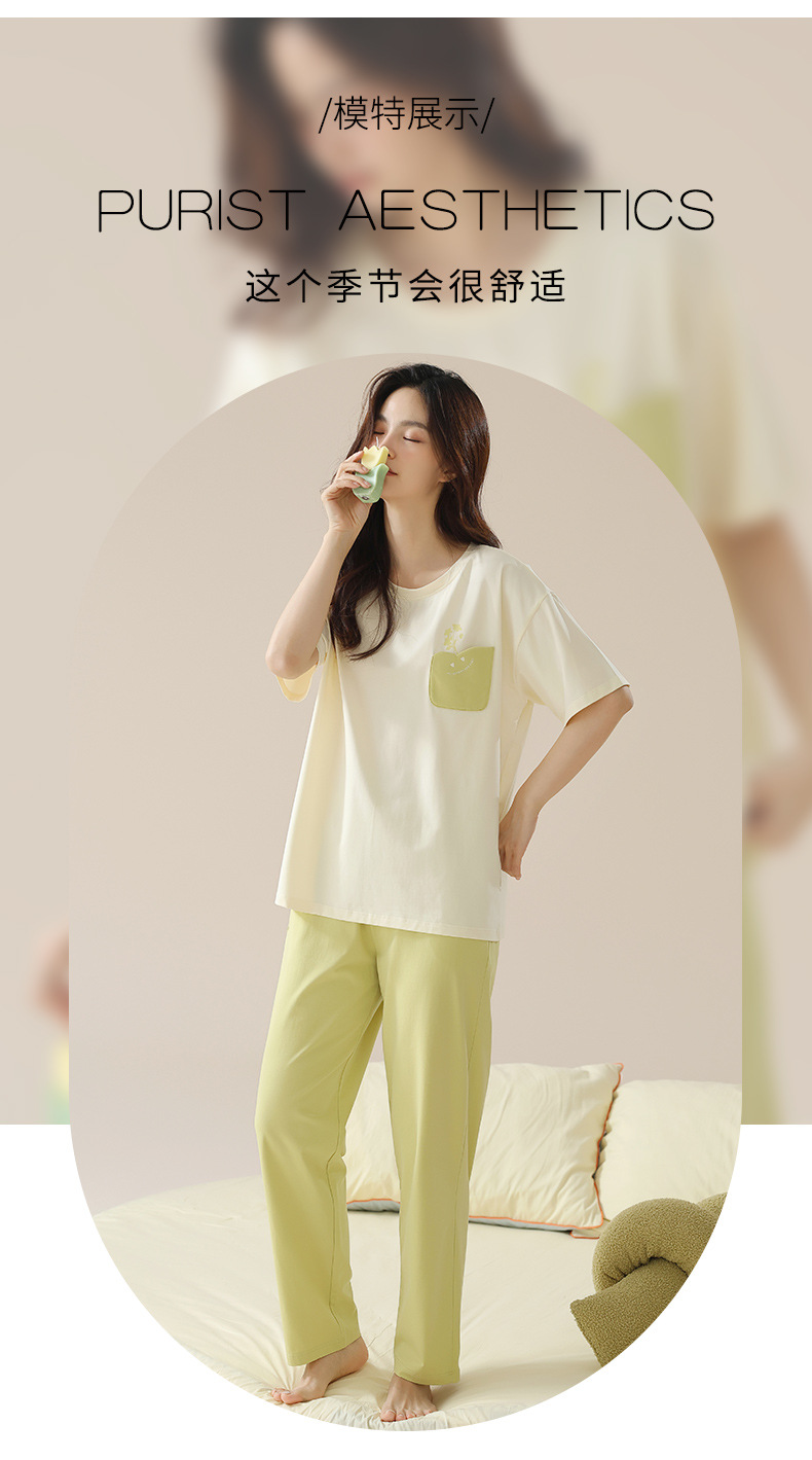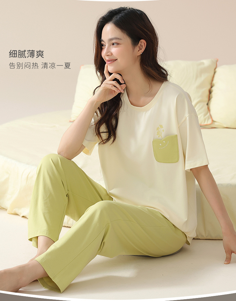 Longshijia 여름 Lycra 코튼 파자마 여성의 얇은 간단한 캐주얼 스타일 홈웨어 통기성 시원한 느낌 Lycra Cotton스토어 가기