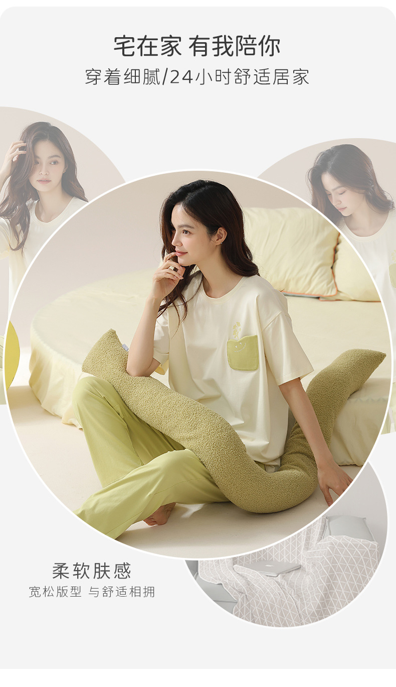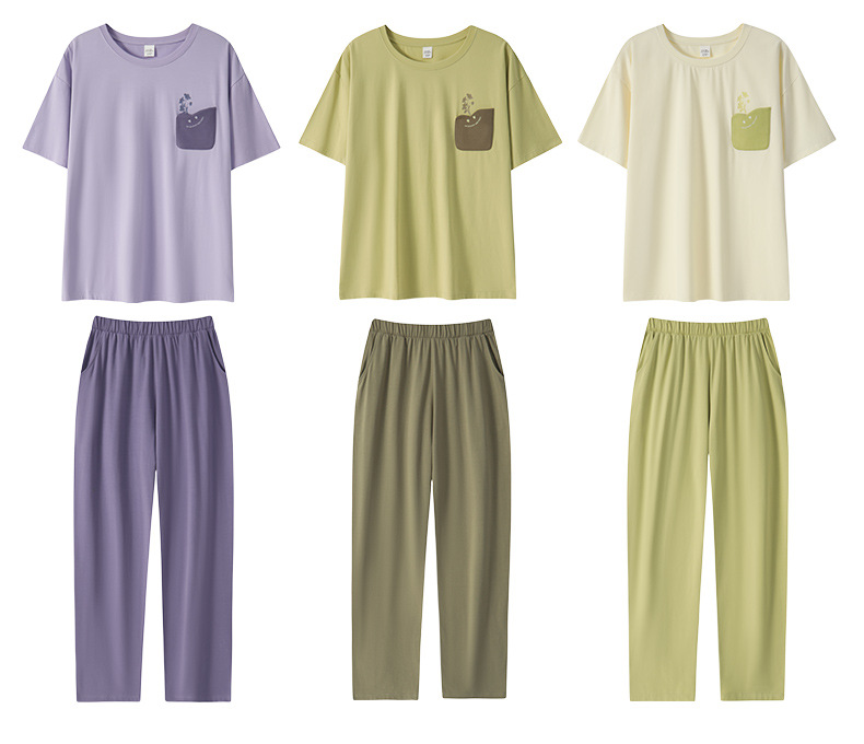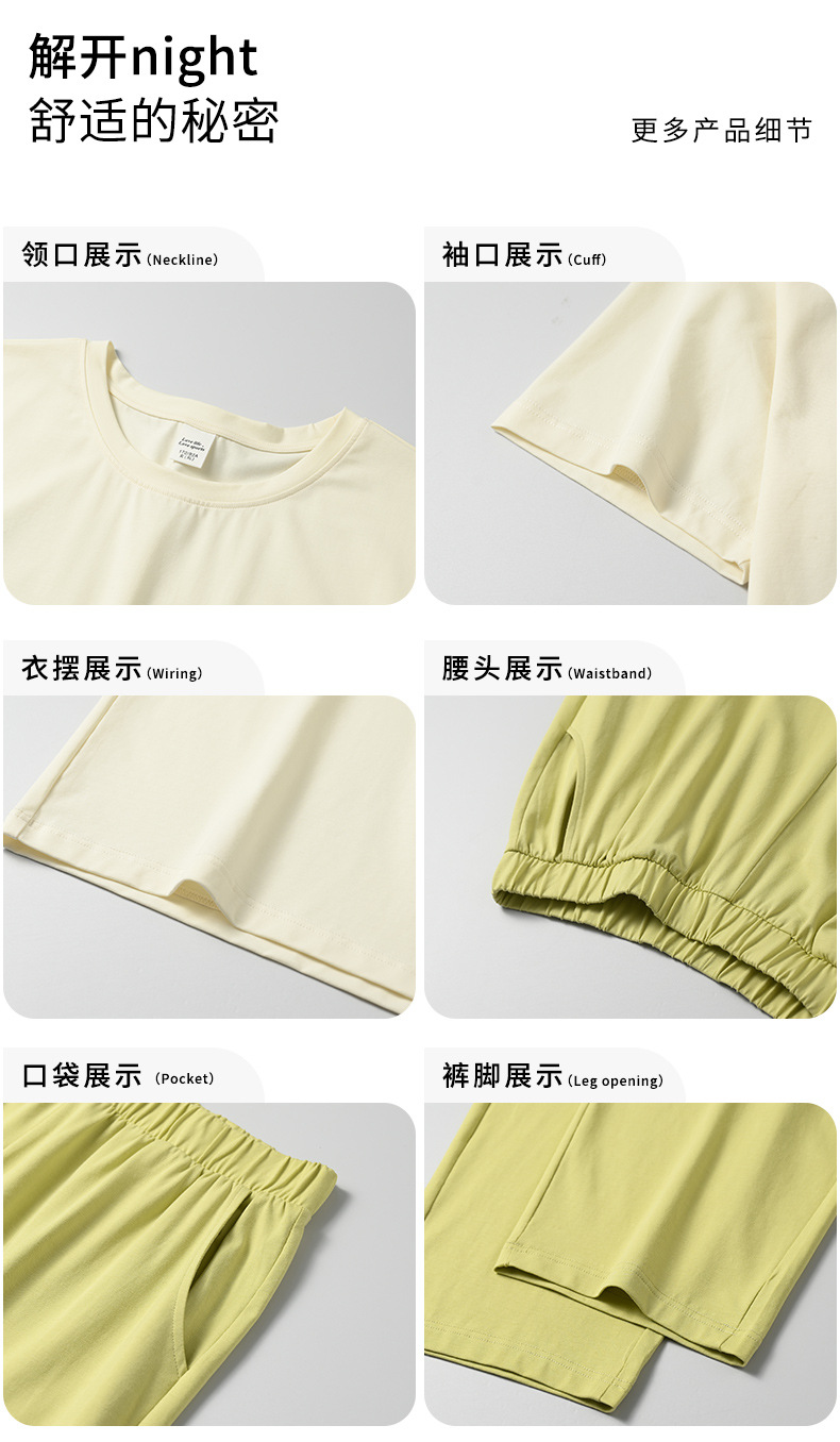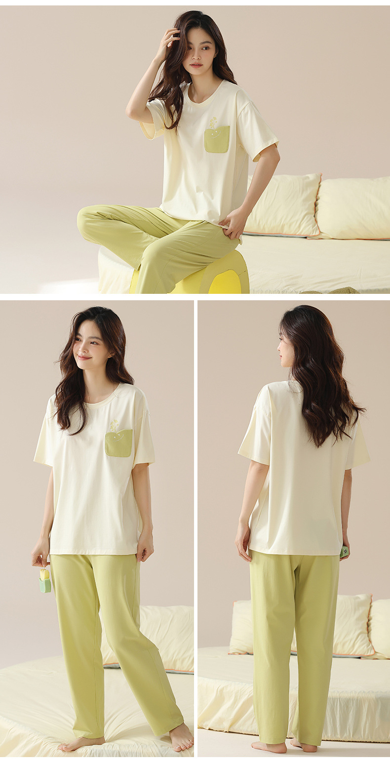 Longshijia 여름 Lycra 코튼 파자마 여성의 얇은 간단한 캐주얼 스타일 홈웨어 통기성 시원한 느낌 Lycra Cotton스토어 가기