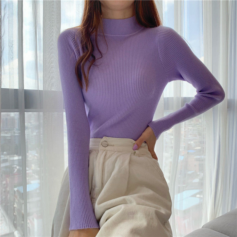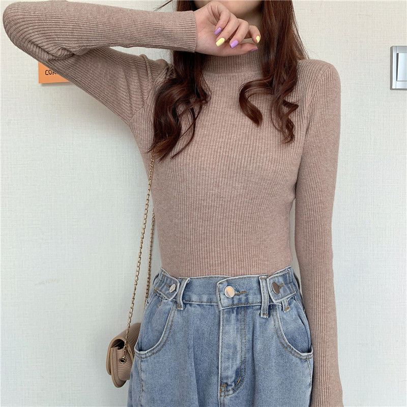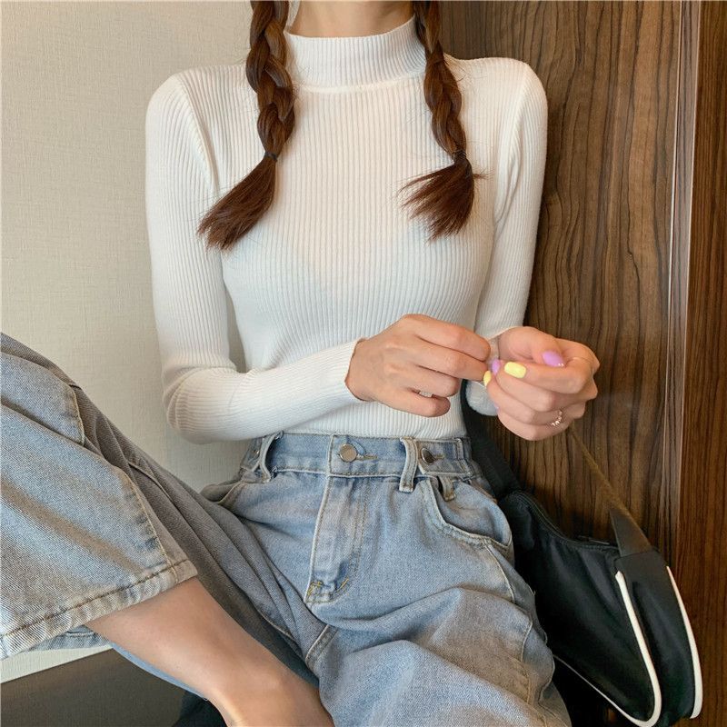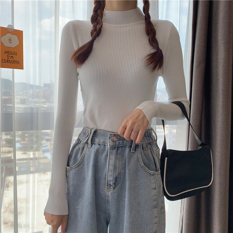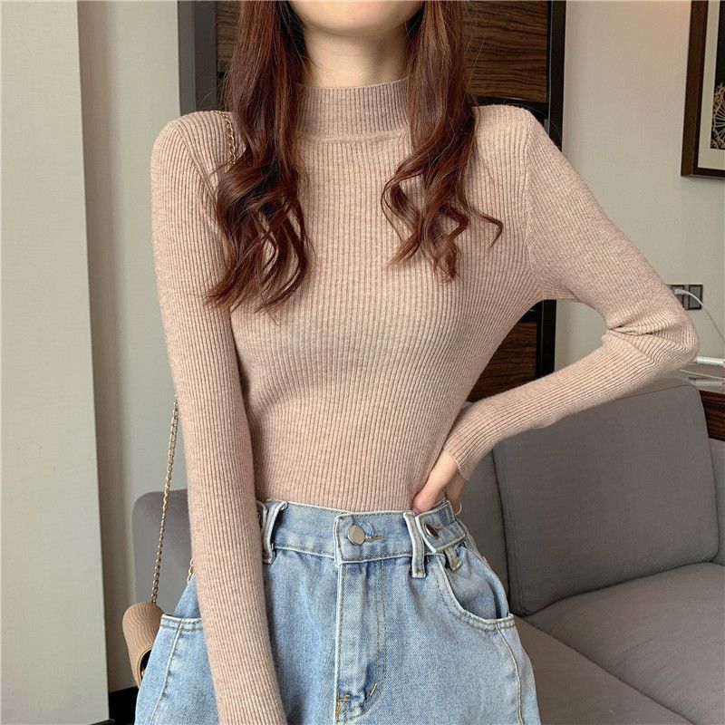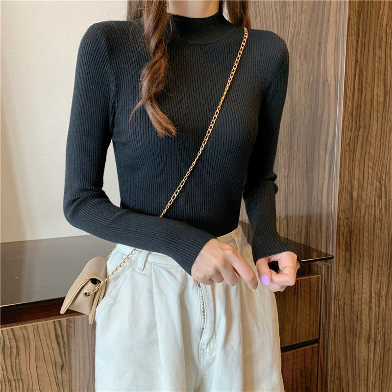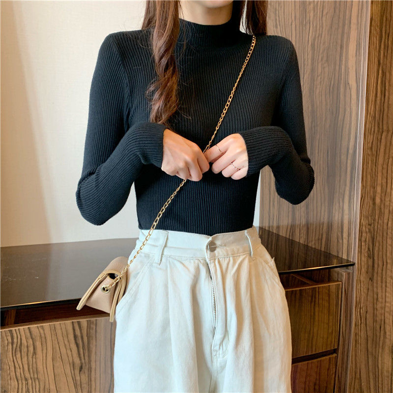여성용 블랙 니트 미드 칼라 바닥 셔츠, 가을 겨울 2025 새로운 패션 스타일 슬림 하프 터틀넥 스웨터스토어 가기
