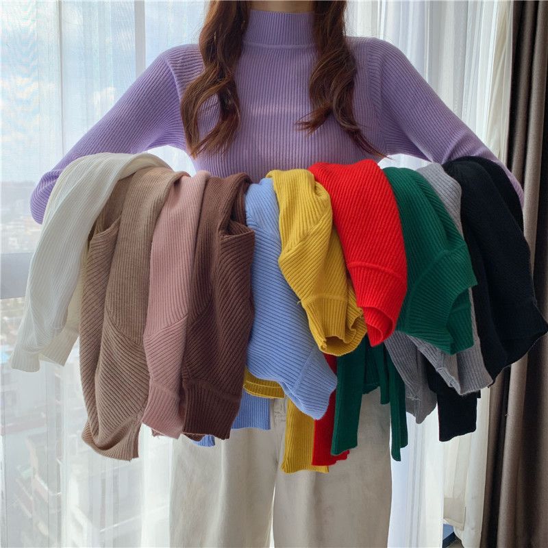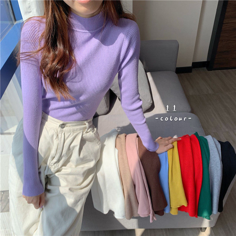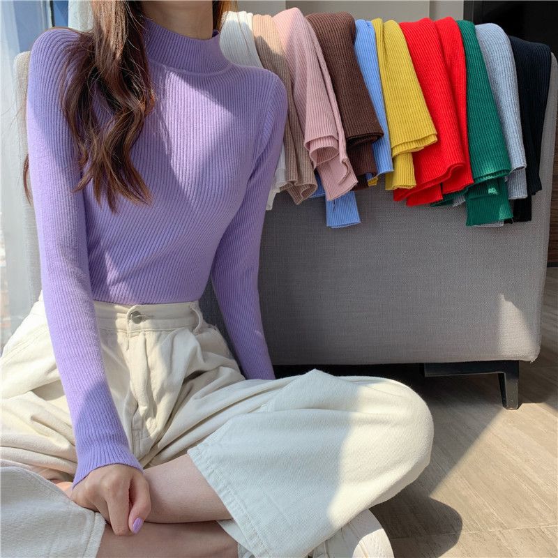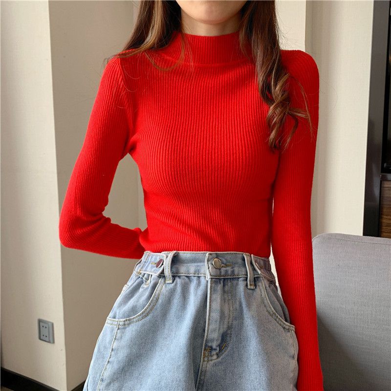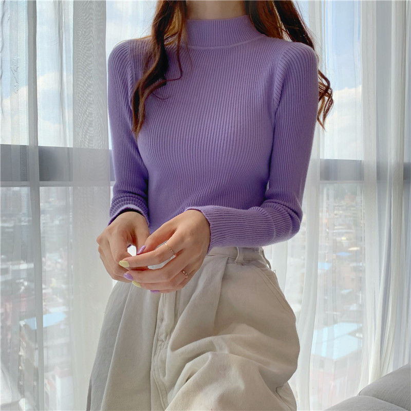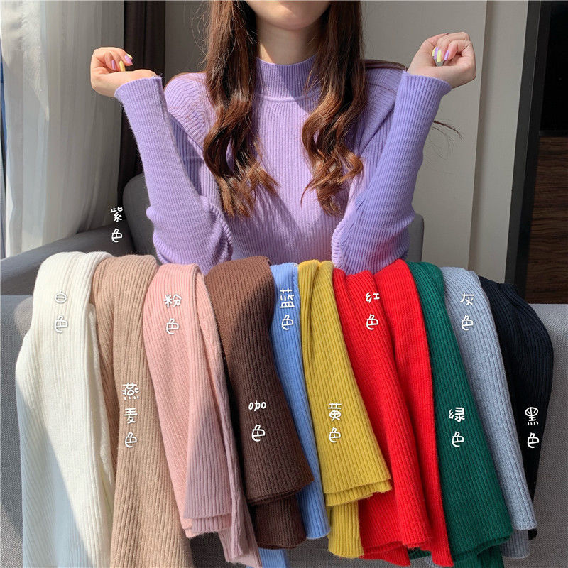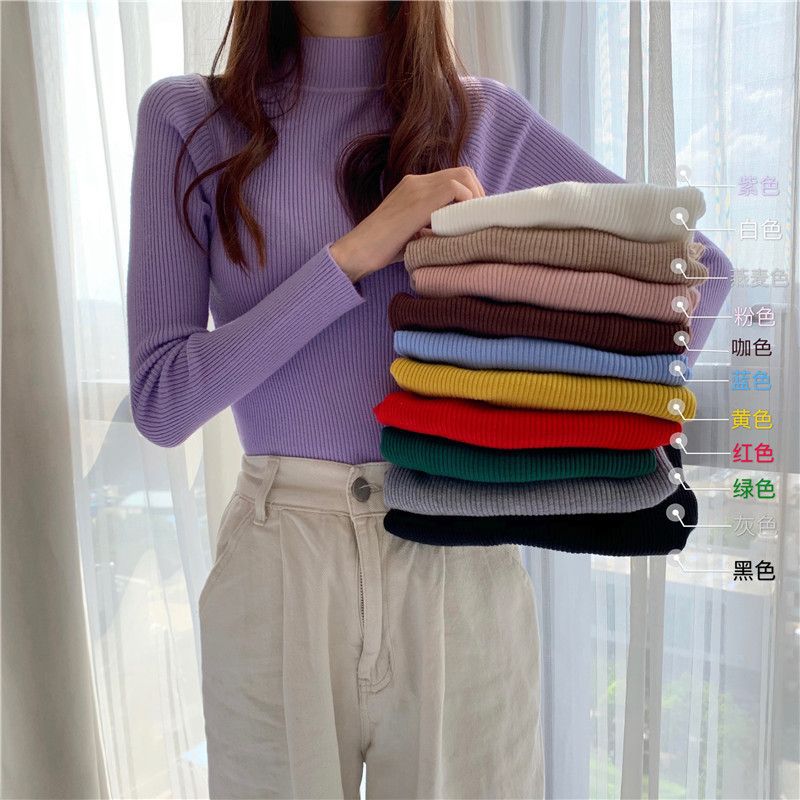 여성용 블랙 니트 미드 칼라 바닥 셔츠, 가을 겨울 2025 새로운 패션 스타일 슬림 하프 터틀넥 스웨터스토어 가기