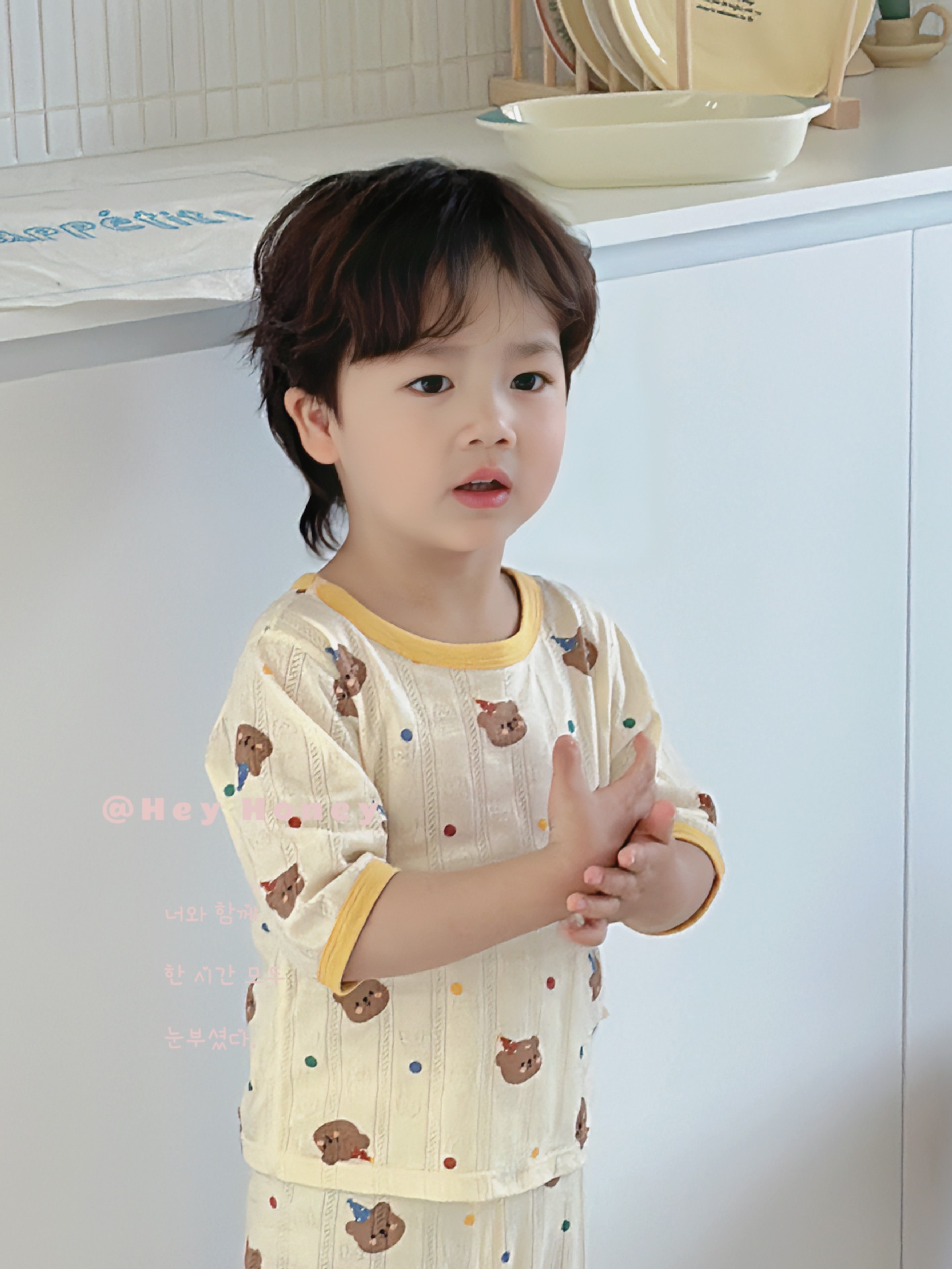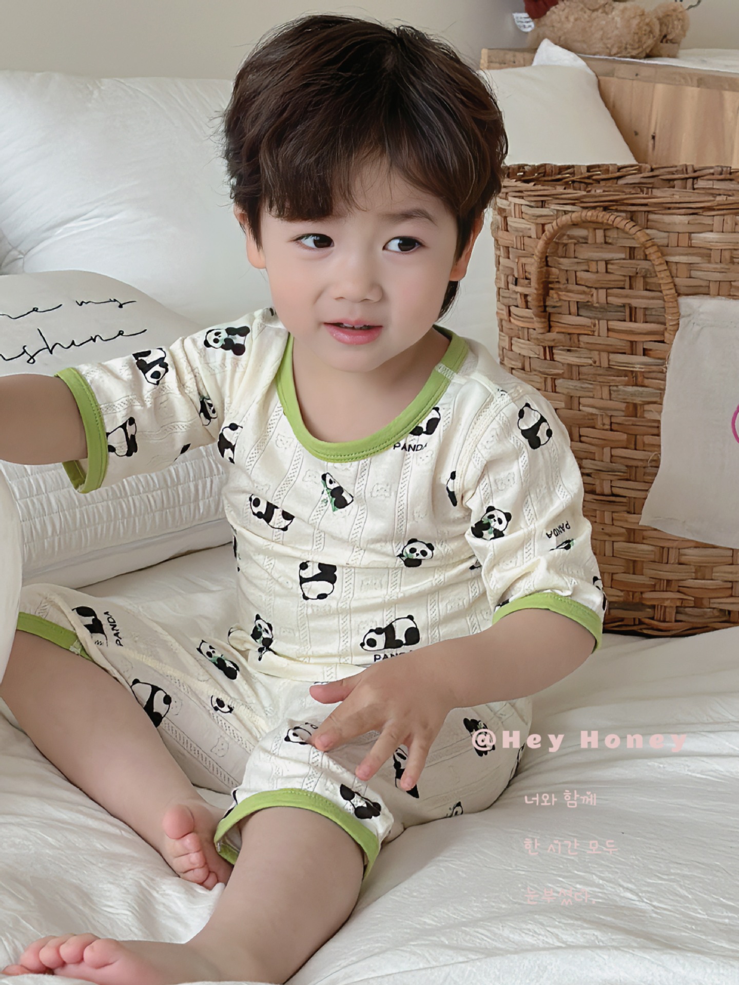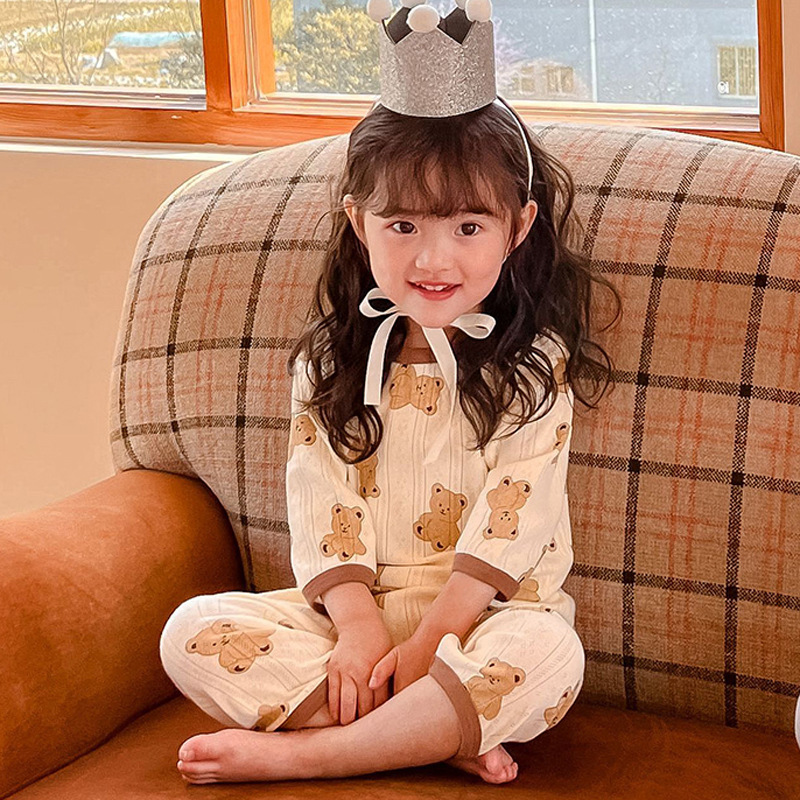 2025 새로운 어린이 잠옷 면화 여름 얇은 소년과 소녀 홈 옷 세트 7 소매 만화 에어컨 옷스토어 가기