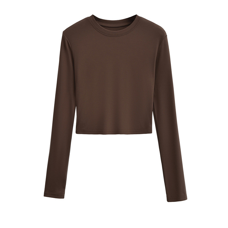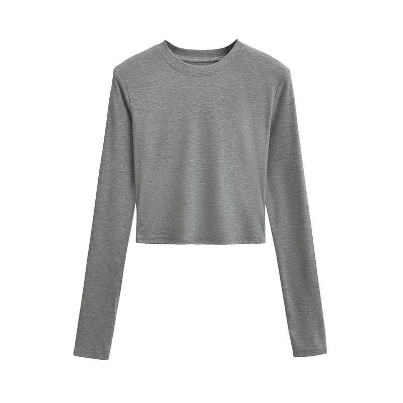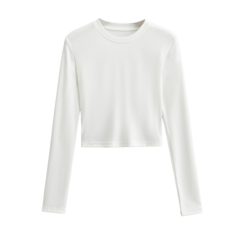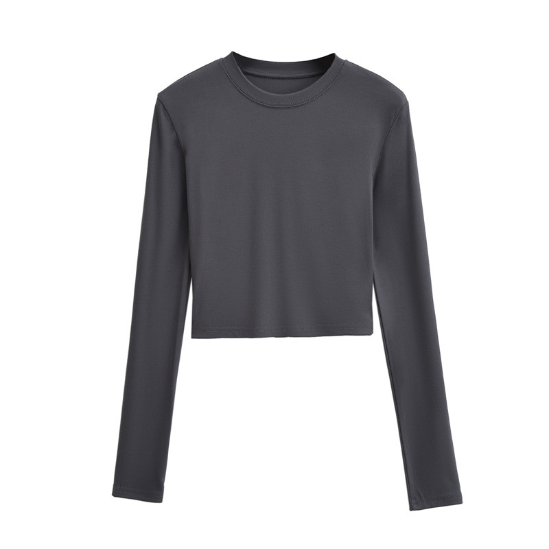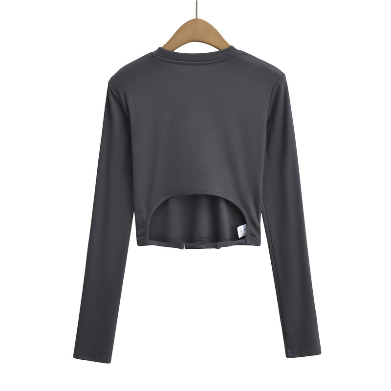 순수한 욕망 스타일 둥근 목 긴 소매 짧은 배꼽 긴 소매 티셔츠 봄 여성을위한 새로운 슬림 백리스 레이스 업 핫 걸 탑