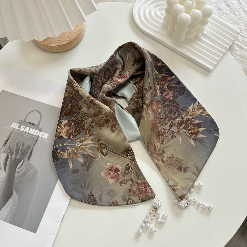 여성용 구슬 양면 작은 스카프 얇은 좁은 긴 올 매치 스카프 세트 셔츠 봄 얇은 장식 스카프 헤어 밴드스토어 가기