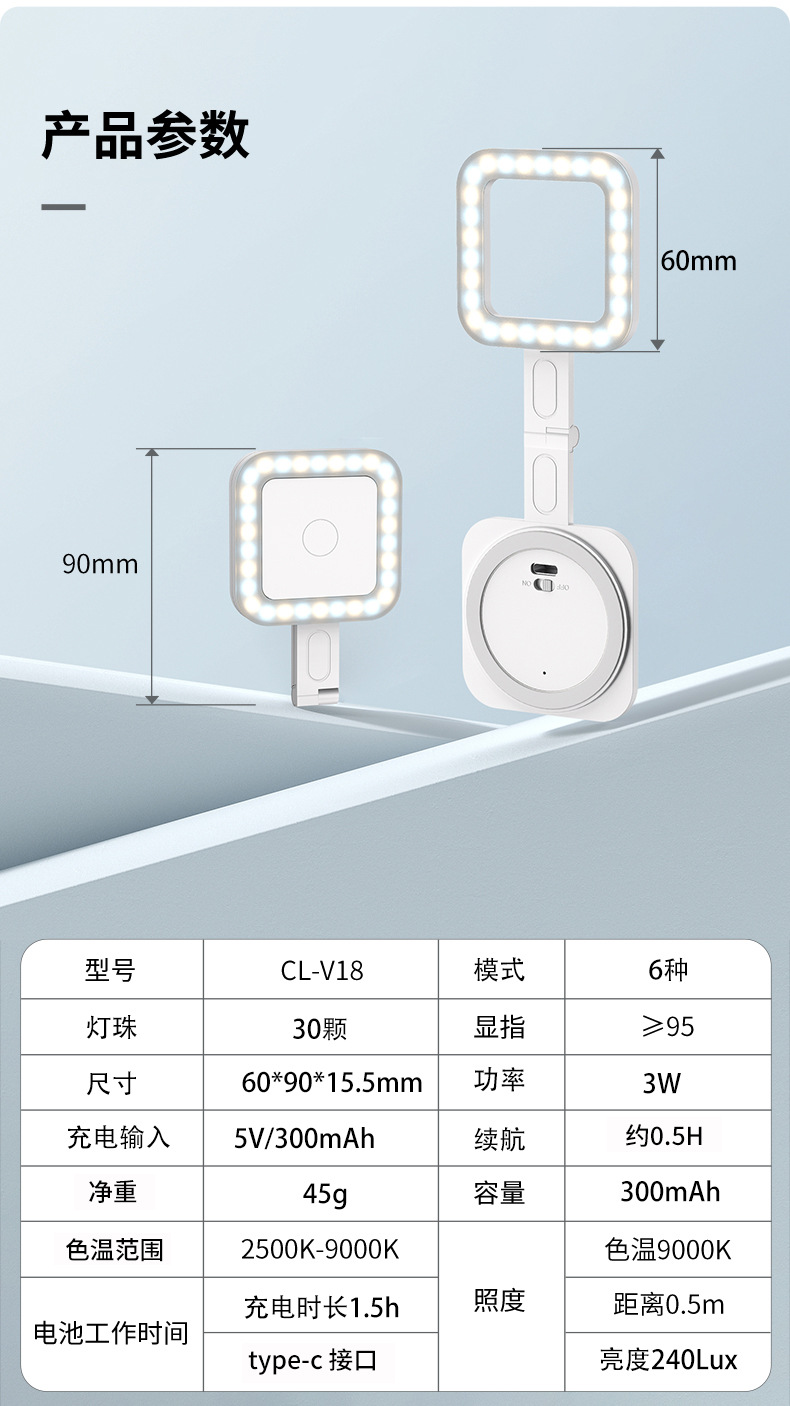 국경 간 TIKTOK 아마존 마그네틱 채우기 빛 휴대 전화 채우기 라이트 스퀘어 포켓 라이트 뷰티 셀카 채우기 조명스토어 가기