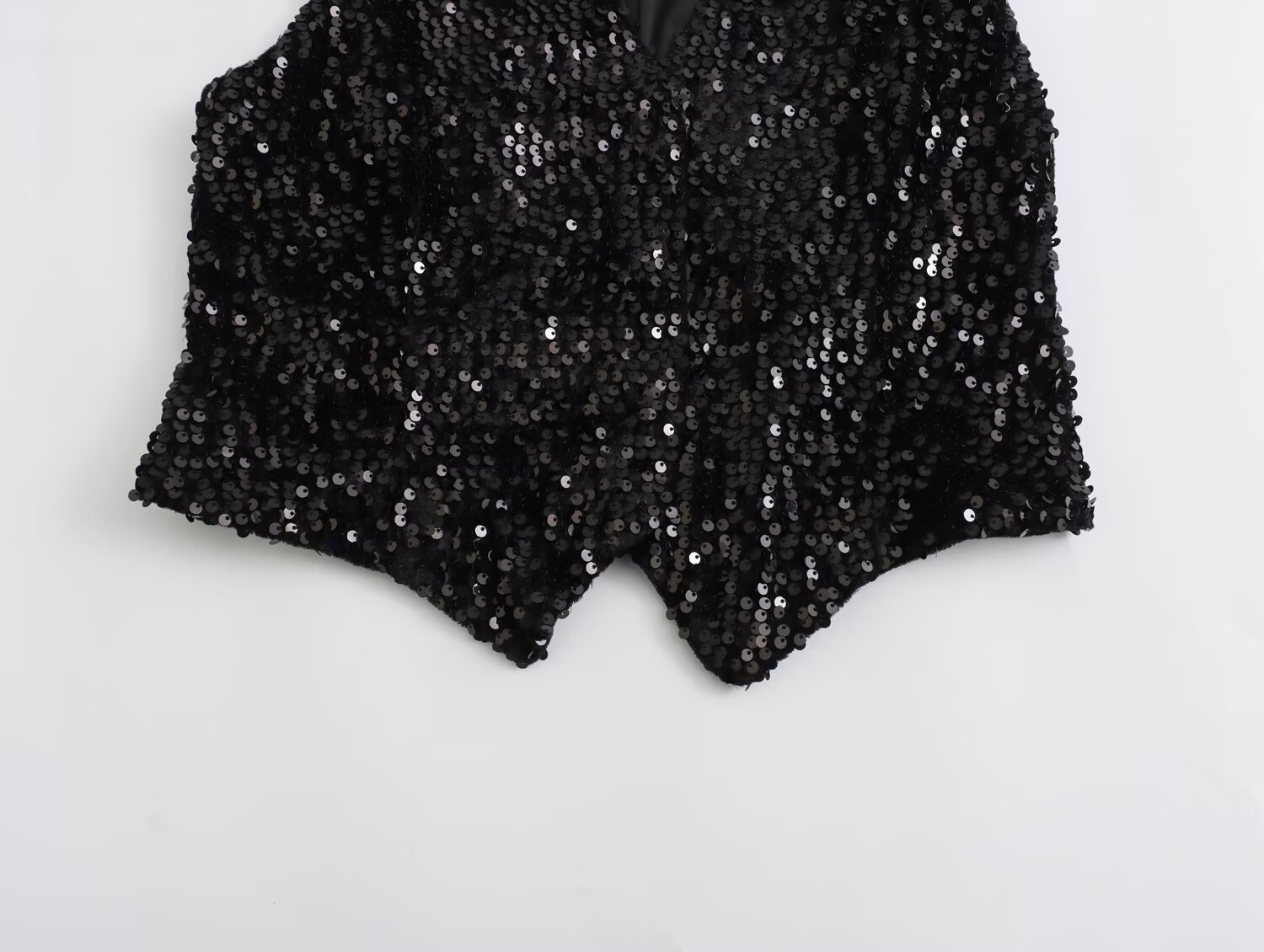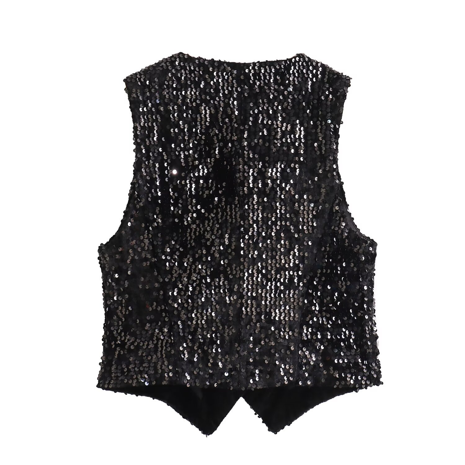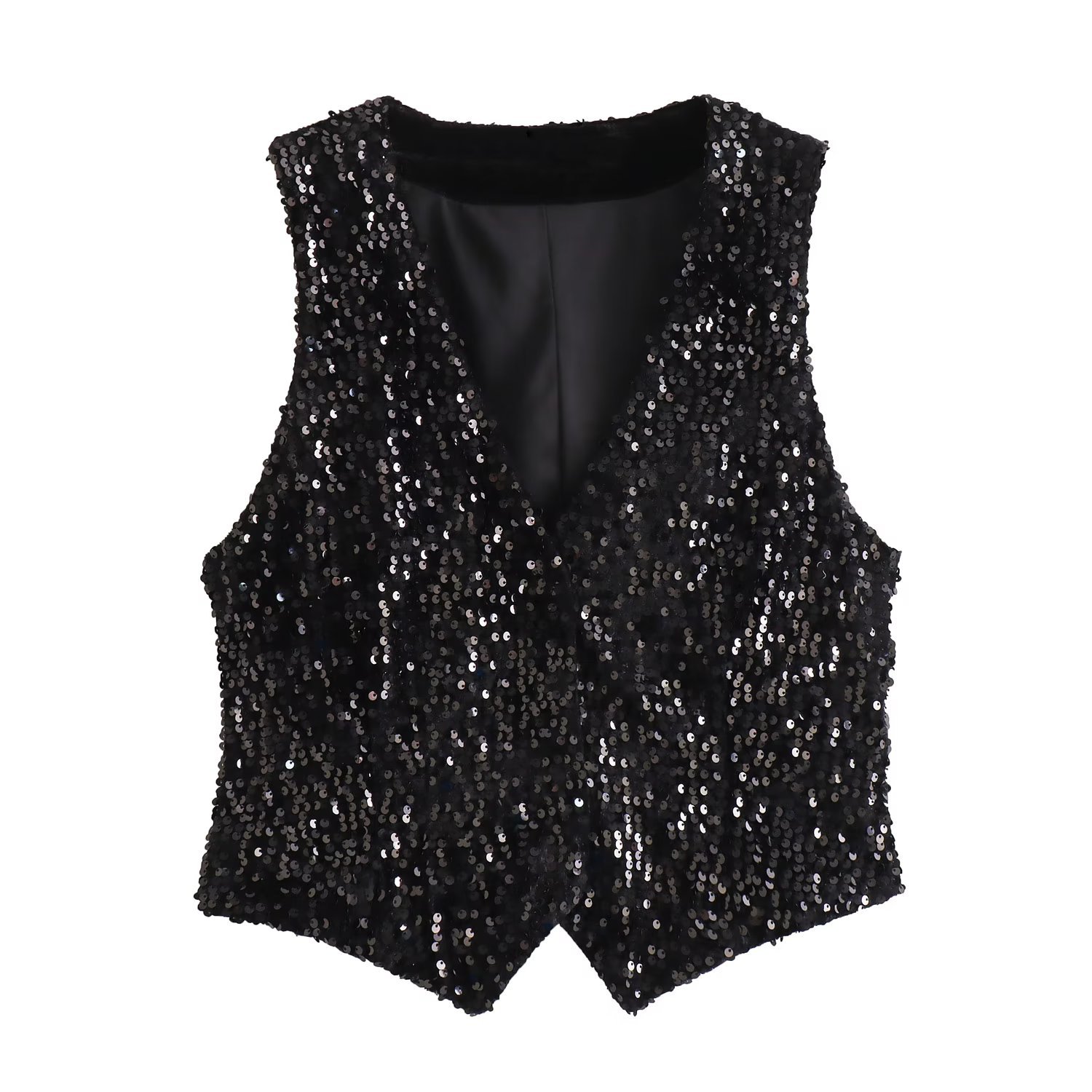 2024 봄 새로운 유럽과 미국의 국경 간 여성 의류 스트리트 패션 V-넥 스팽글 꽉 V-넥 슬림 조끼