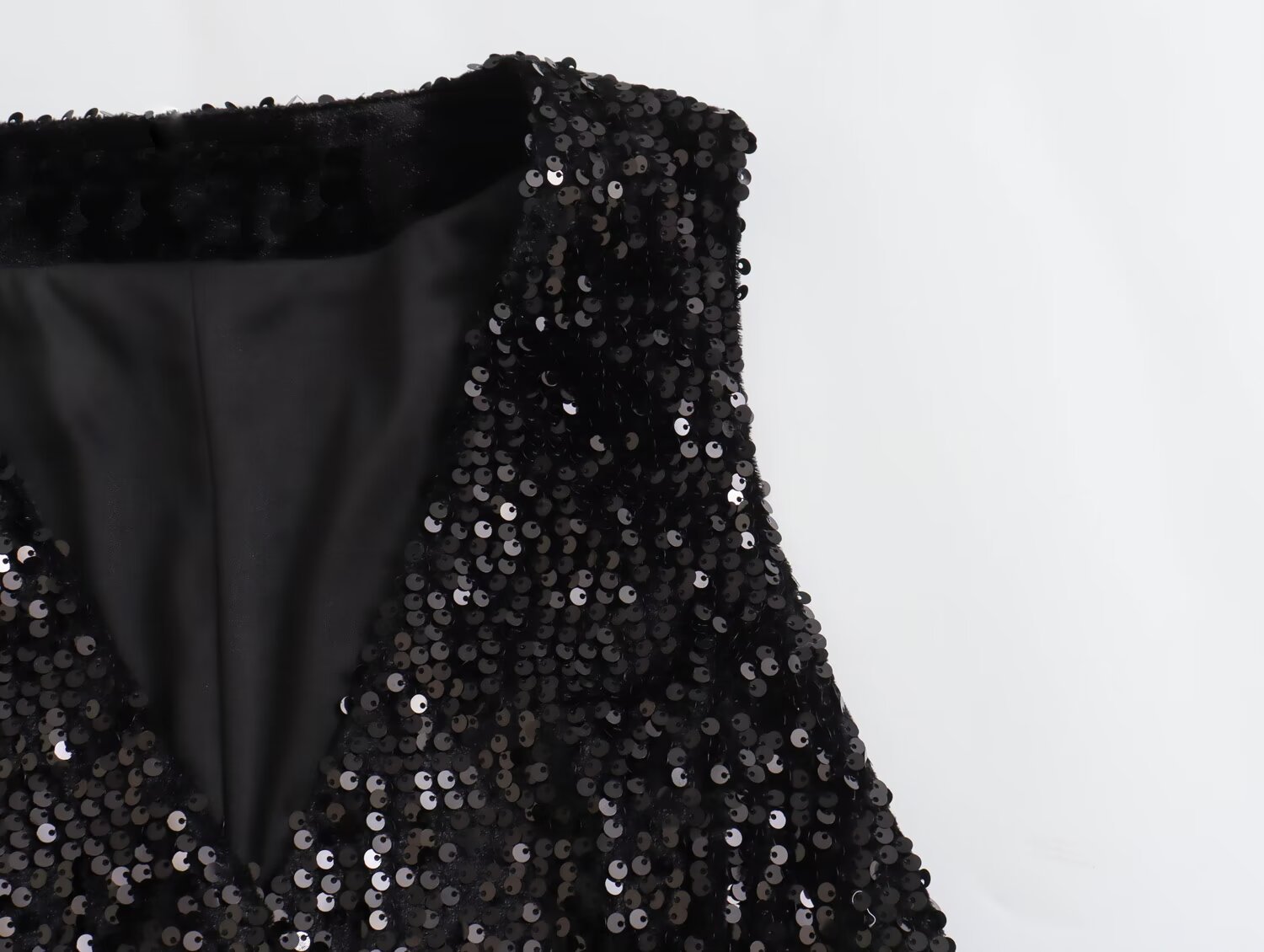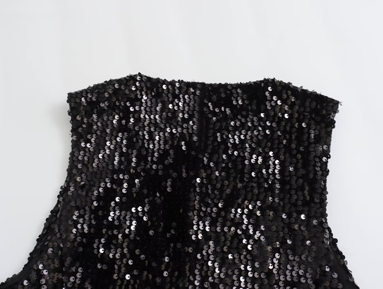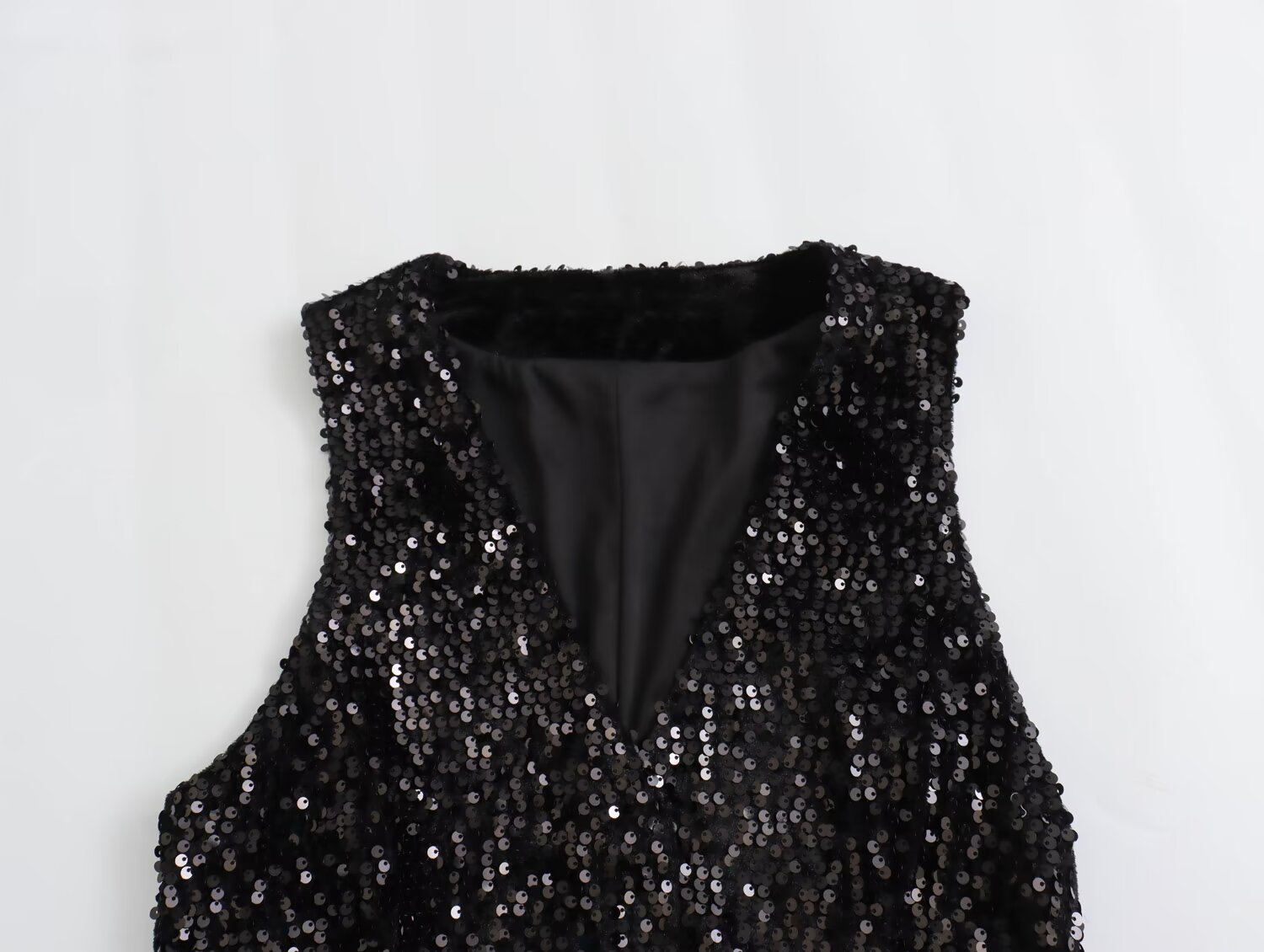 2024 봄 새로운 유럽과 미국의 국경 간 여성 의류 스트리트 패션 V-넥 스팽글 꽉 V-넥 슬림 조끼