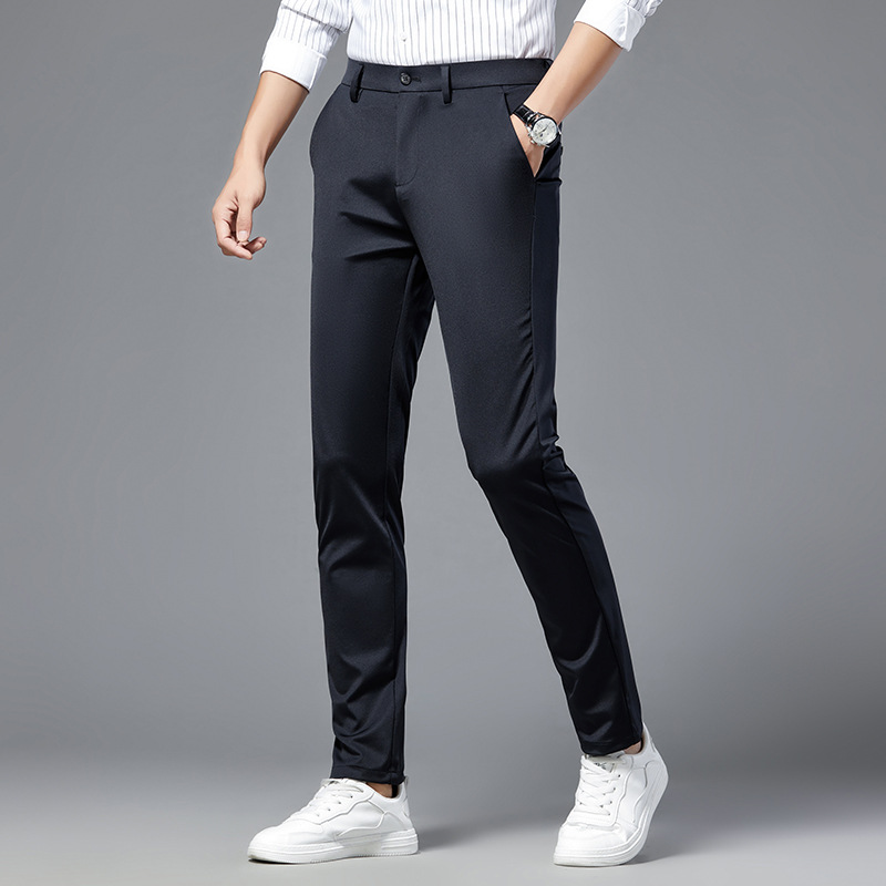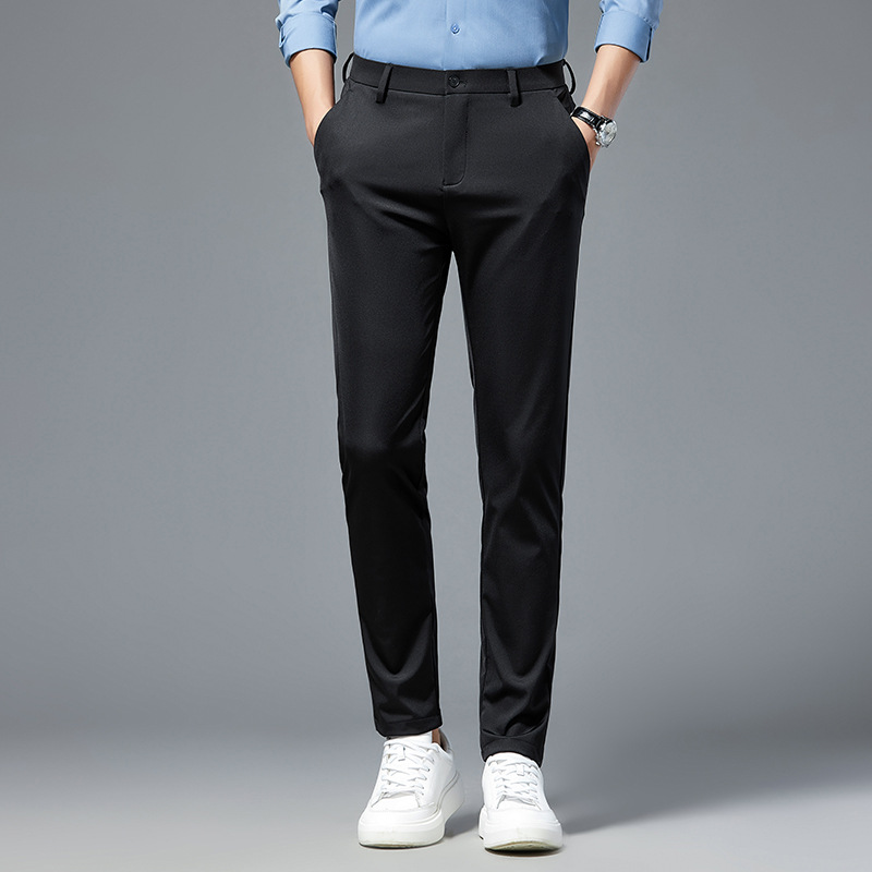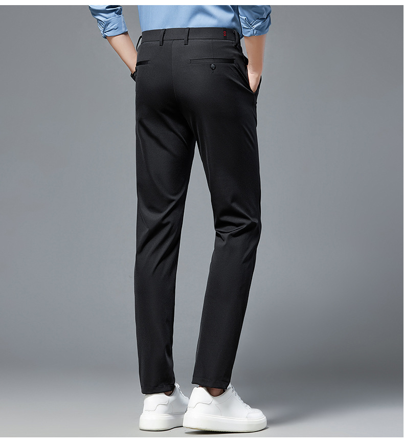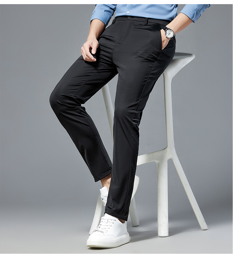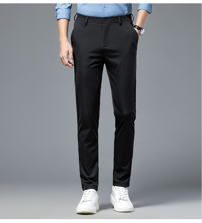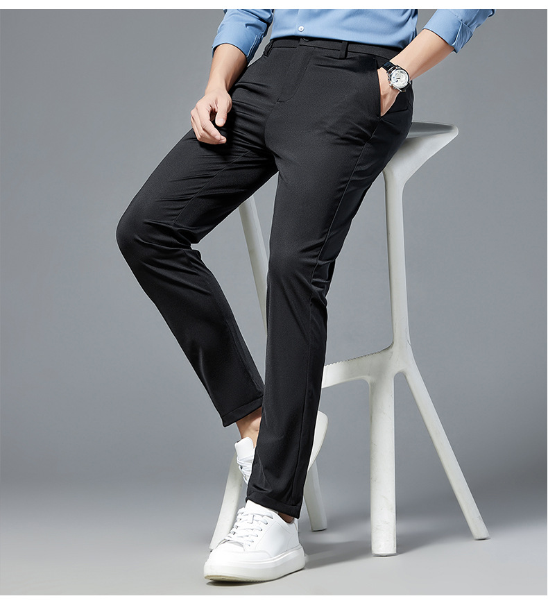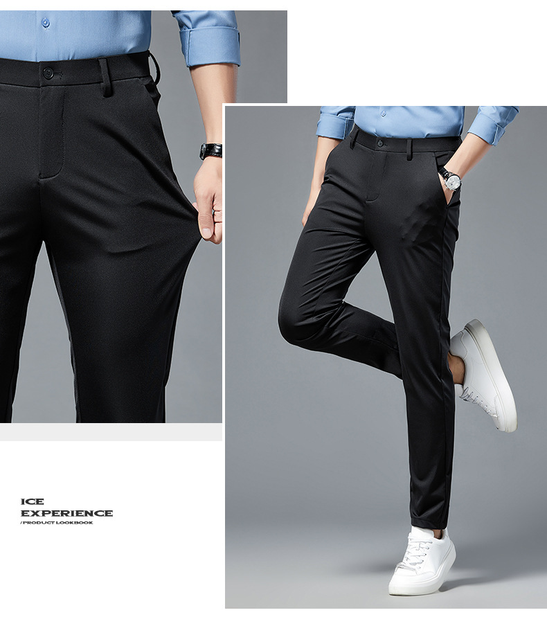 남성 캐주얼 바지 여름 얇은 아이스 실크 스트레치 비즈니스 세트 바지 단색 스트레이트 바지 남성 패션 새로운 바지스토어 가기