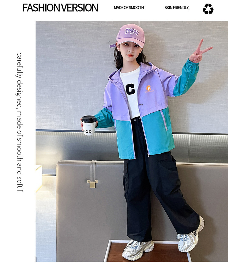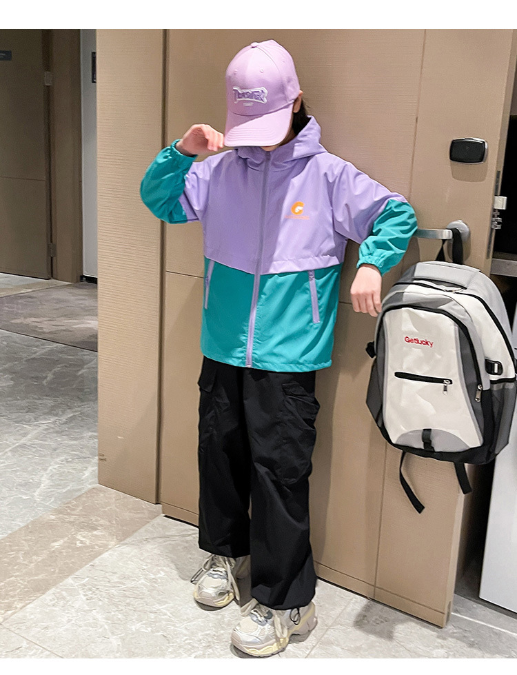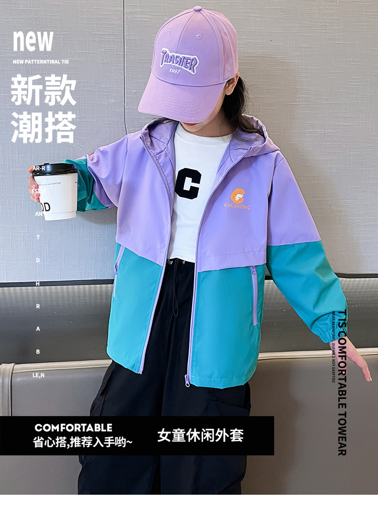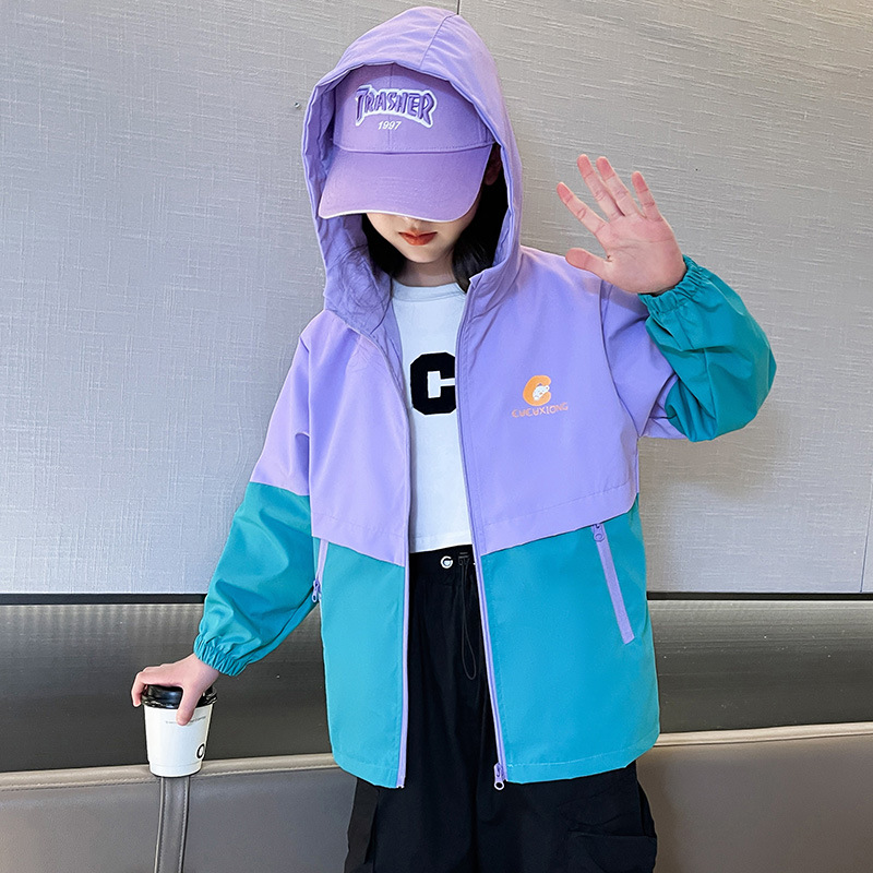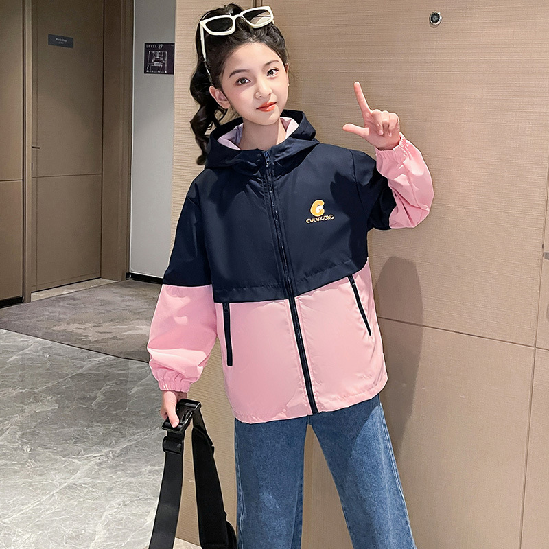 국경 간 아동 의류 아동 방풍 재킷 소년 봄, 가을 의류 2025 새로운 중대형 아동 재킷 소녀 후드 재킷