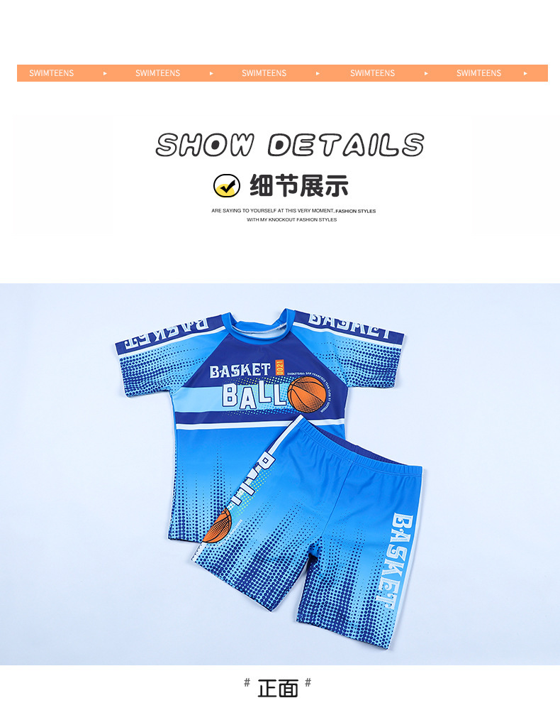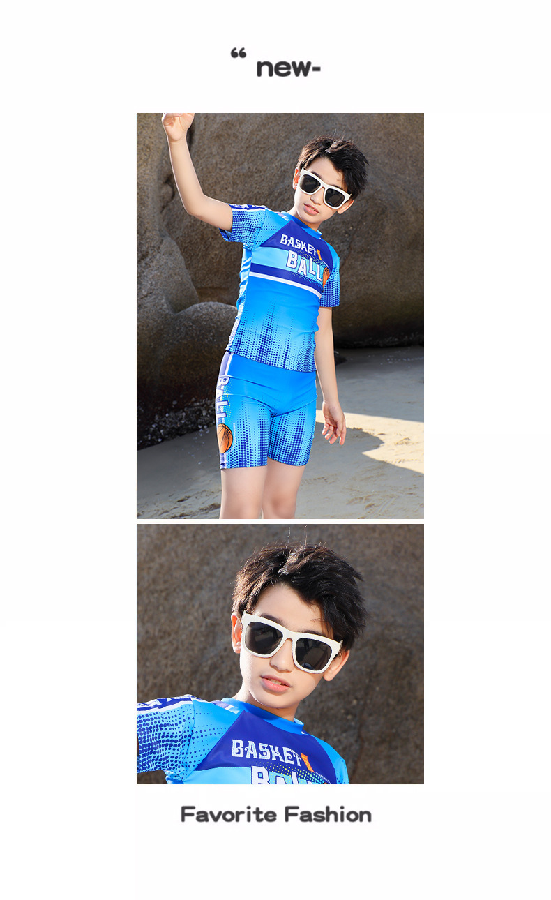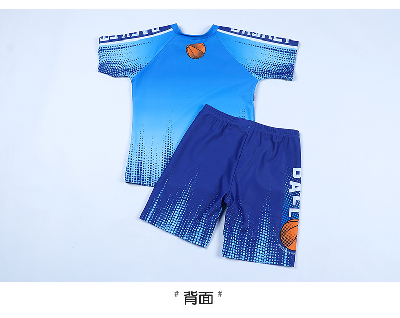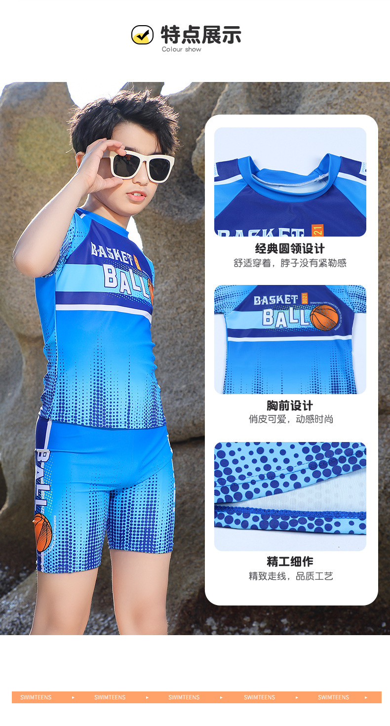 국경 간 대외 무역 어린이 수영복 새로운 중형 및 대형 어린이 뚱뚱한 소년 분할 반소매 권투 선수 서핑 청소년 수영복