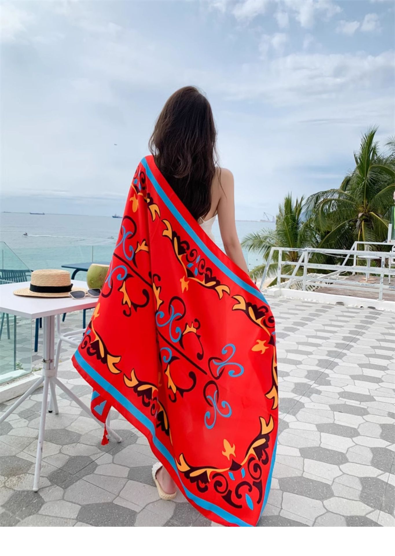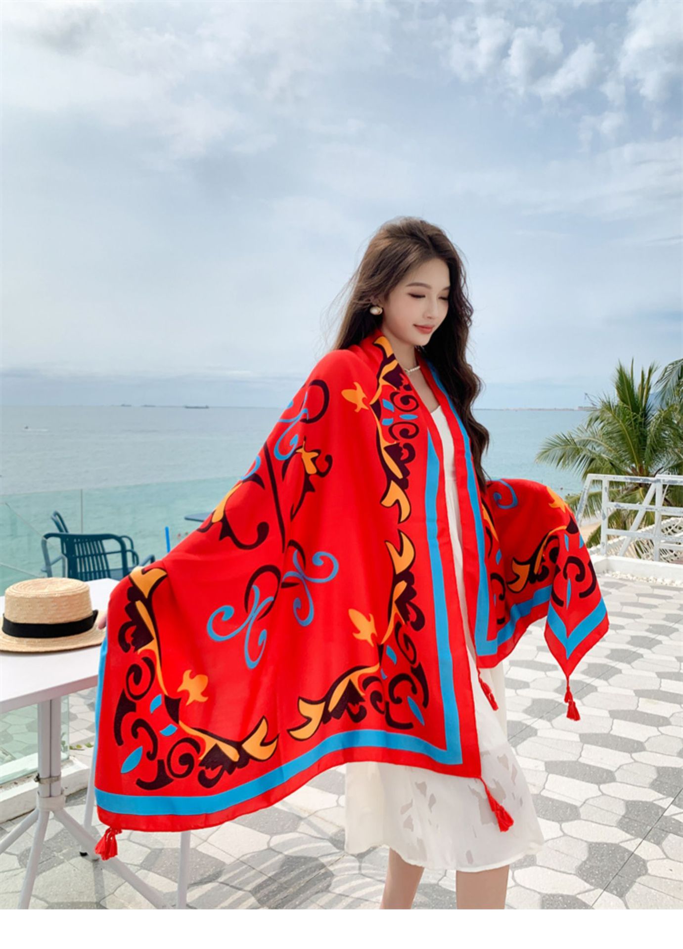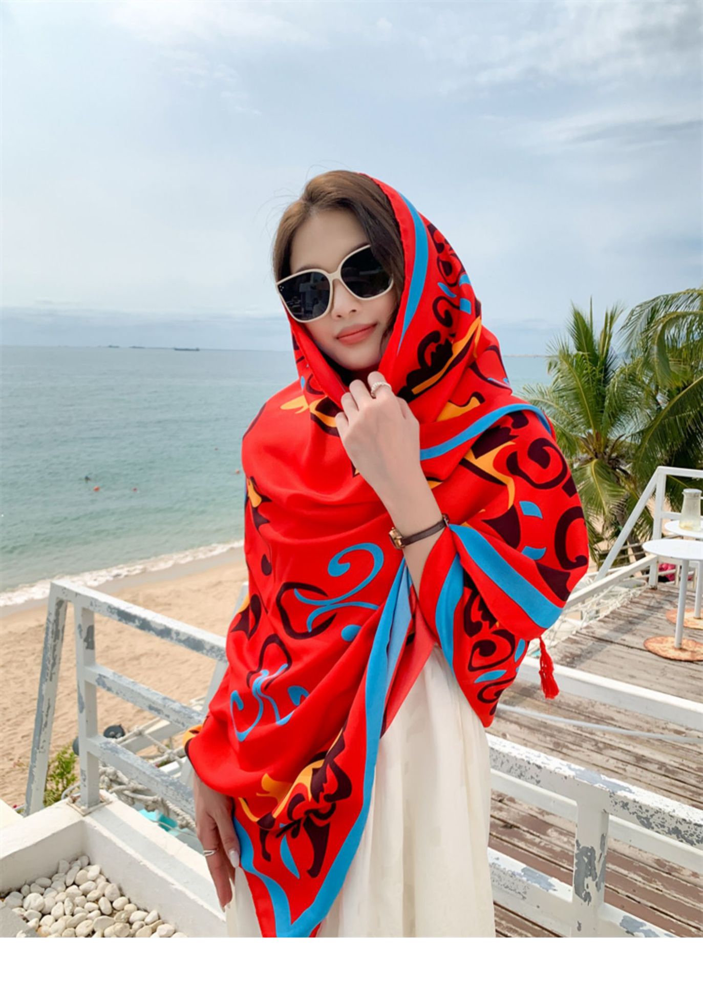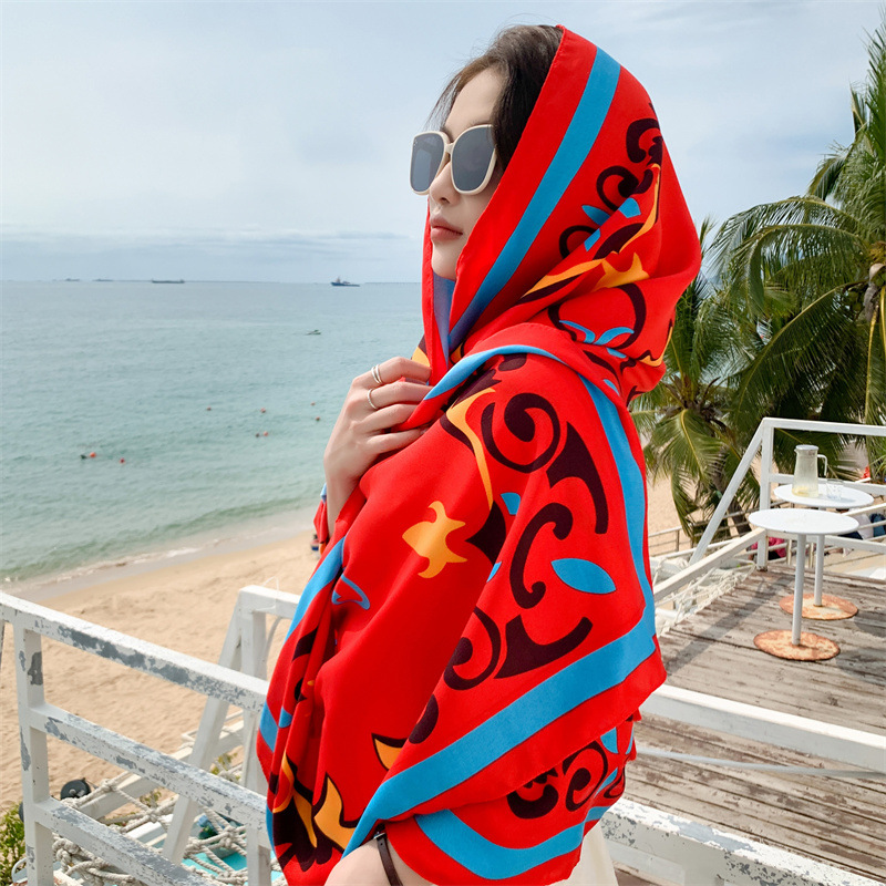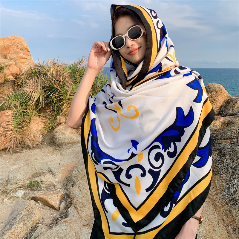 흰색 목도리 여름 얇은 야외 해변 스카프 실크 스카프 자외선 차단제 Yunnan Lijiang Sanya 해변 여행복