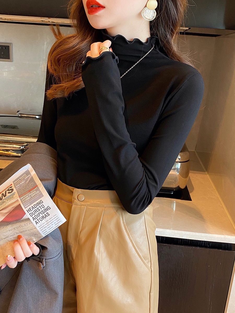 하이 엔드 하프 터틀넥 바닥 셔츠 여성 내부 스웨터 여성의 가을과 겨울 2024 새로운 고급 나무 귀 미드 칼라 여성 의류스토어 가기