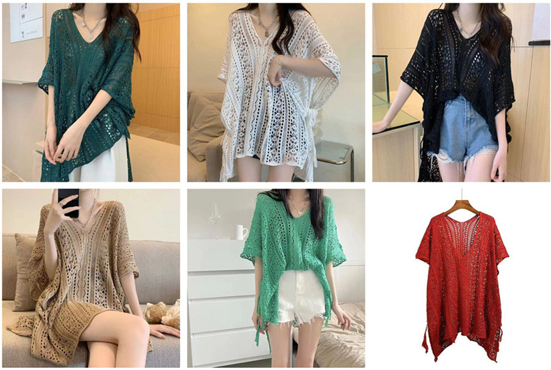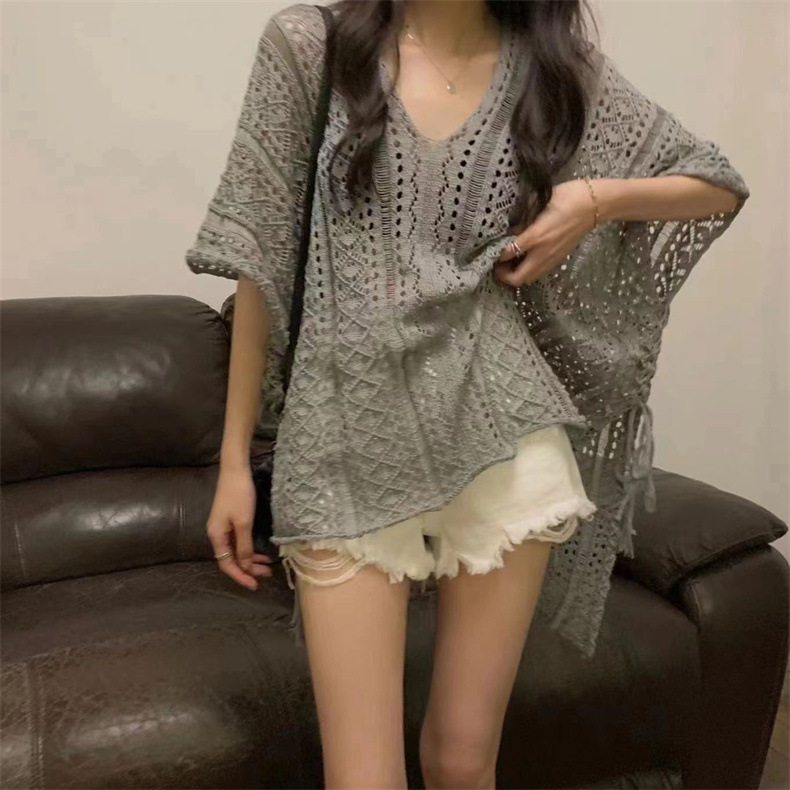 봄 얇은 스웨터 느슨한 한국 스타일 2024 새로운 여성 서양식 바닥 최고 여성 레이스 속이 빈 스웨터스토어 가기