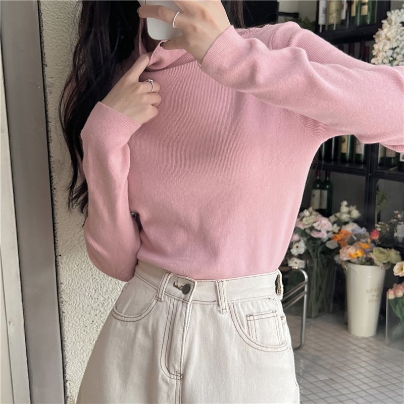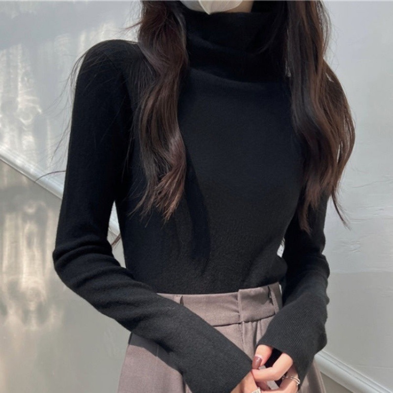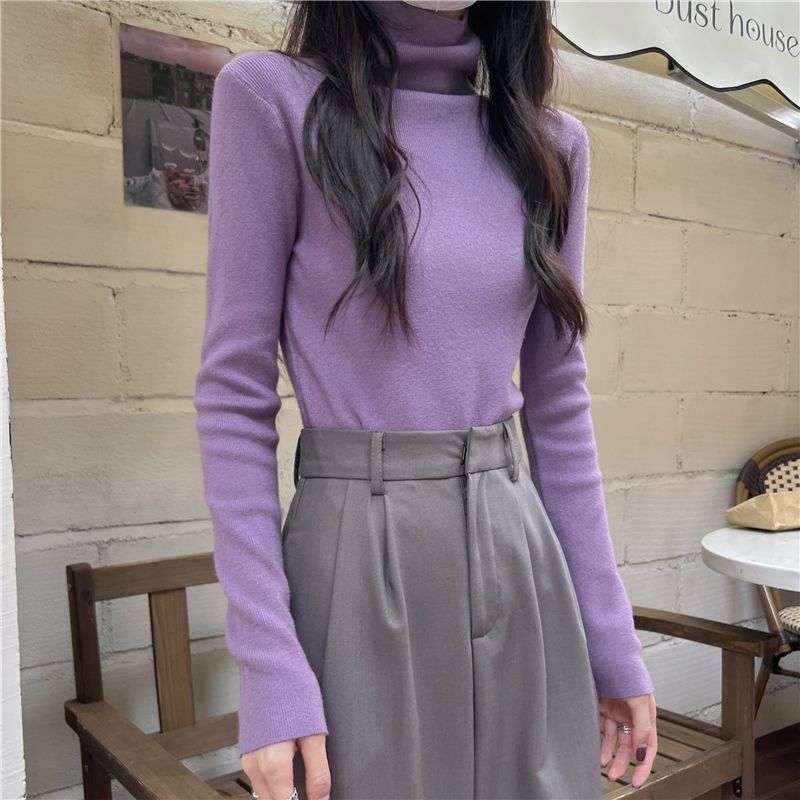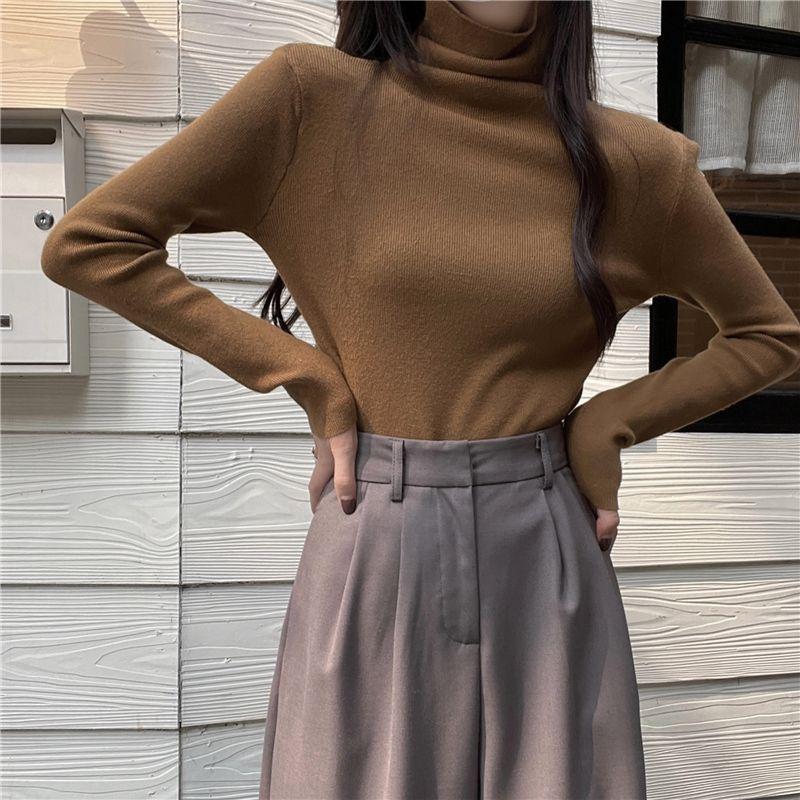 여자 한국식 올매치 슬리밍 터틀넥 긴팔 스웨터 가을 달콤한 단색 슬림 핏 기질 바닥 탑스토어 가기