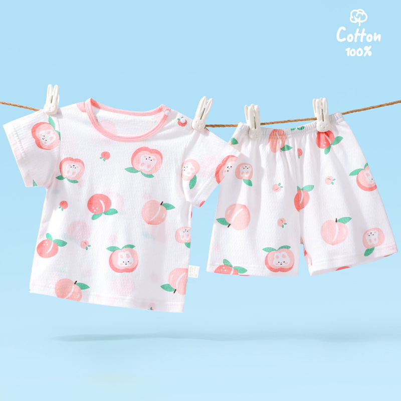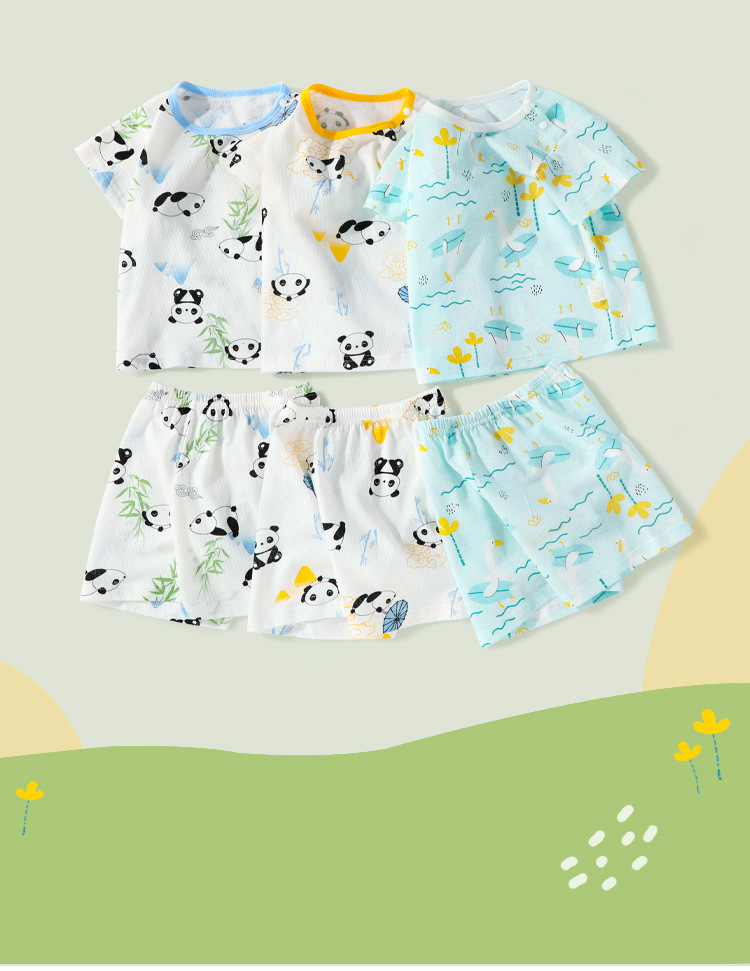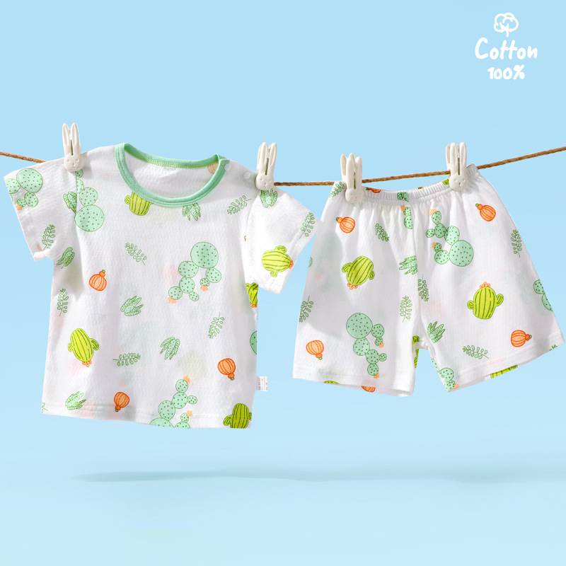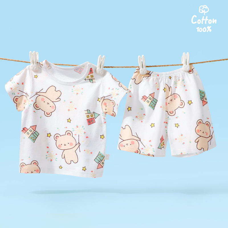 2435 신생아 여름 반팔 정장 순수 면화 얇은 편안하고 통기성 소년 소녀 아기 어린이 반바지스토어 가기