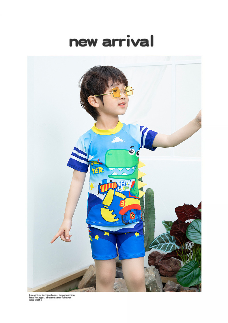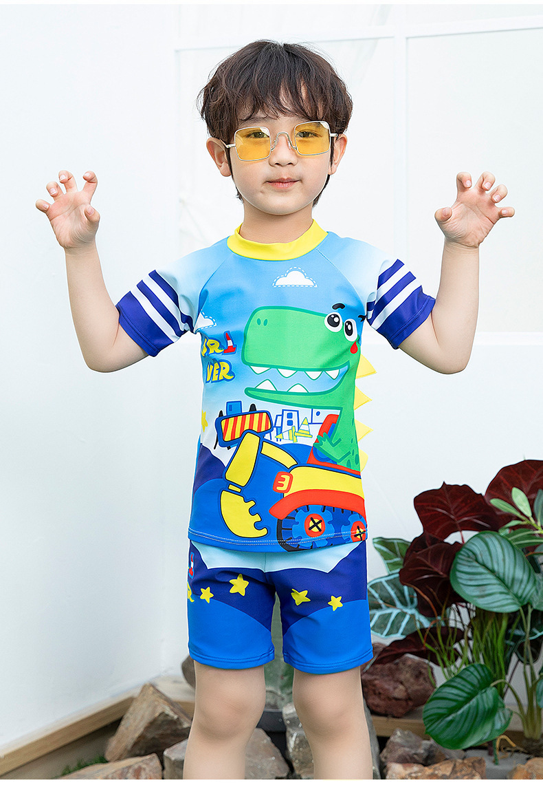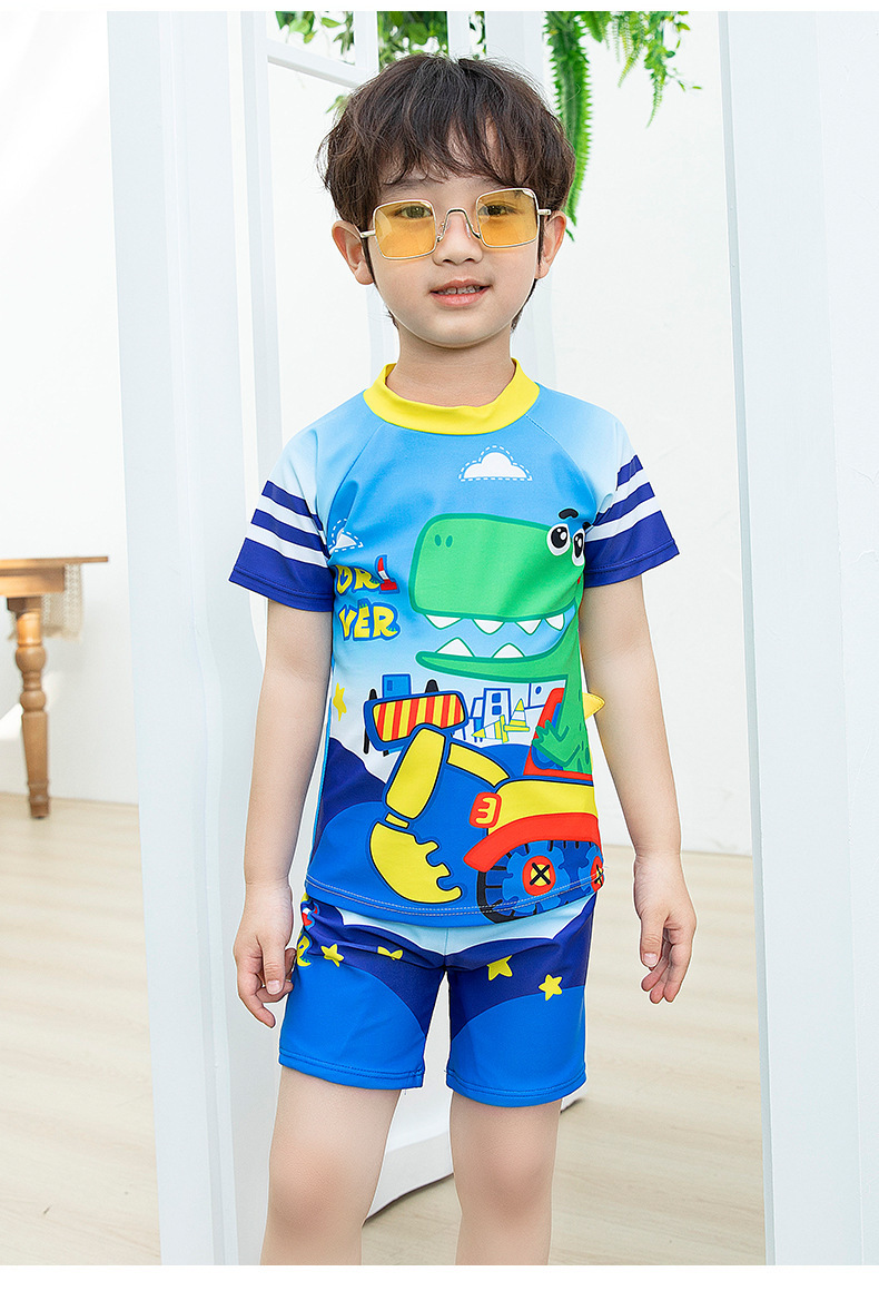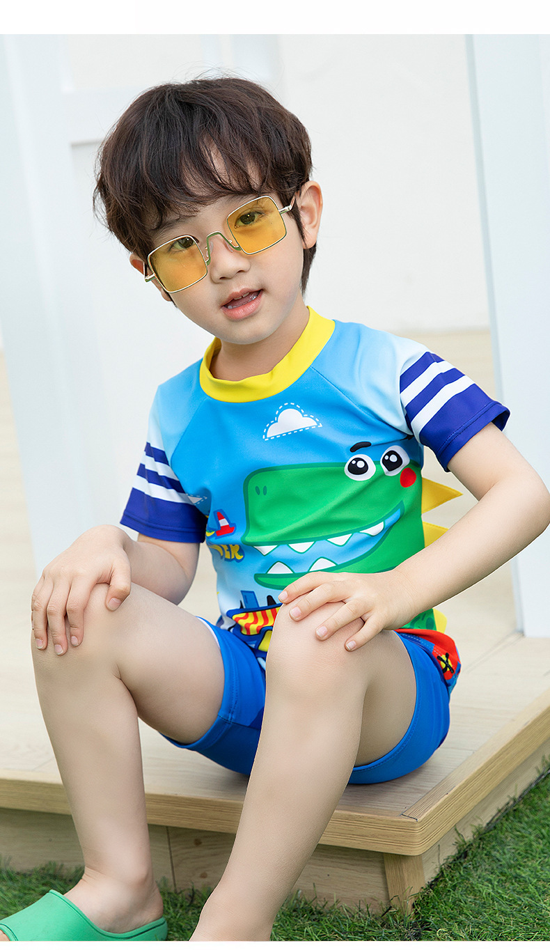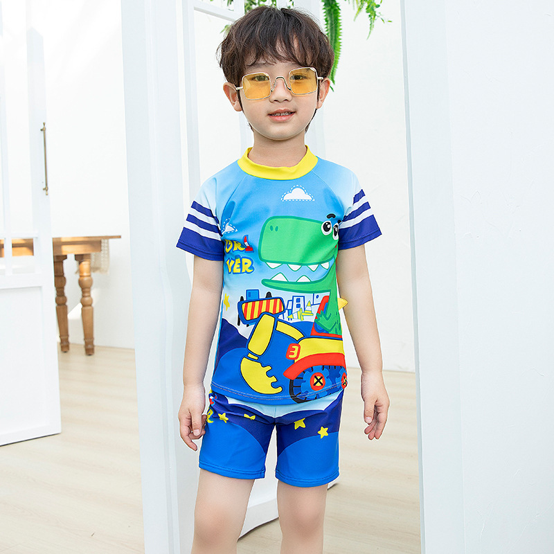 남학생 수영복 수영 트렁크 세트 새로운 여름 반소매 권투 선수는 만화 미디어와 어린 아이들 소년 수영복 도매 분할스토어 가기
