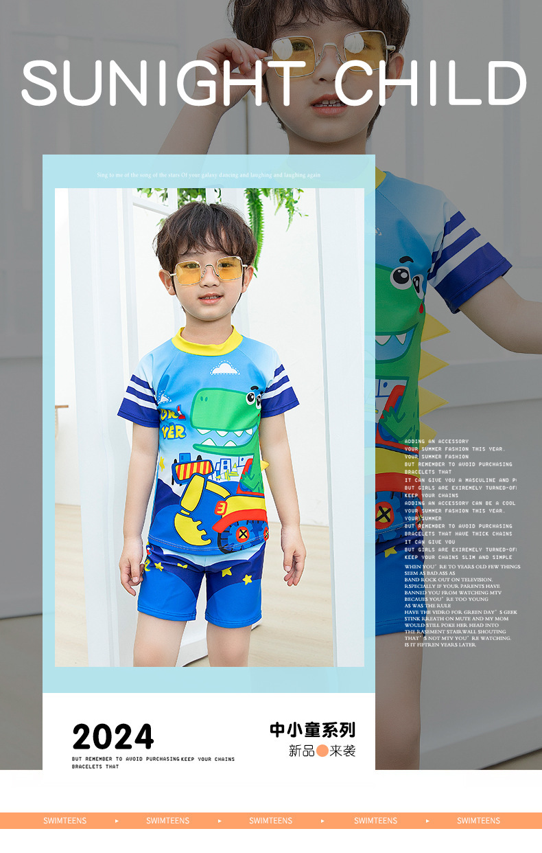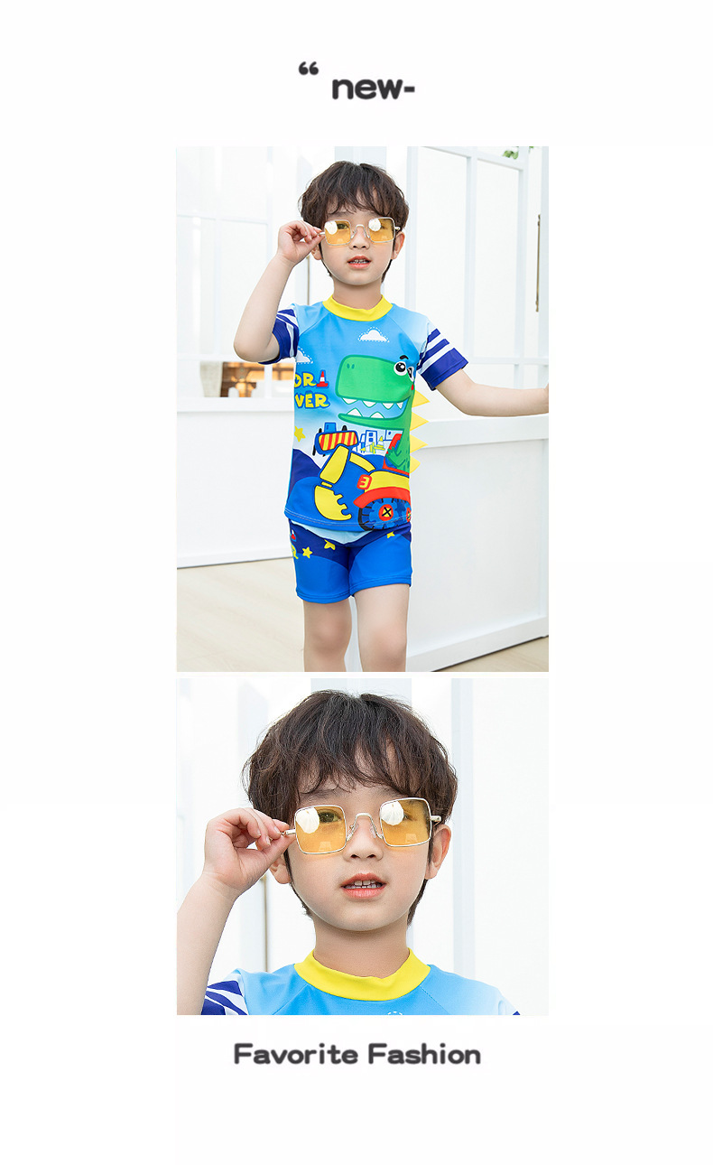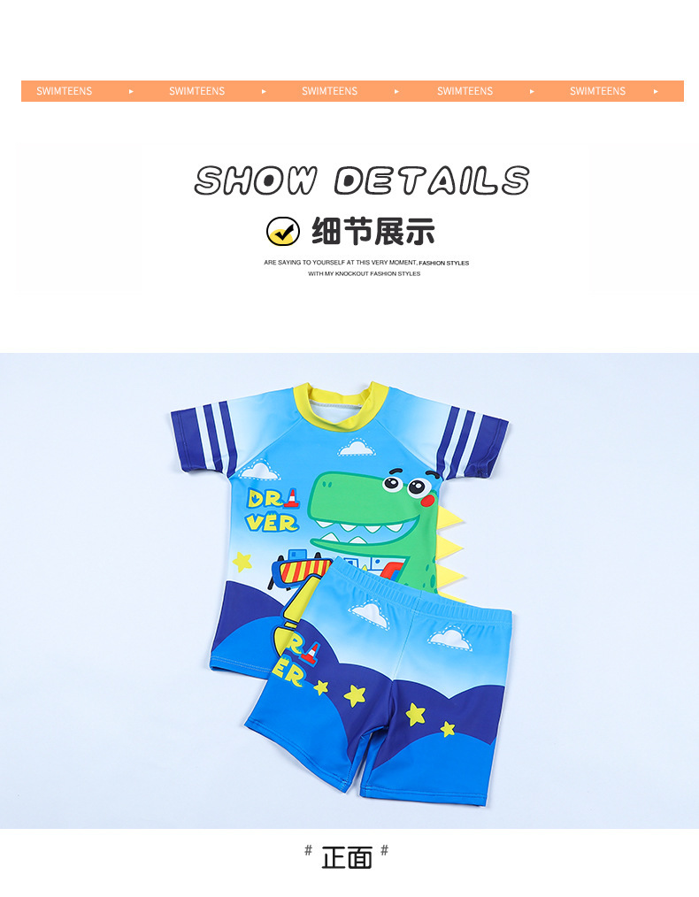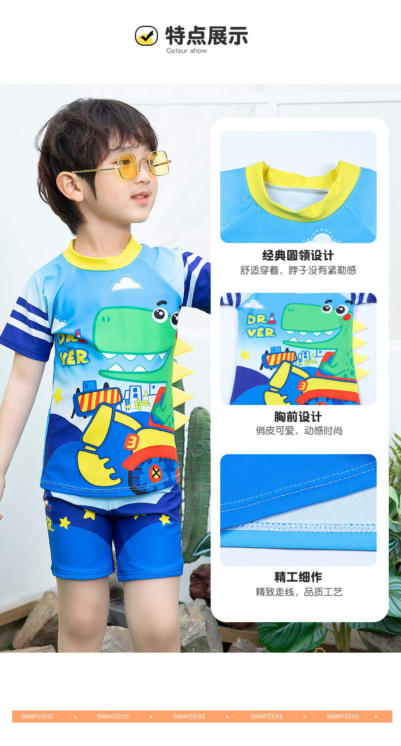 남학생 수영복 수영 트렁크 세트 새로운 여름 반소매 권투 선수는 만화 미디어와 어린 아이들 소년 수영복 도매 분할스토어 가기