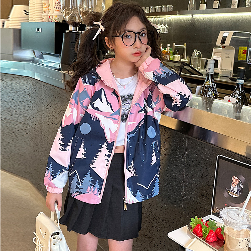국경 간 아동복 재킷 소녀 양면 윈드 브레이커 2025 새로운 중대형 아동 재킷 3 방지 탑 재킷스토어 가기