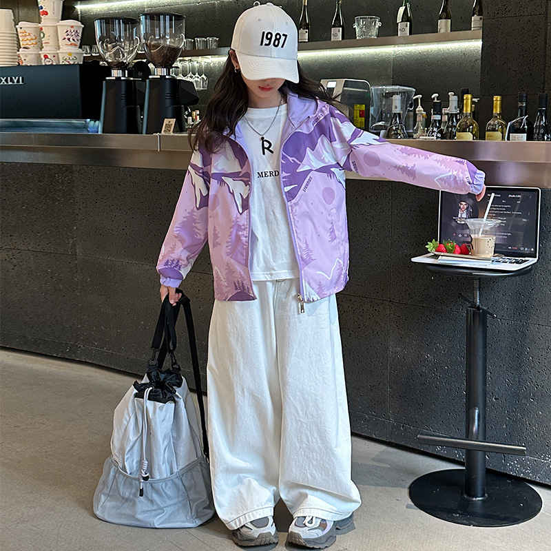 국경 간 아동복 재킷 소녀 양면 윈드 브레이커 2025 새로운 중대형 아동 재킷 3 방지 탑 재킷