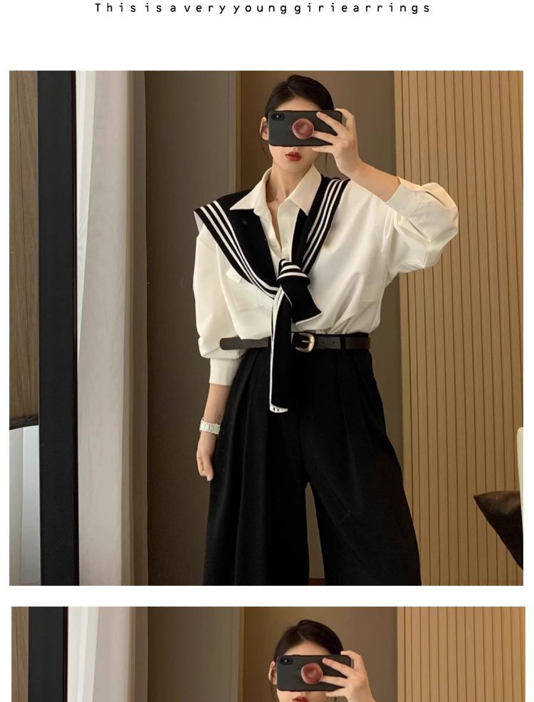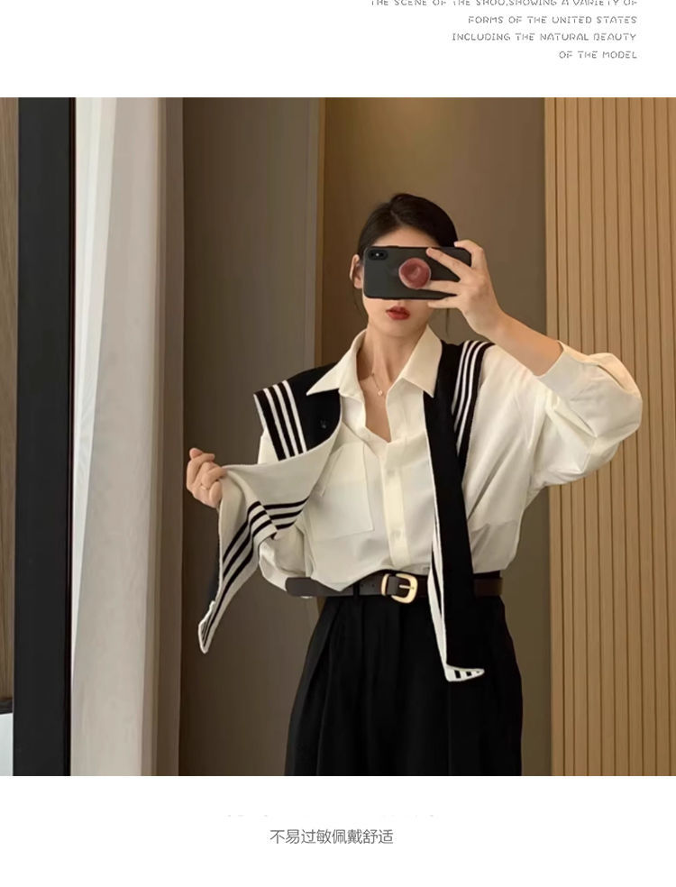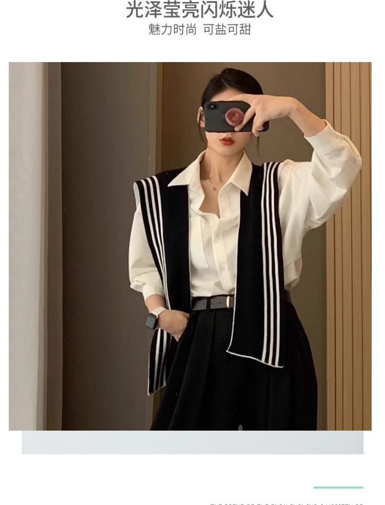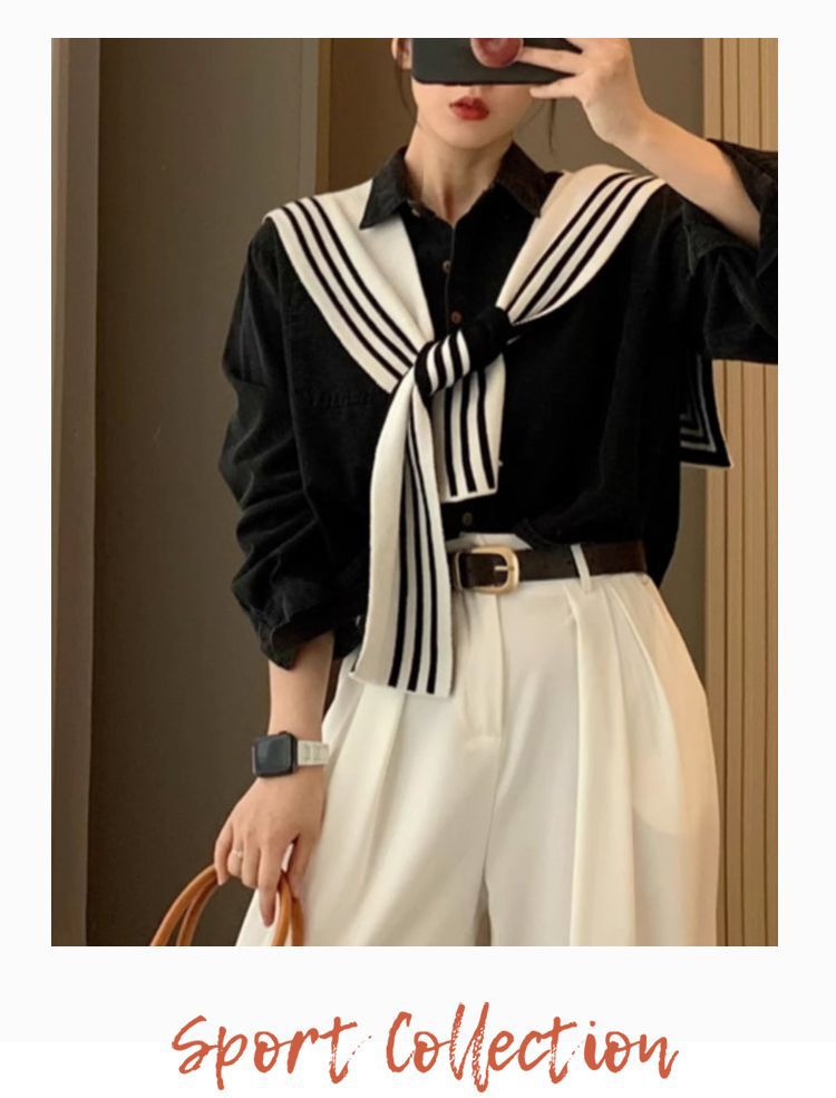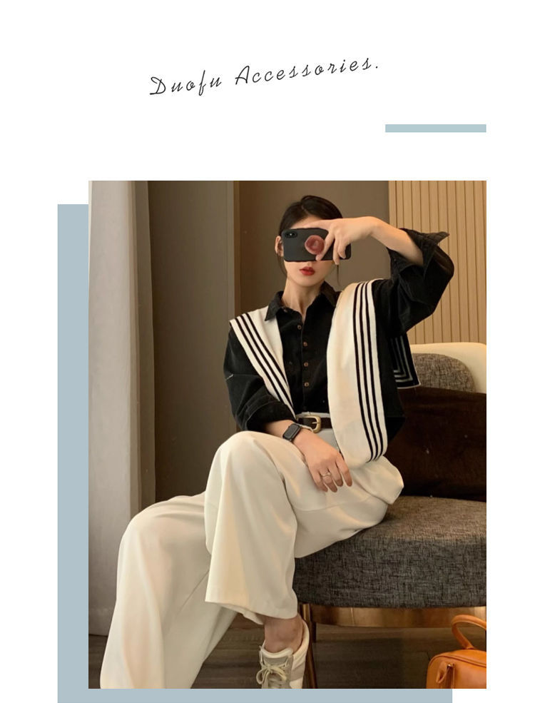 양면 착용 가능한 목도리 여성의 흑백 줄무늬 가을과 겨울 니트 세련된 서양식 고급 스카프 어깨 가짜 칼라스토어 가기