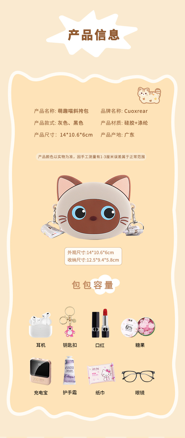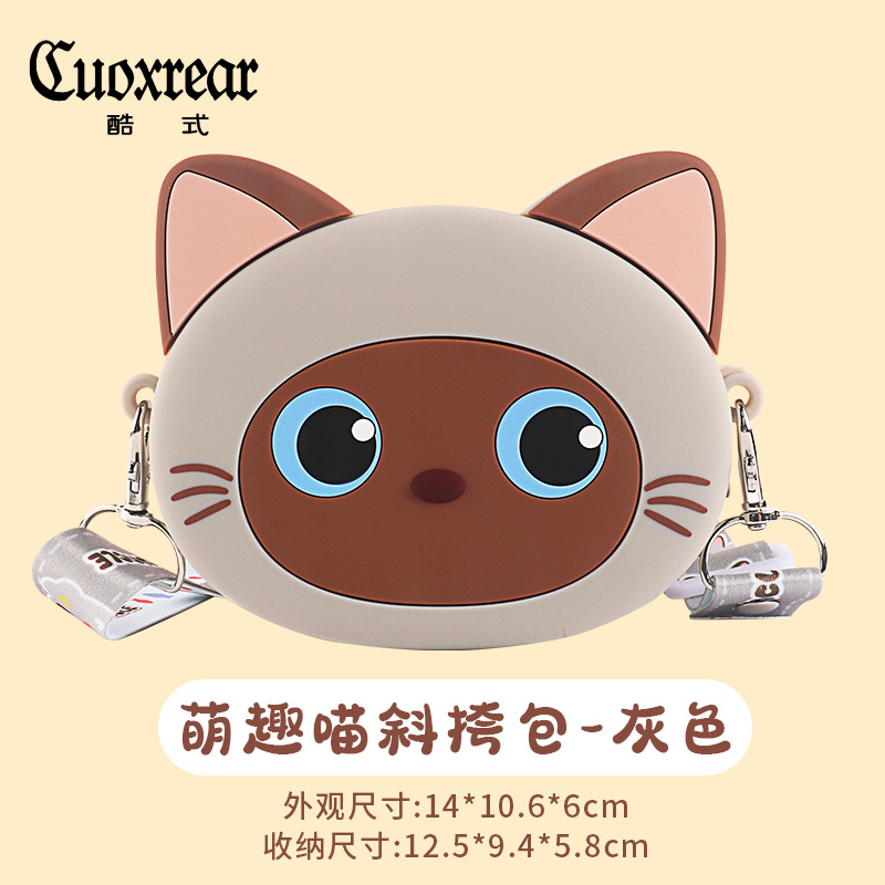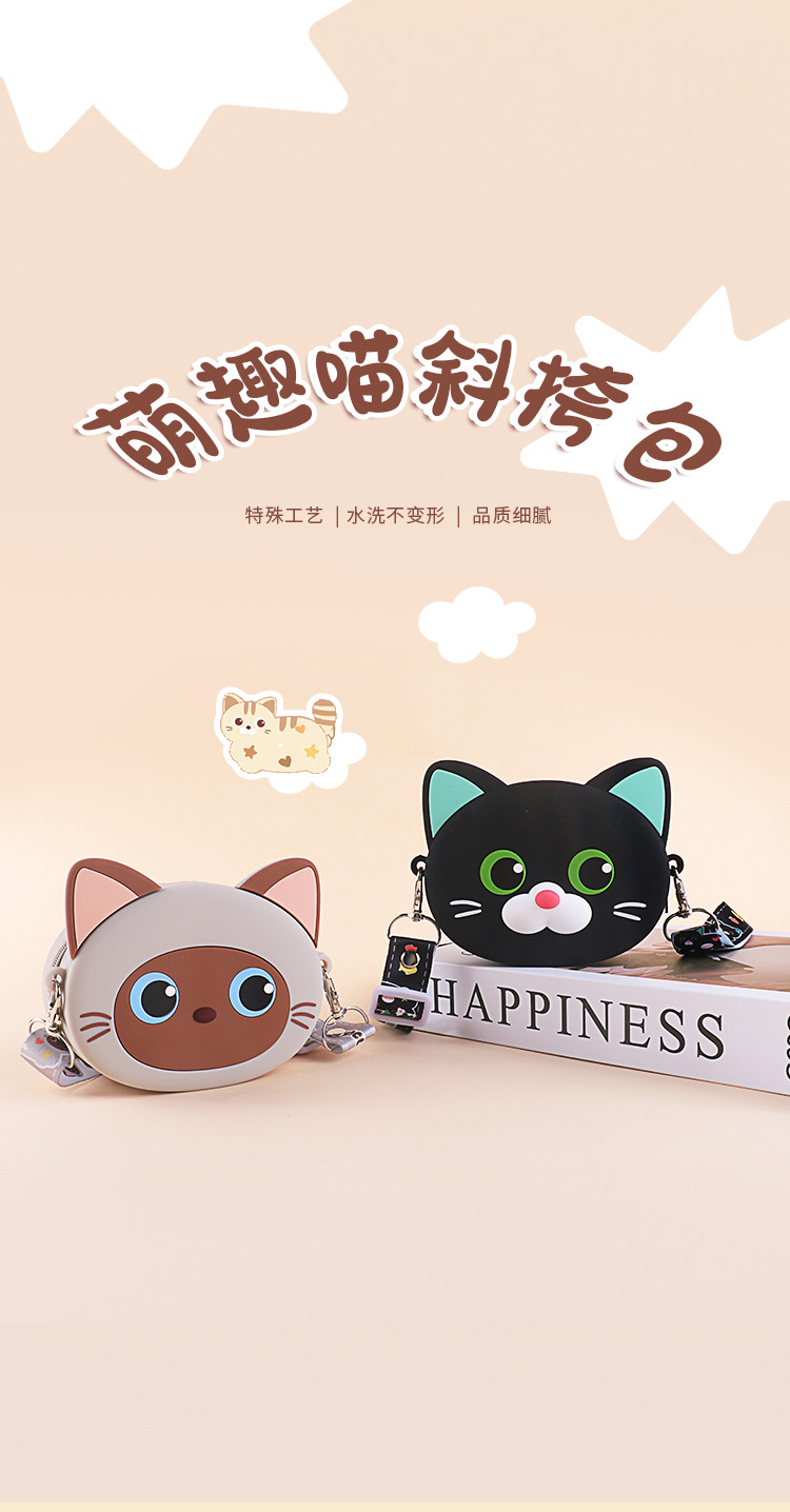 어린이 실리콘 메신저 가방 만화 고양이 가방 소녀 저장 가방 귀여운 야옹 동전 지갑 귀여운 새끼 고양이 어깨 가방