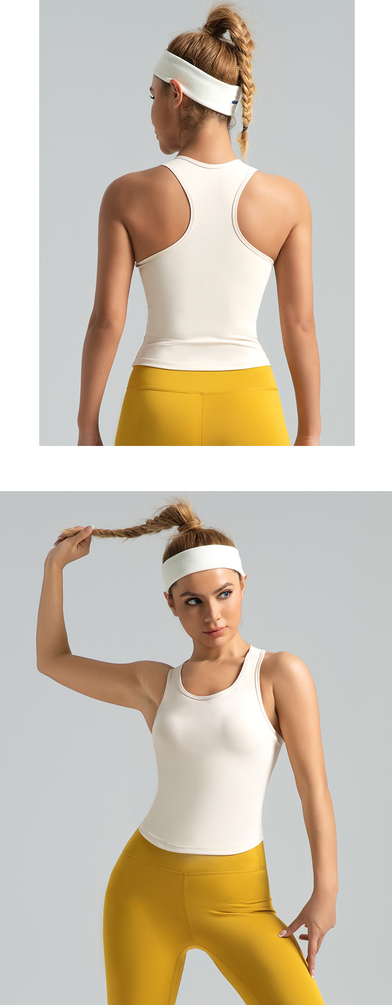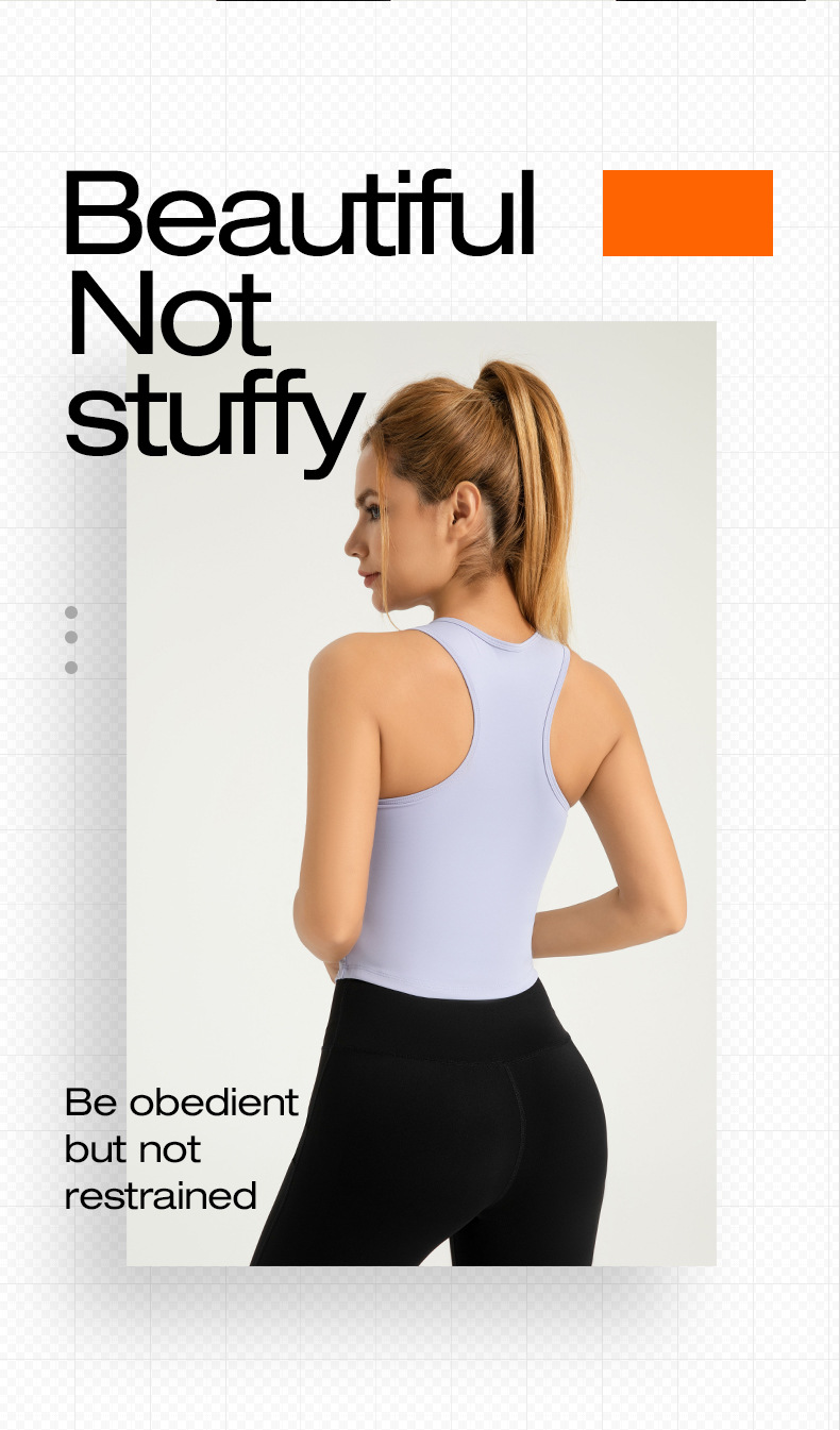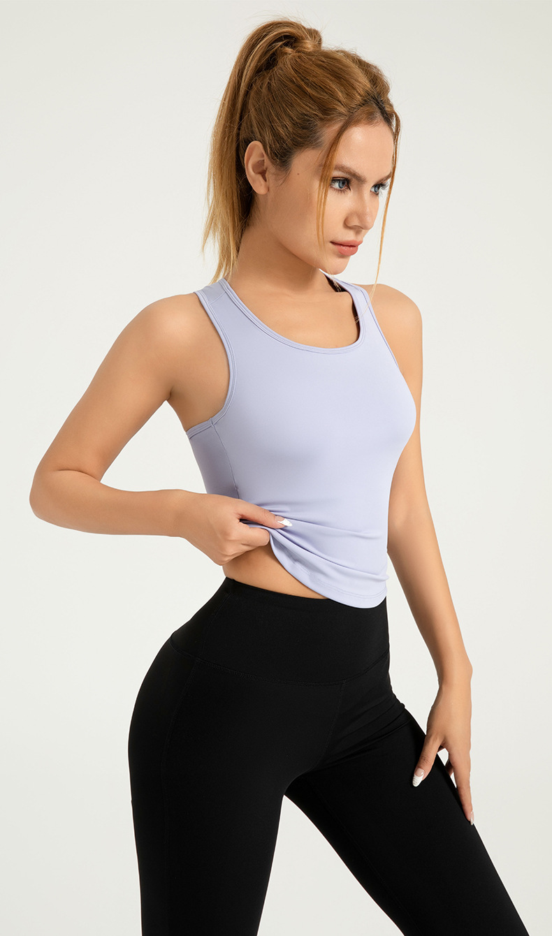크로스보더 복숭아색 요가탑 일체형 고정 라운드넥 타이트 노출방지 스포츠탑