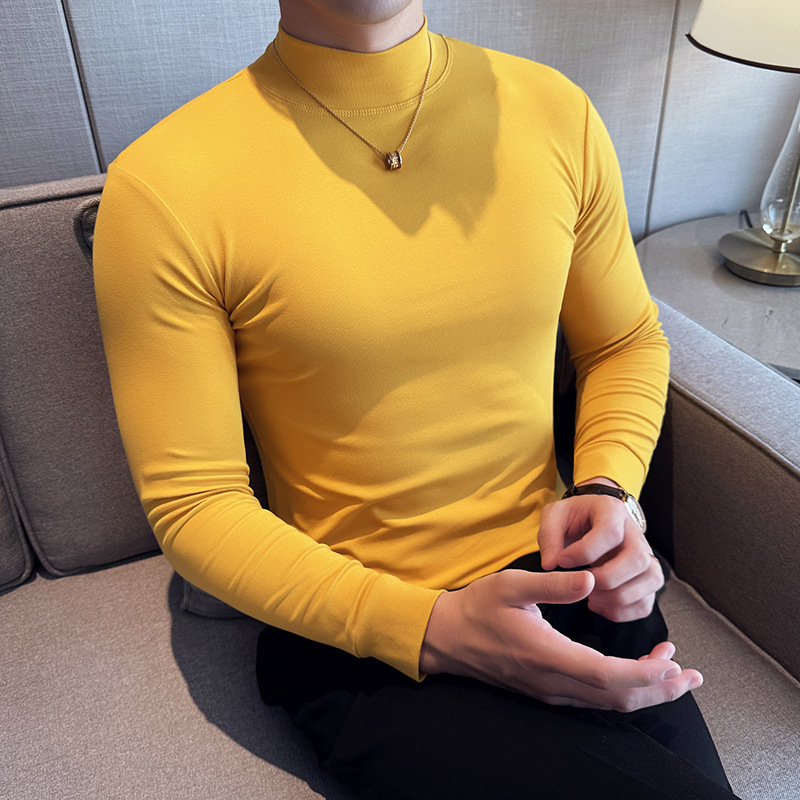하이 퀄리티 가을과 겨울 반 높은 칼라 스트레치 T 슬림핏 긴 소매 면화 슬림핏 미드 넥 티셔츠 한국 남성 화이트 베이스 셔츠