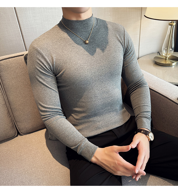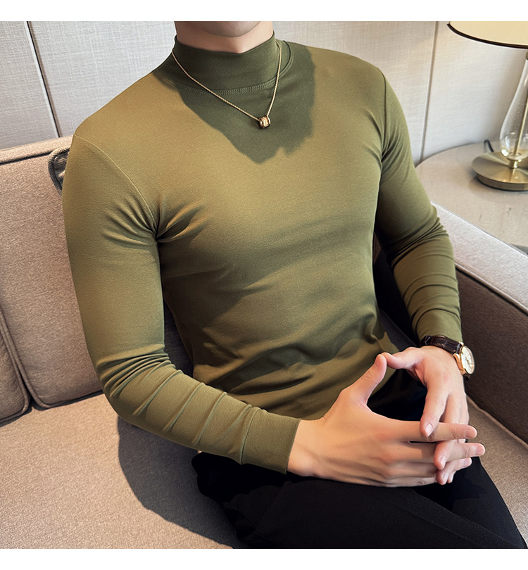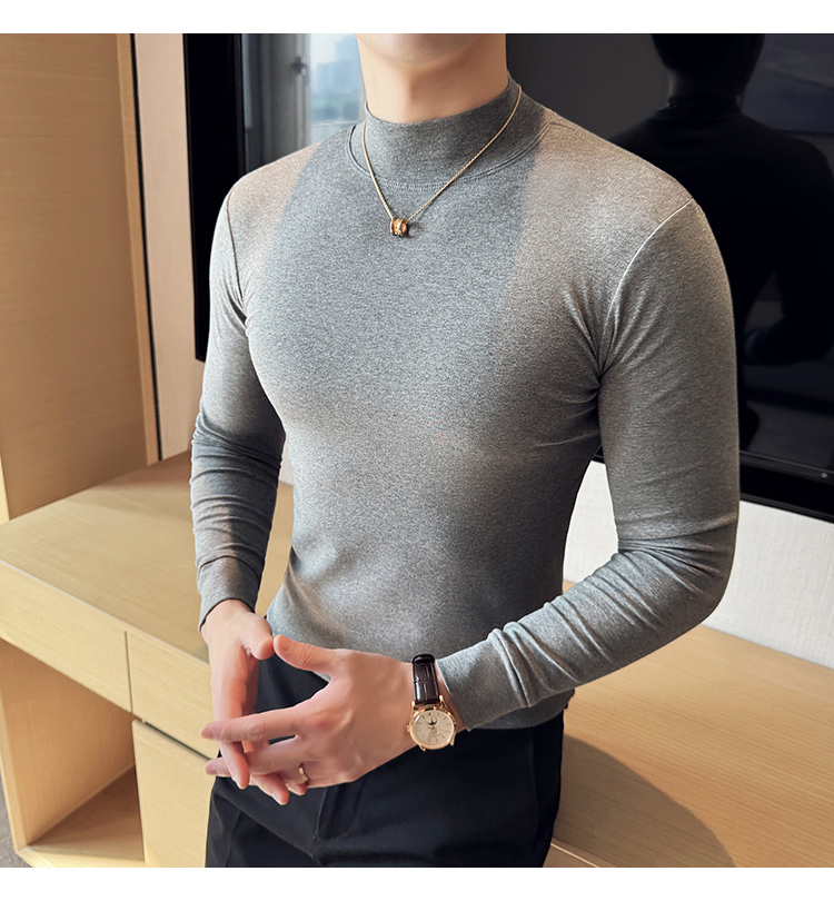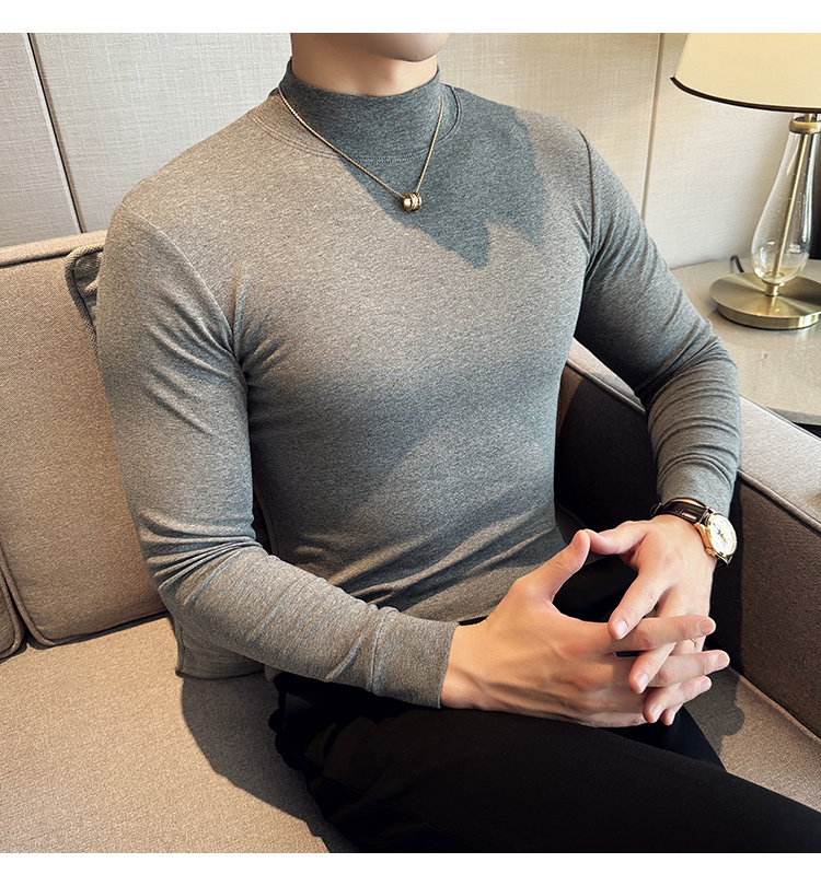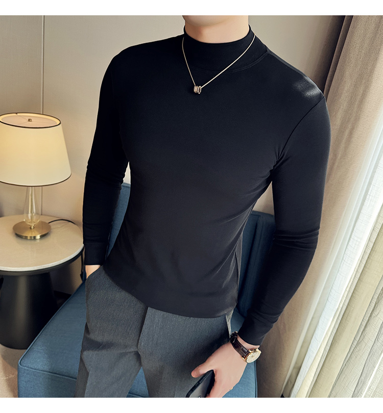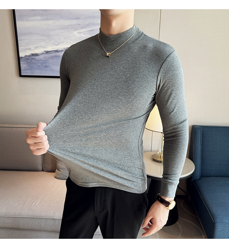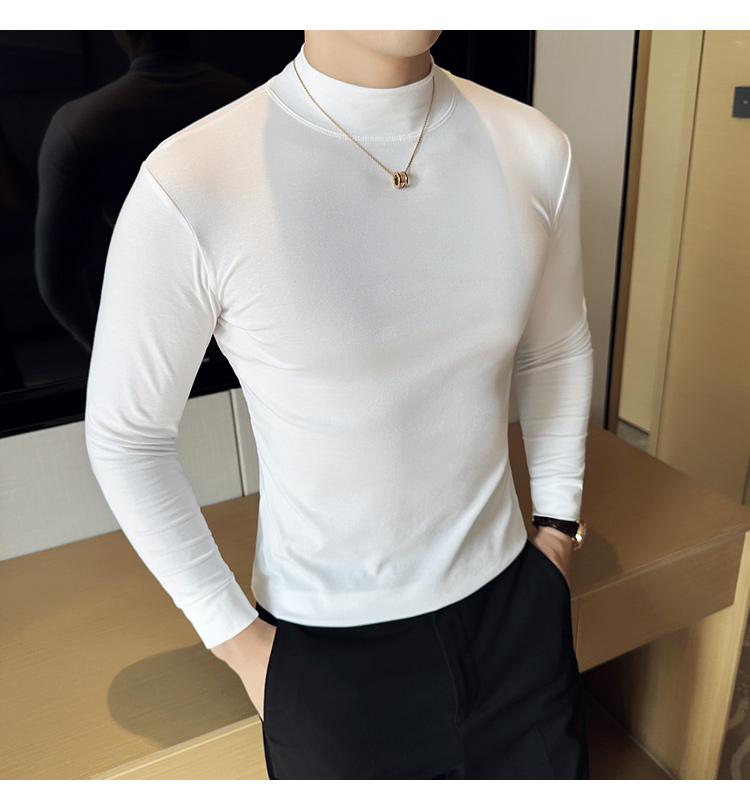 하이 퀄리티 가을과 겨울 반 높은 칼라 스트레치 T 슬림핏 긴 소매 면화 슬림핏 미드 넥 티셔츠 한국 남성 화이트 베이스 셔츠스토어 가기