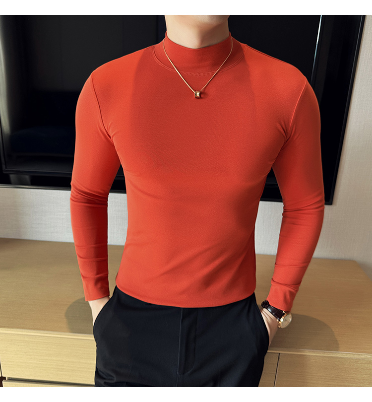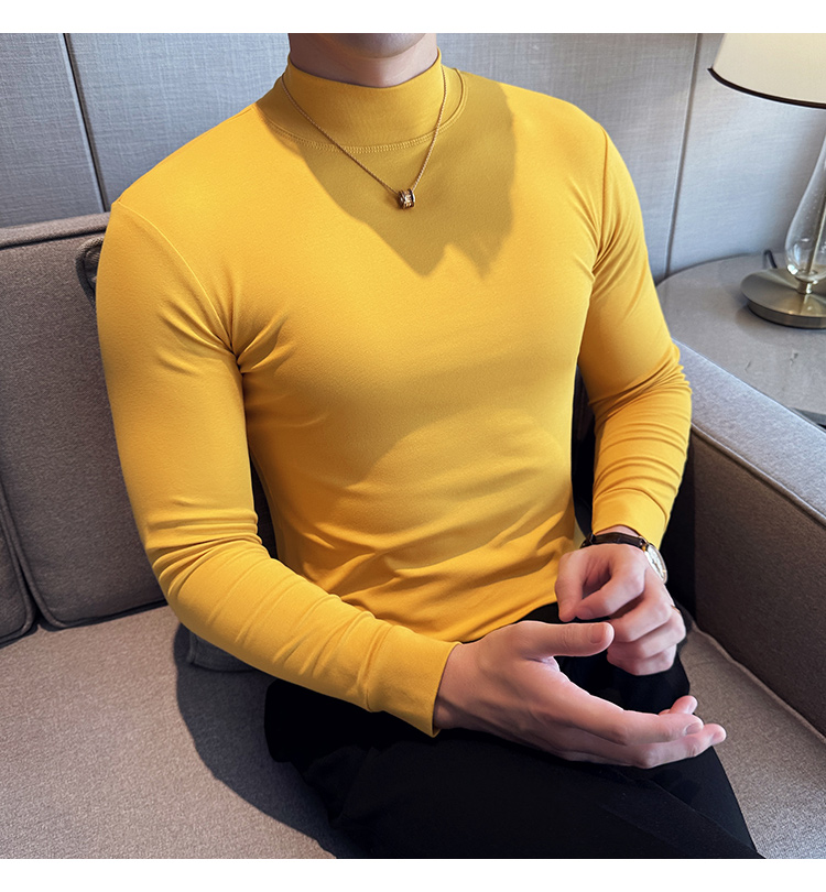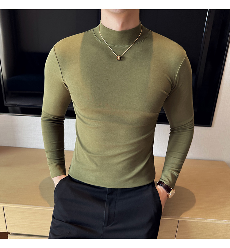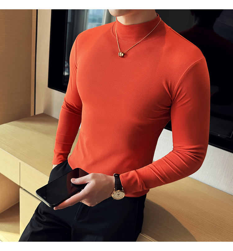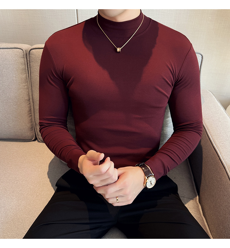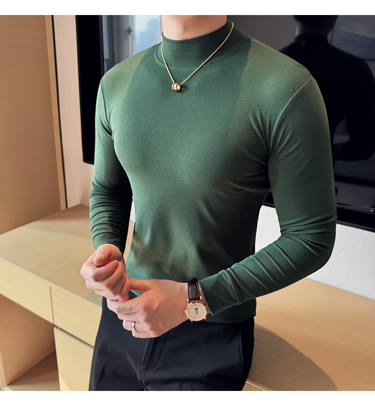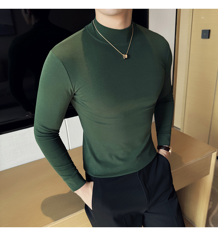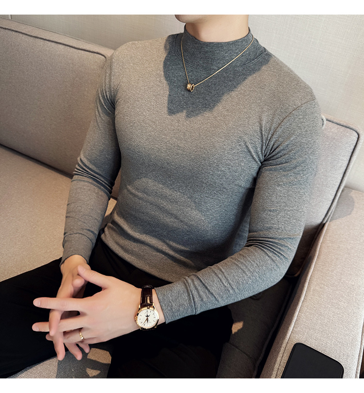 하이 퀄리티 가을과 겨울 반 높은 칼라 스트레치 T 슬림핏 긴 소매 면화 슬림핏 미드 넥 티셔츠 한국 남성 화이트 베이스 셔츠스토어 가기