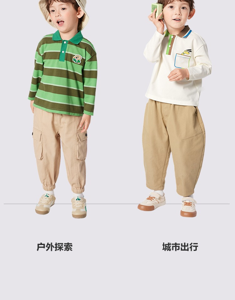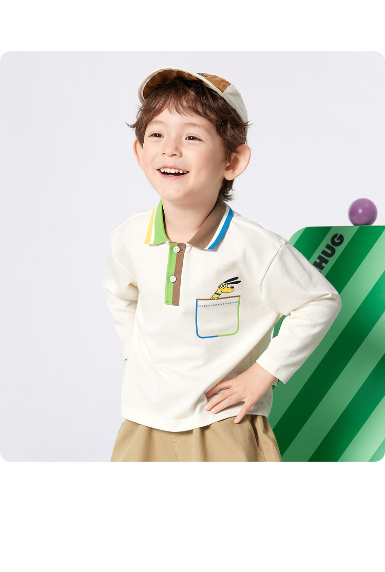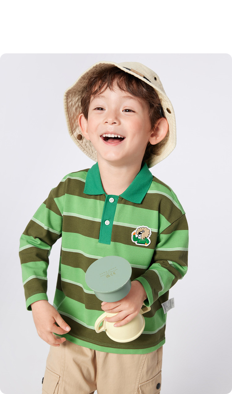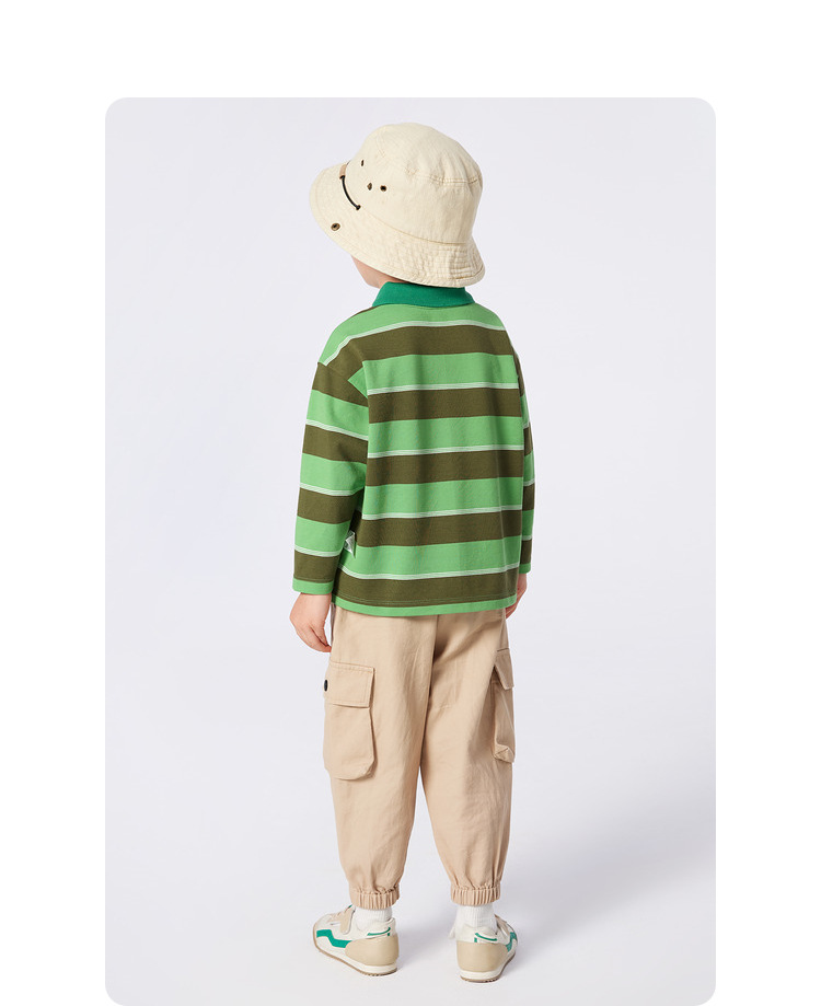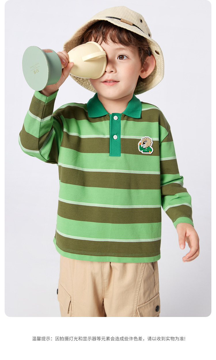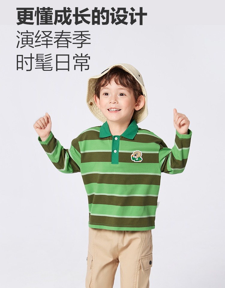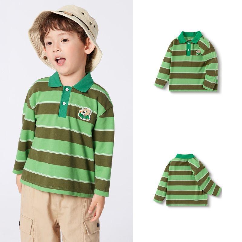 2024 봄 새로운 도착 소년의 긴 소매 티셔츠 아동복 만화 인쇄 줄무늬 폴로 탑 유행 올 매치스토어 가기