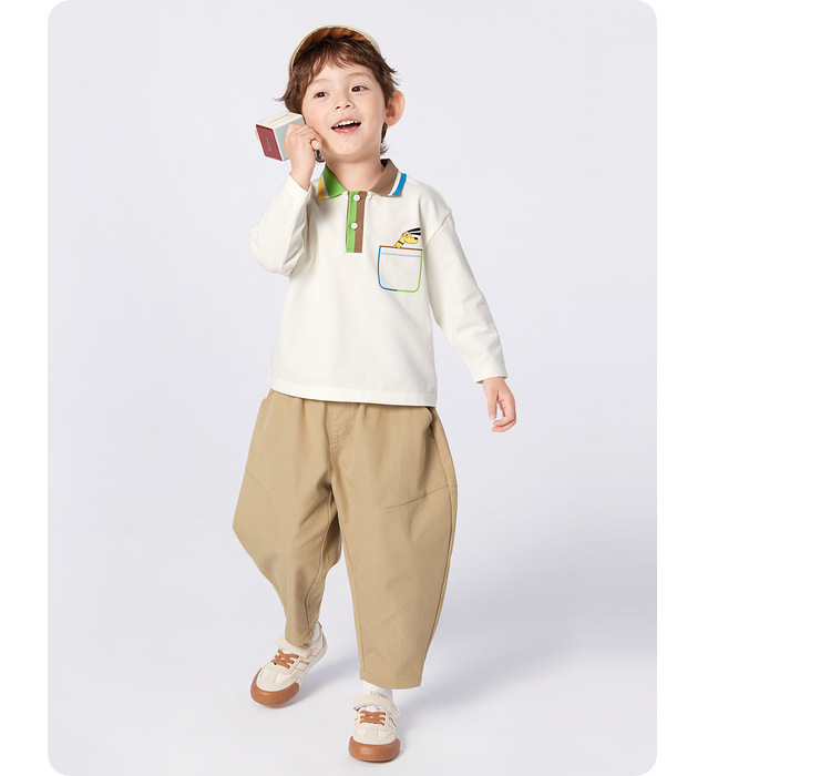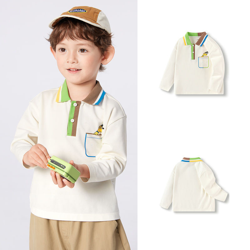 2024 봄 새로운 도착 소년의 긴 소매 티셔츠 아동복 만화 인쇄 줄무늬 폴로 탑 유행 올 매치