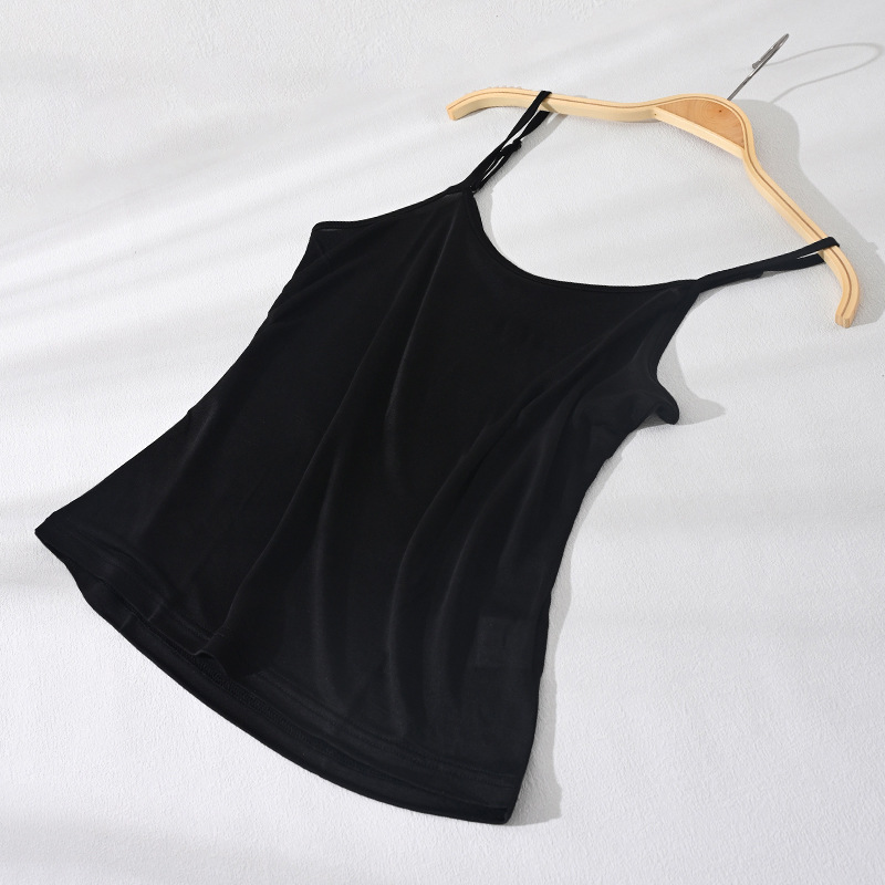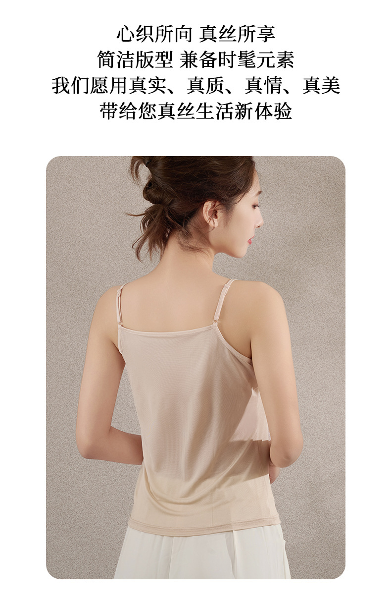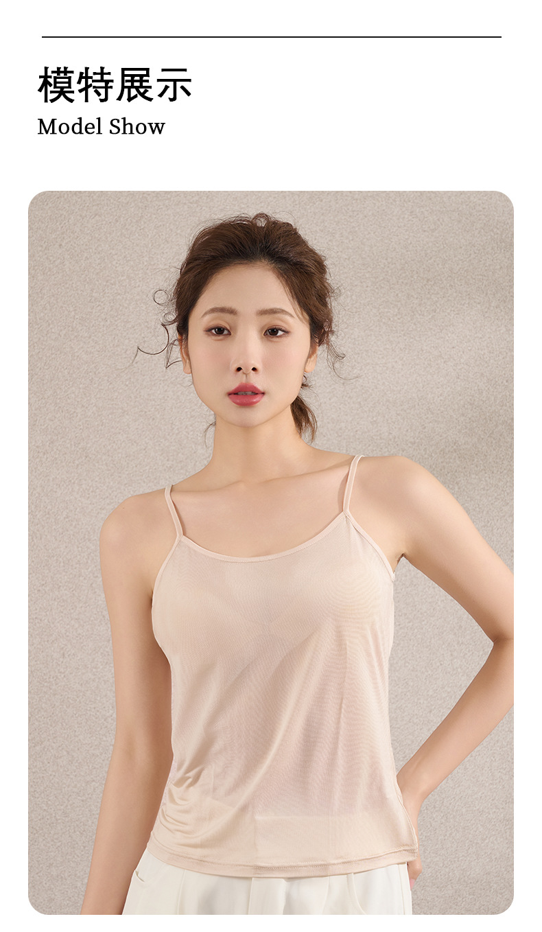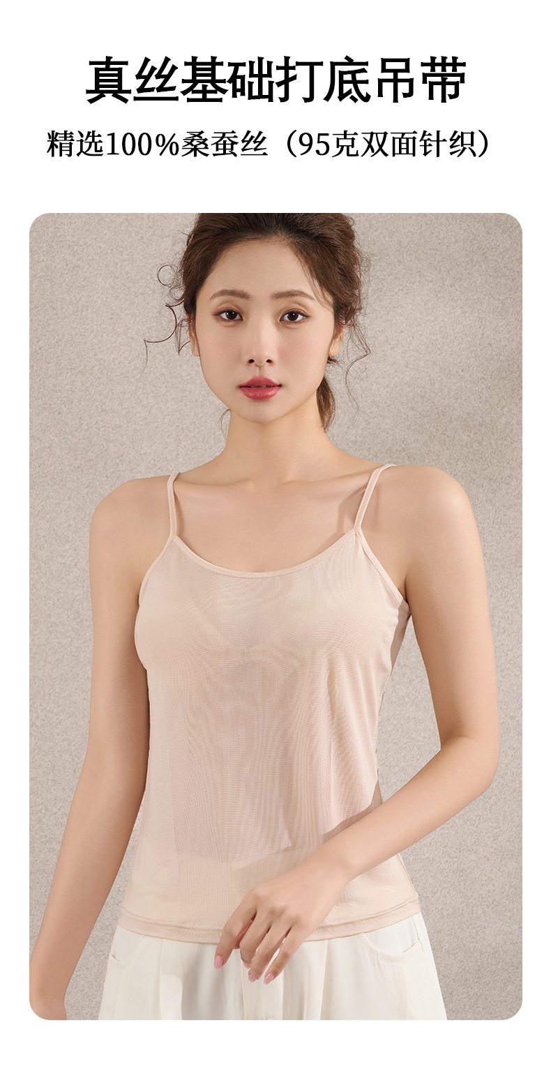 탱지 봄/여름 실크베이스 캐미솔 여성용 밑단 덮은 뽕나무 실크 캐미솔 단색 통기성스토어 가기
