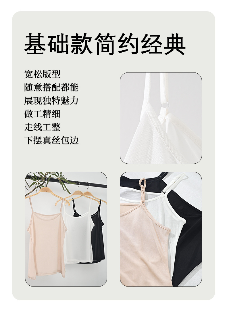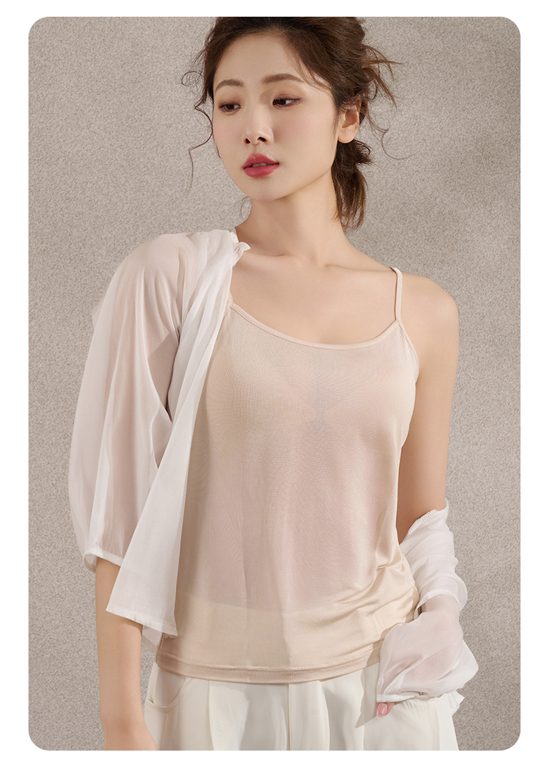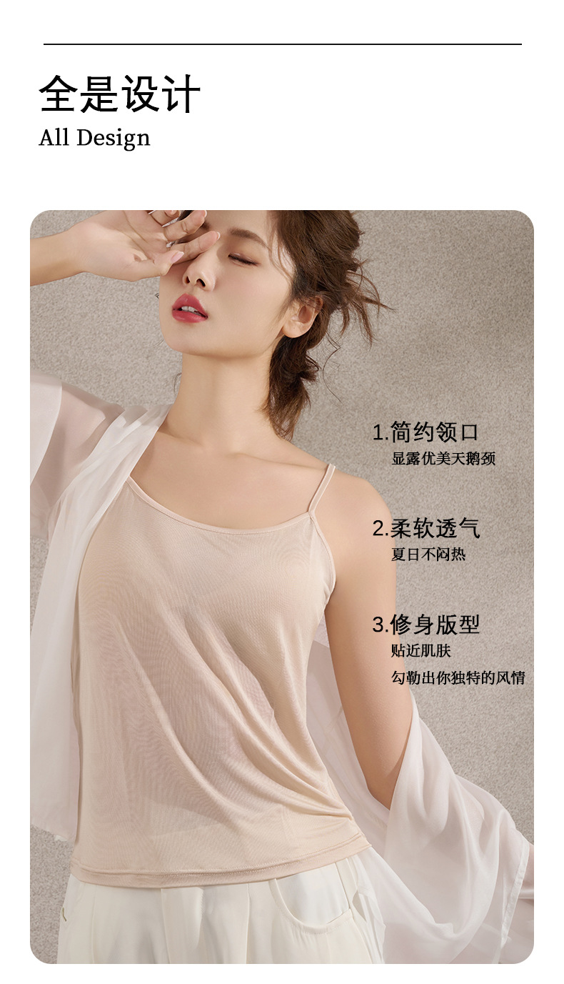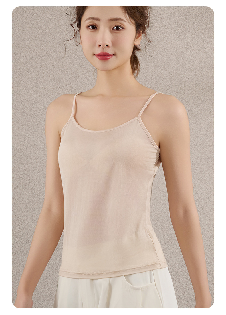 탱지 봄/여름 실크베이스 캐미솔 여성용 밑단 덮은 뽕나무 실크 캐미솔 단색 통기성스토어 가기