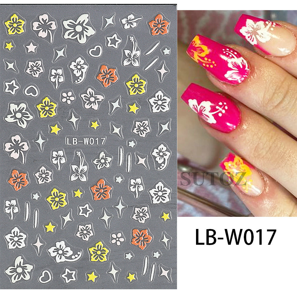 국경 핫 네일 스티커 봄 신선한 꽃 히비스커스 만화 작은 애플 네일 접착 스티커