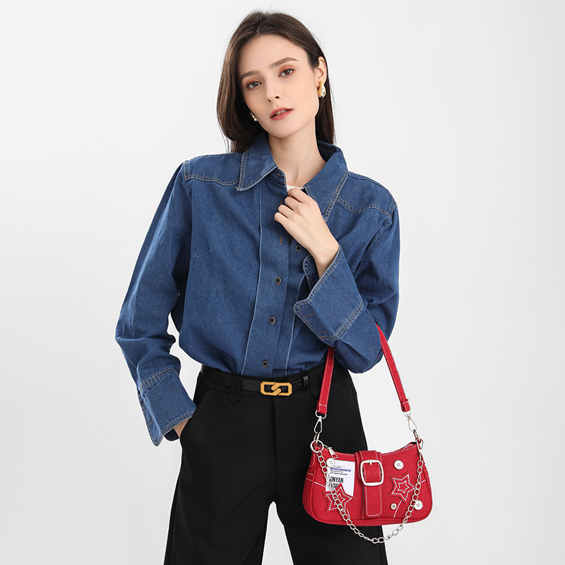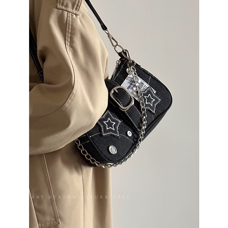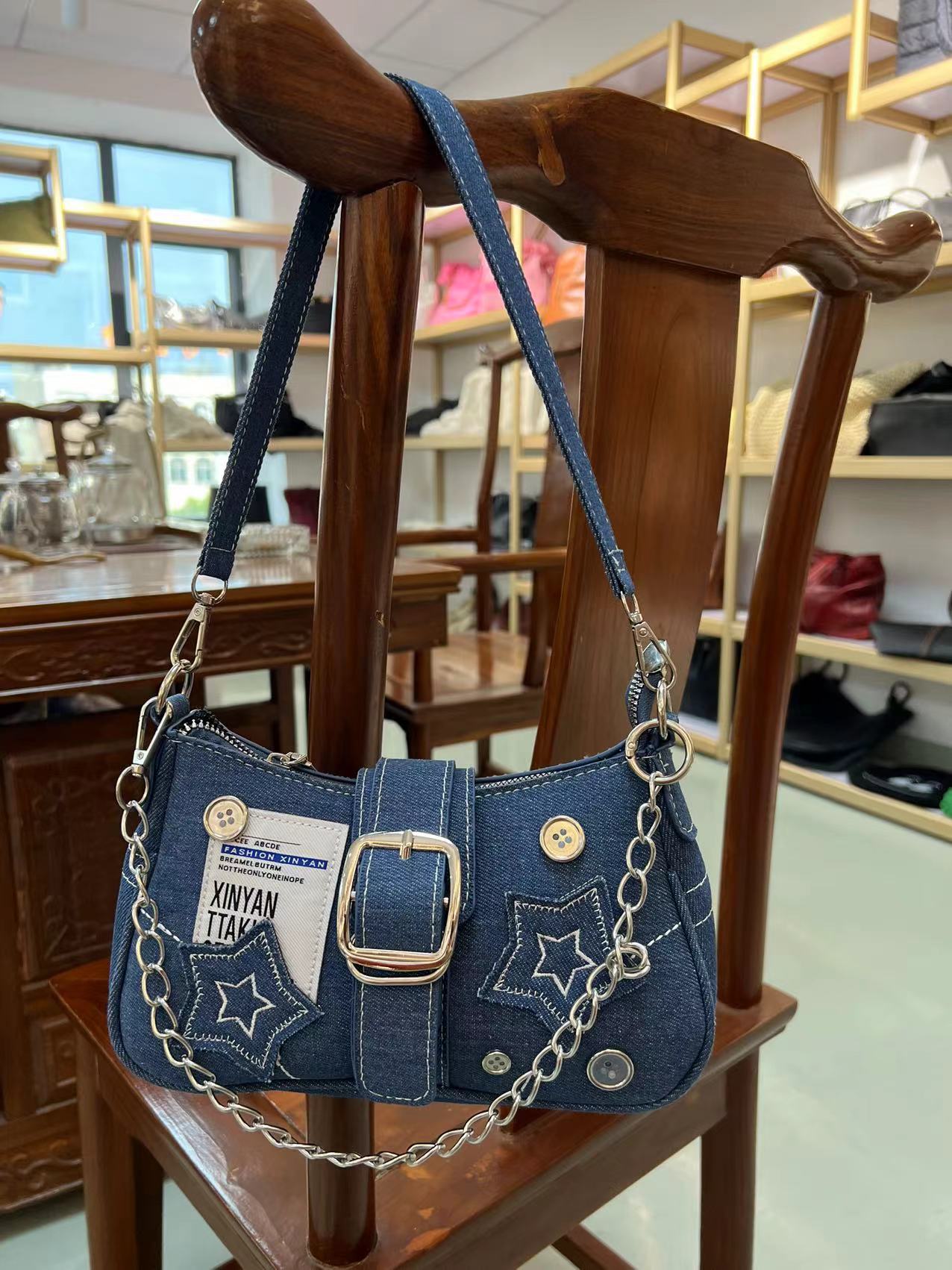 스타 데님 겨드랑이 가방 새로운 패션 트렌드 틈새 디자인 초승달 가방 캔버스 핸드백 체인 가방 도매스토어 가기