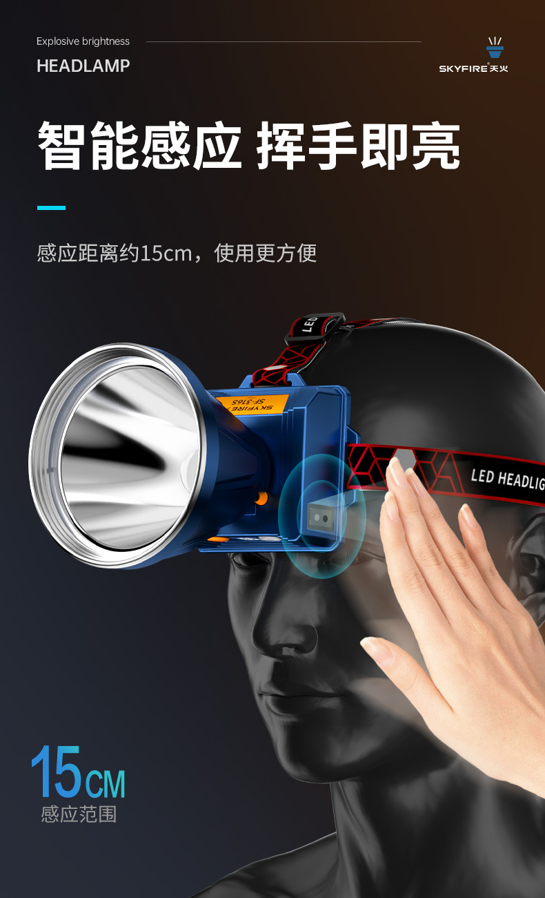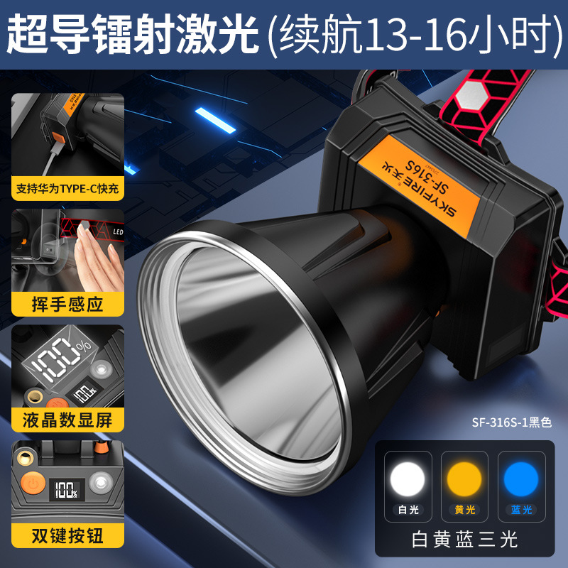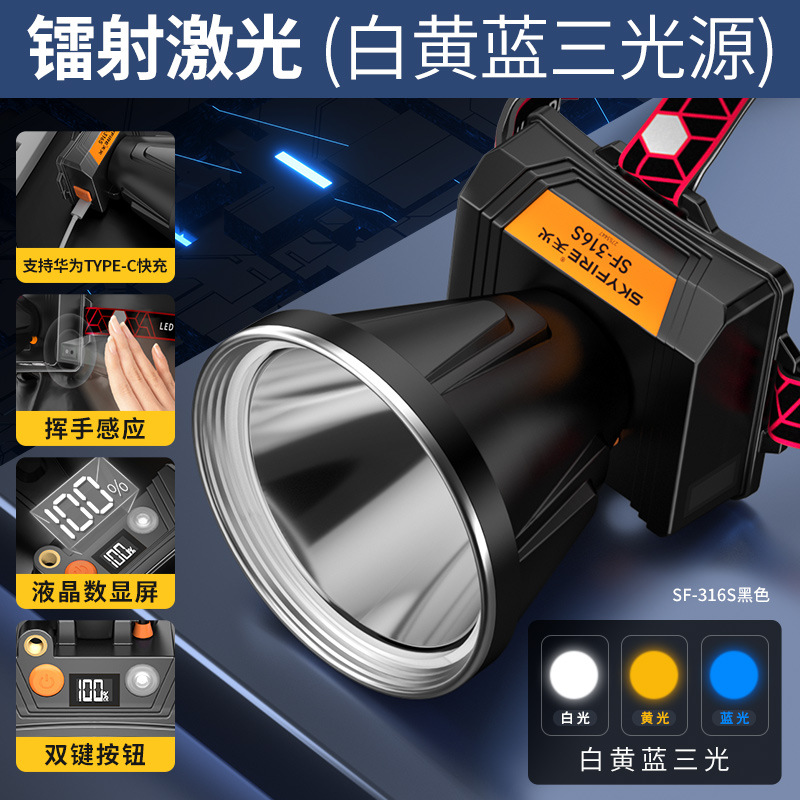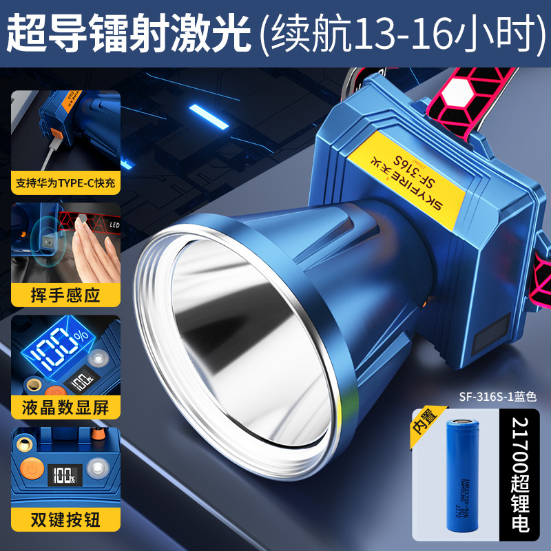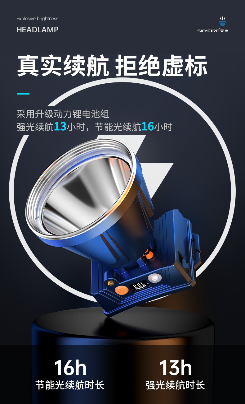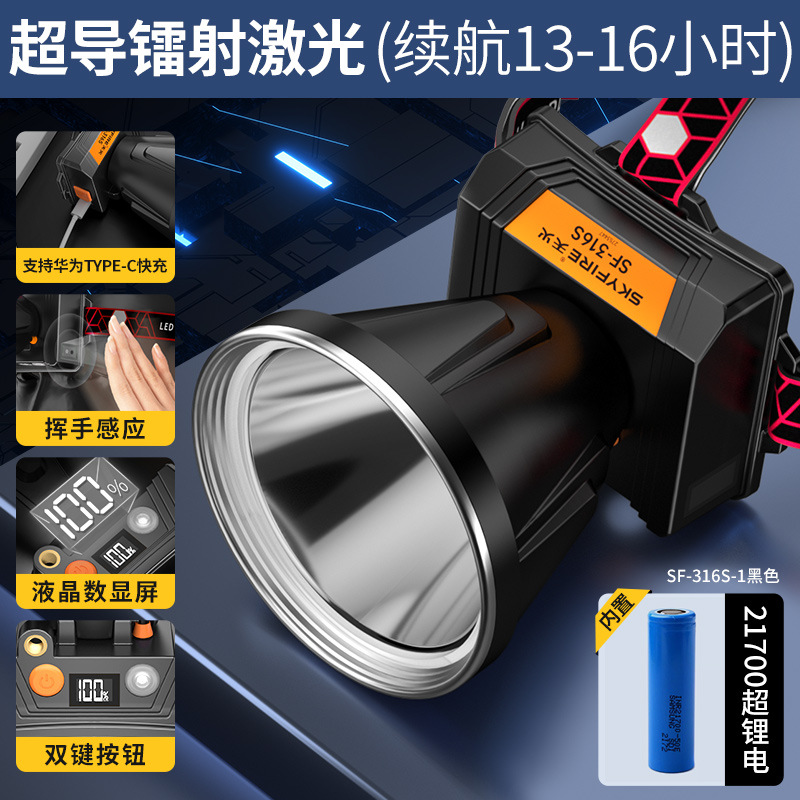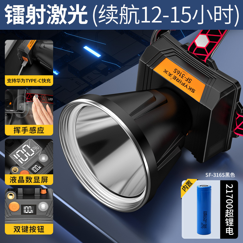 스카이 파이어 강한 전조등 충전 슈퍼 밝은 헤드 장착 손전등 장거리 야외 유도 슈퍼 긴 내구성 리튬 배터리 광부의 램프