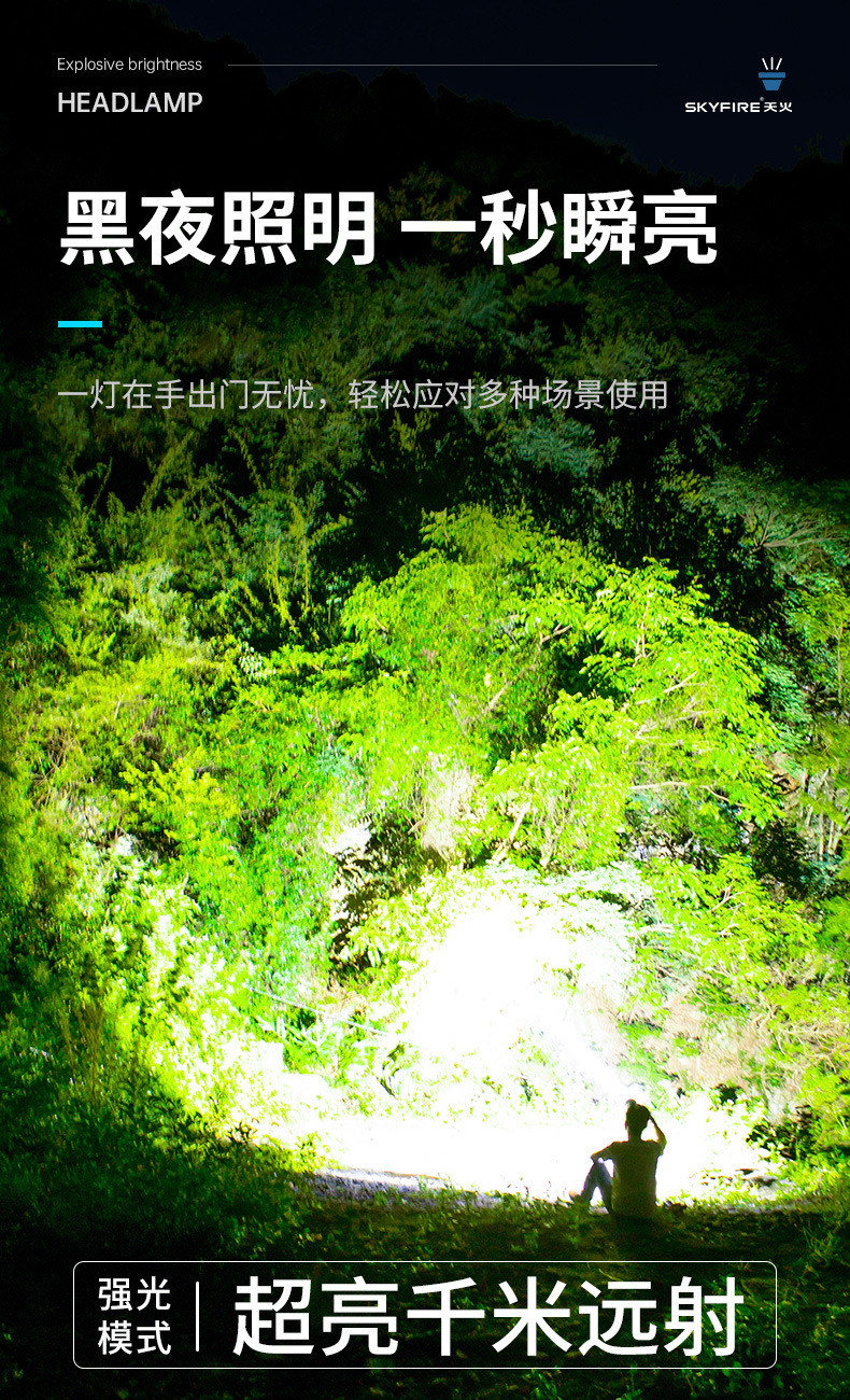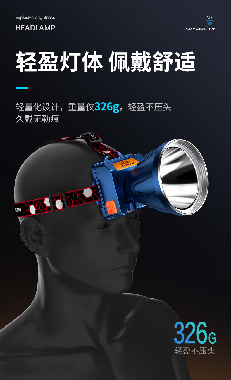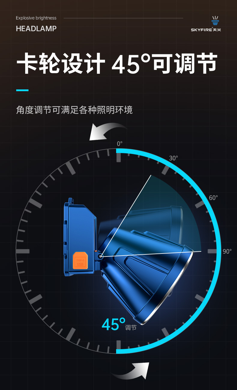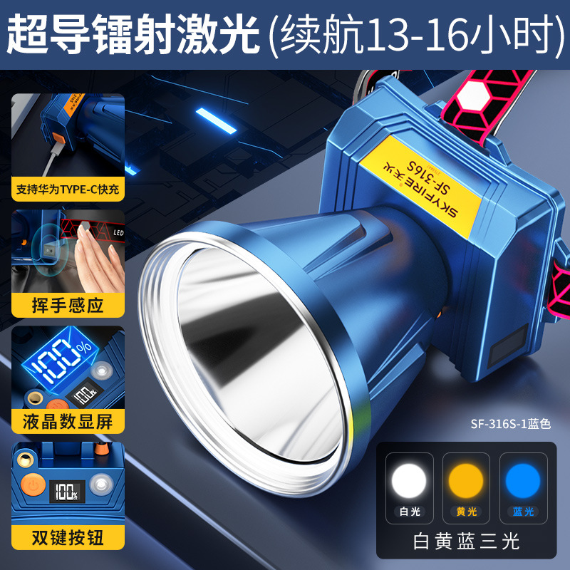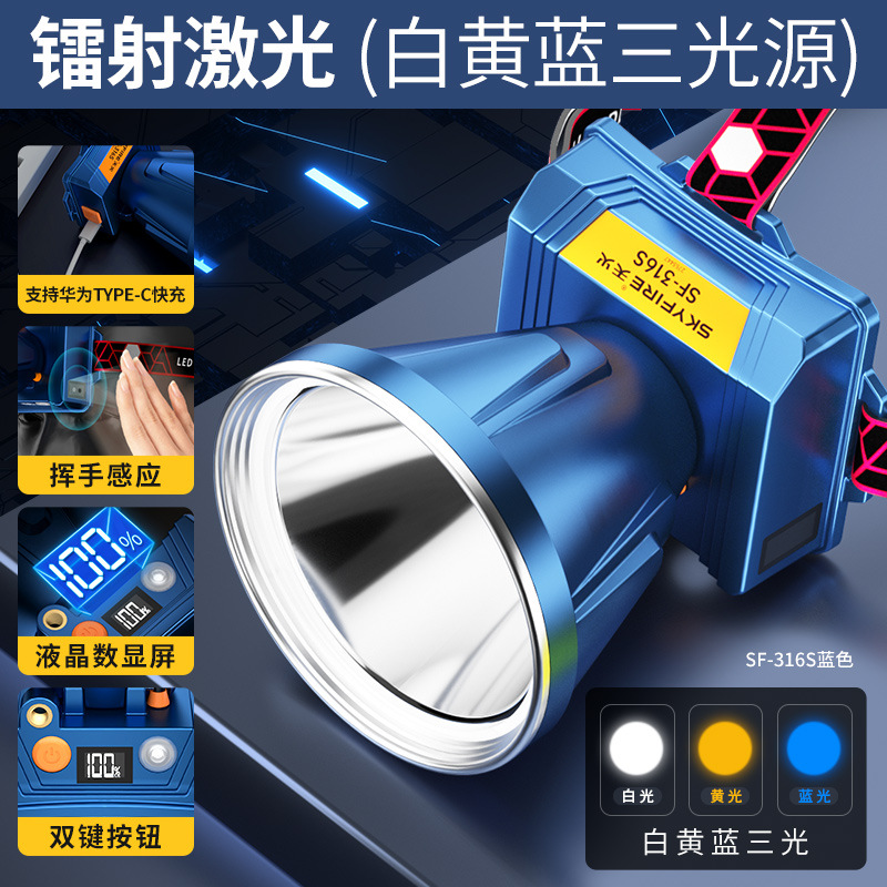 스카이 파이어 강한 전조등 충전 슈퍼 밝은 헤드 장착 손전등 장거리 야외 유도 슈퍼 긴 내구성 리튬 배터리 광부의 램프