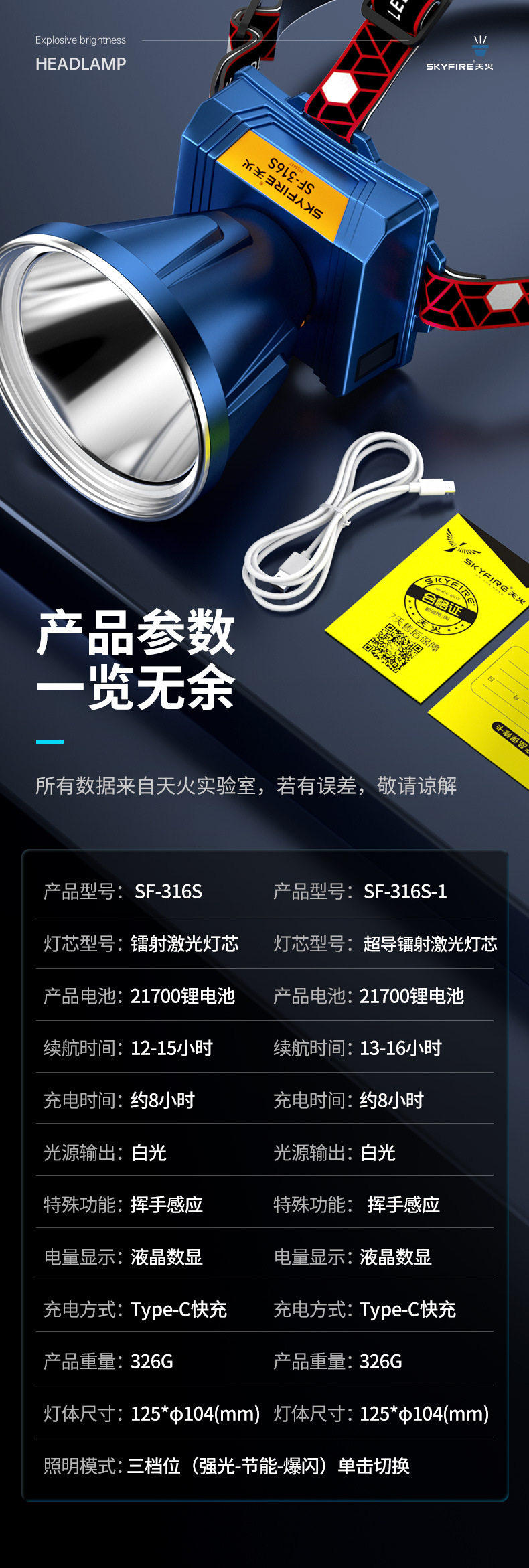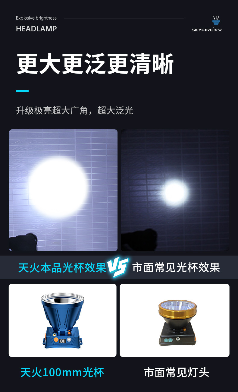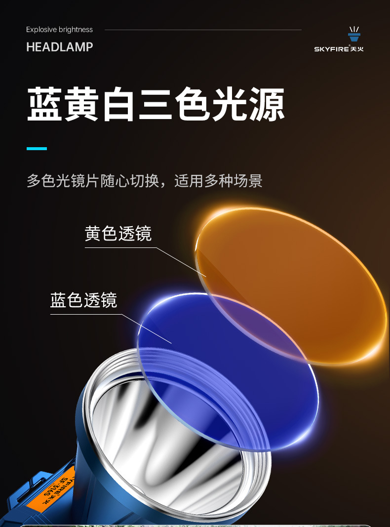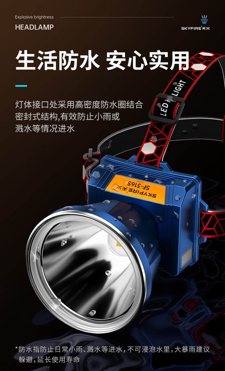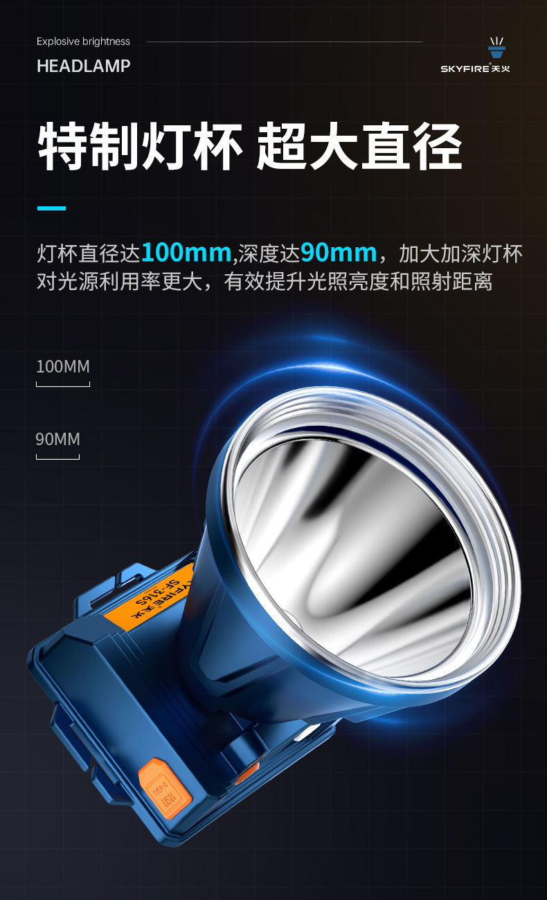 스카이 파이어 강한 전조등 충전 슈퍼 밝은 헤드 장착 손전등 장거리 야외 유도 슈퍼 긴 내구성 리튬 배터리 광부의 램프