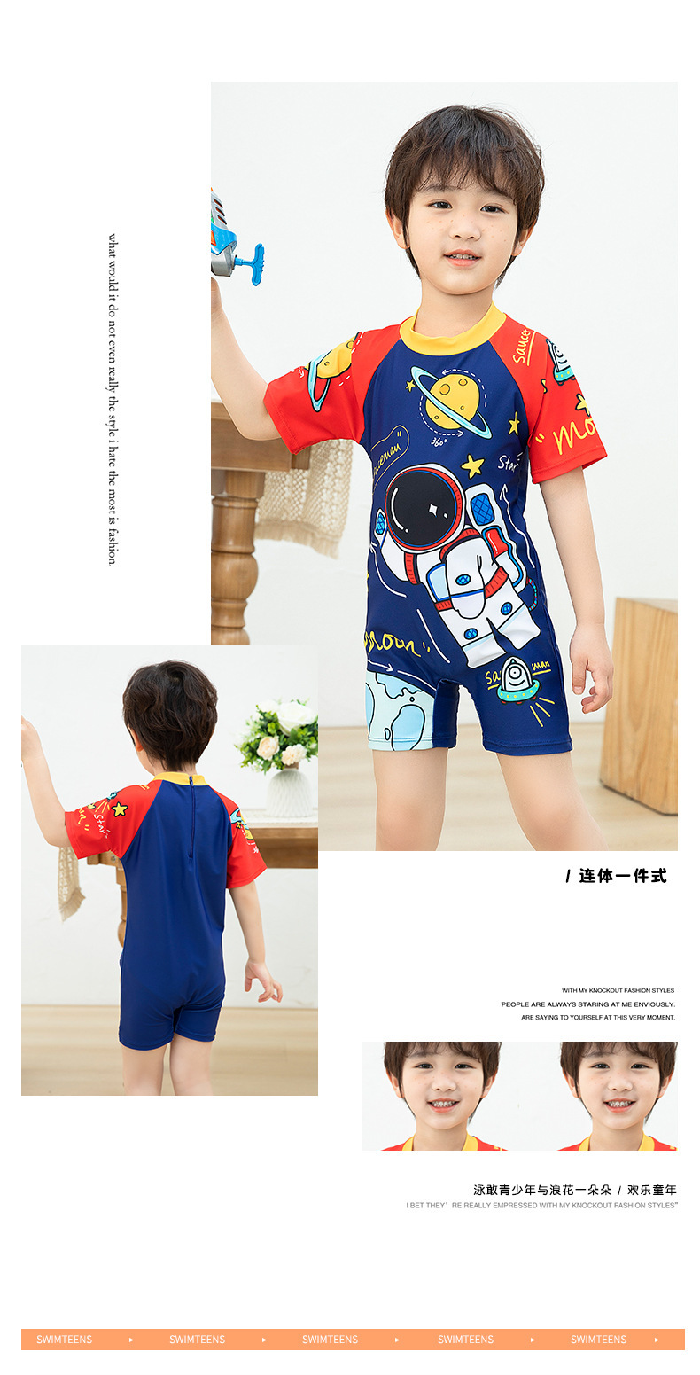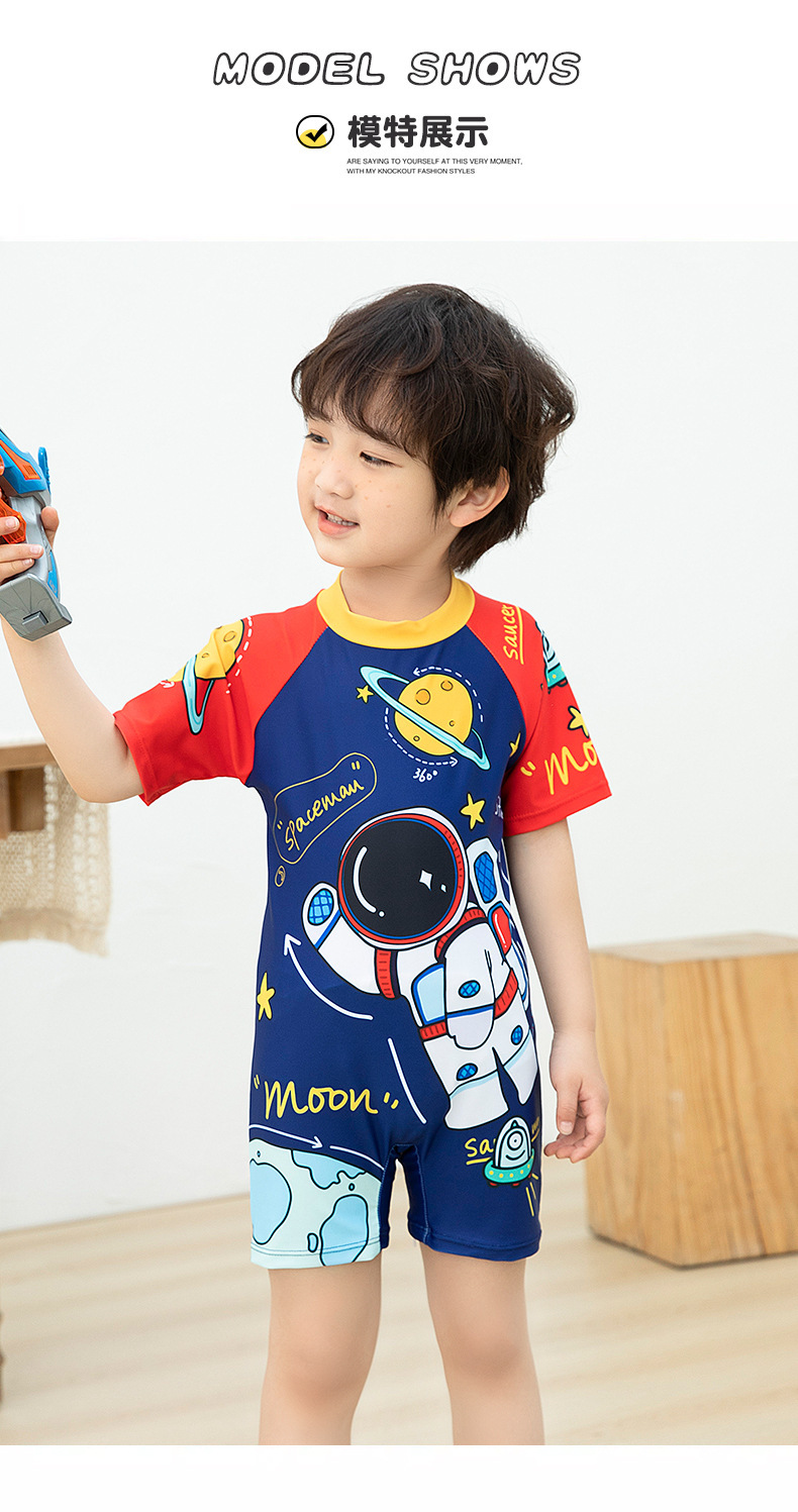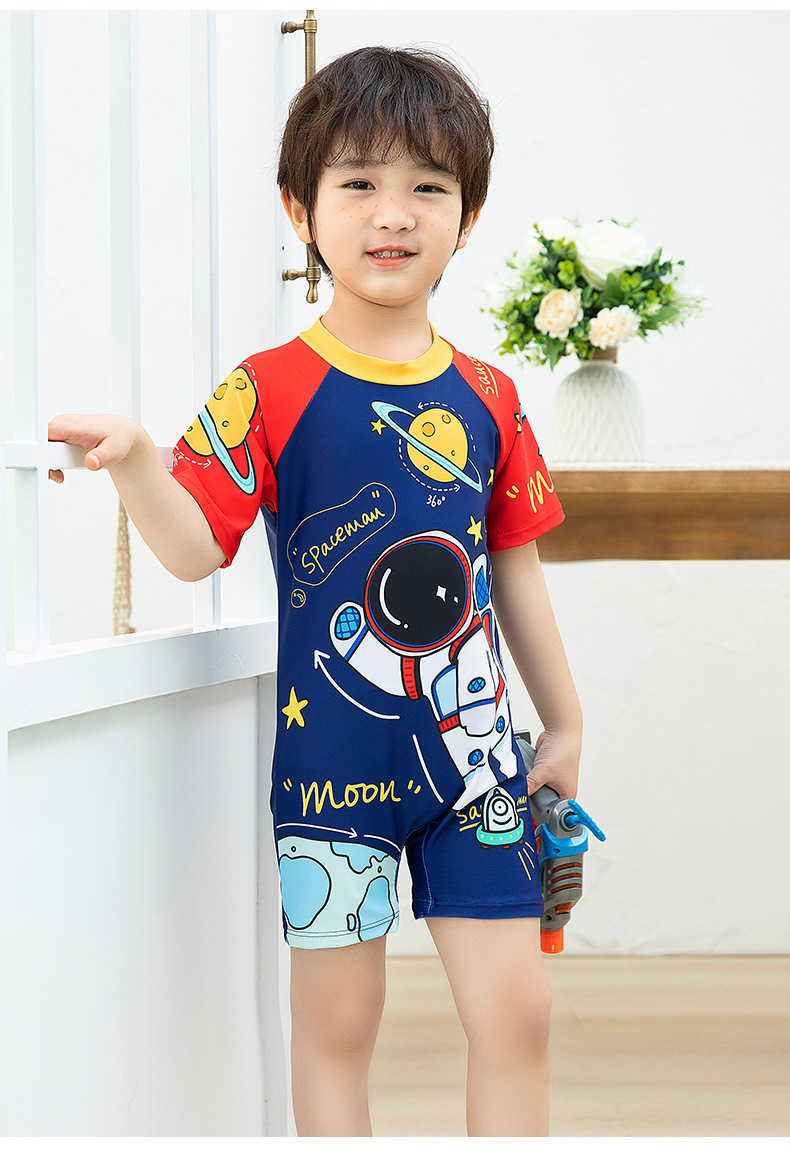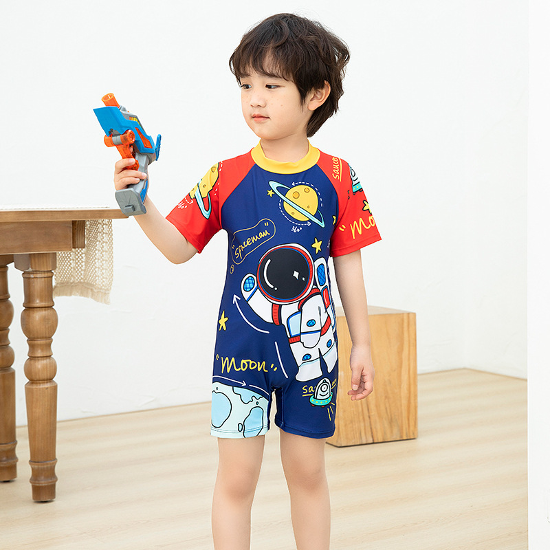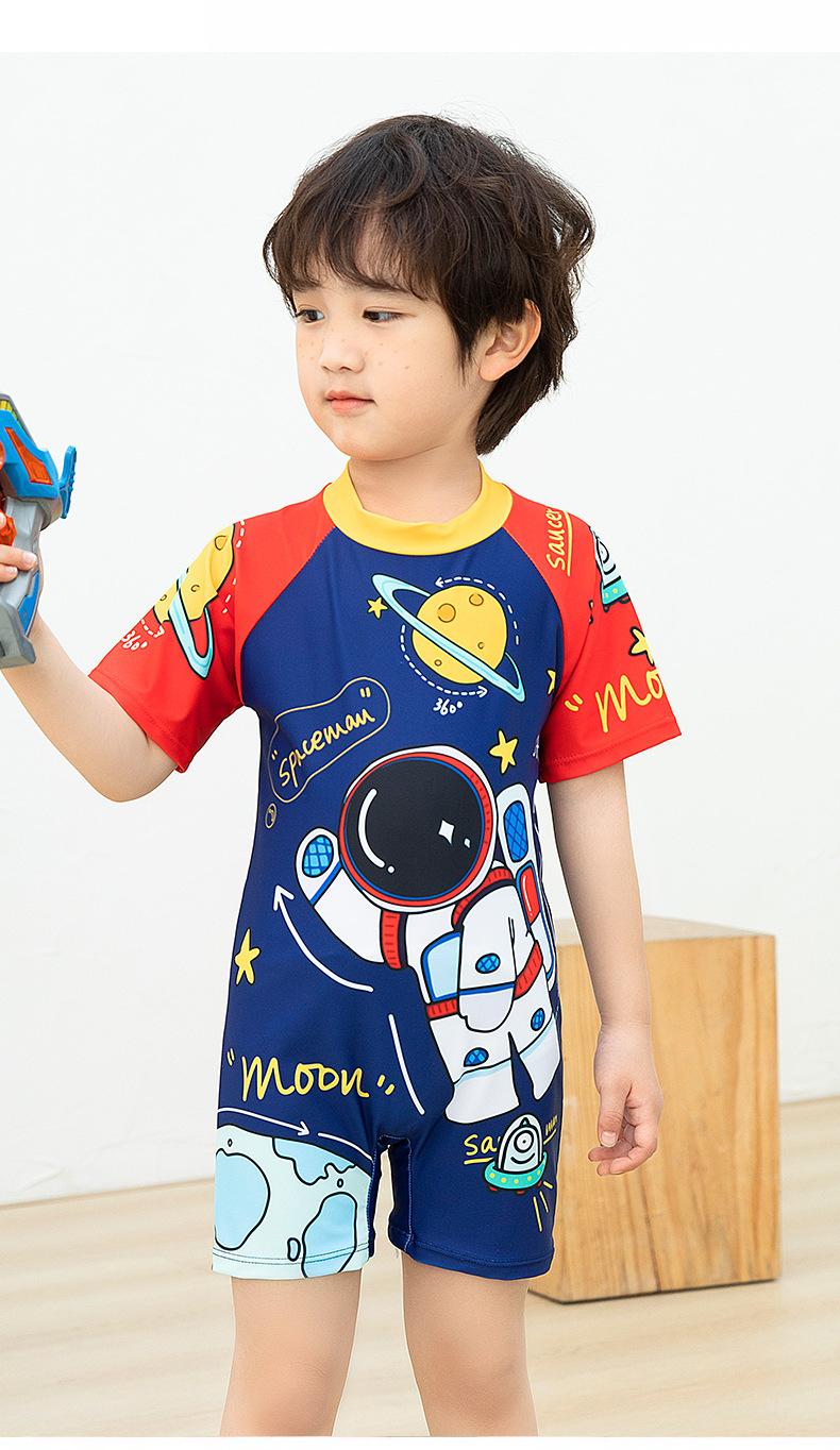 국경 간 어린이 수영복 여름 새로운 원피스 반소매 복서 만화 우주 비행사 아기 소년 수영복스토어 가기