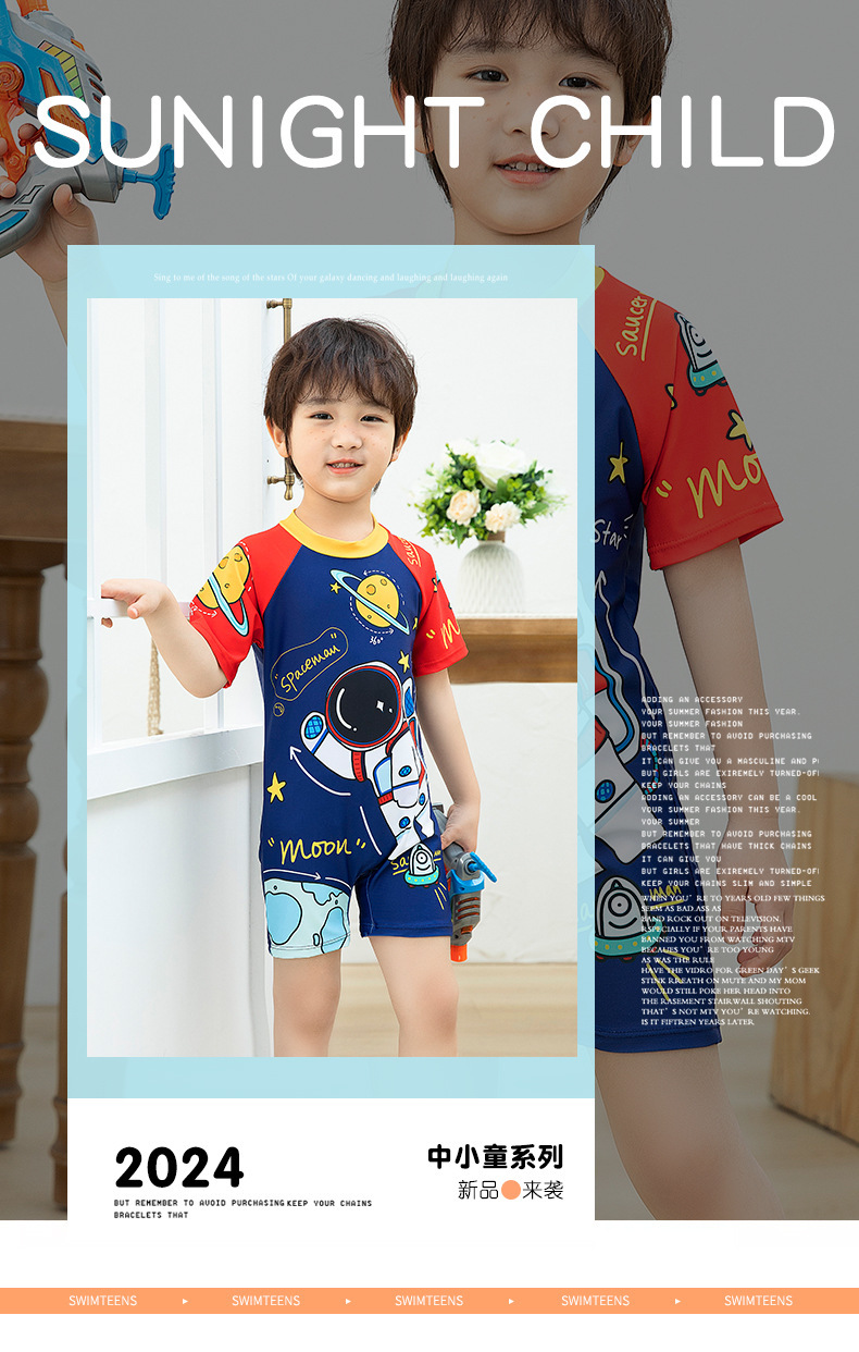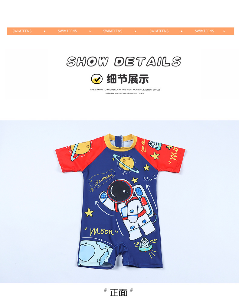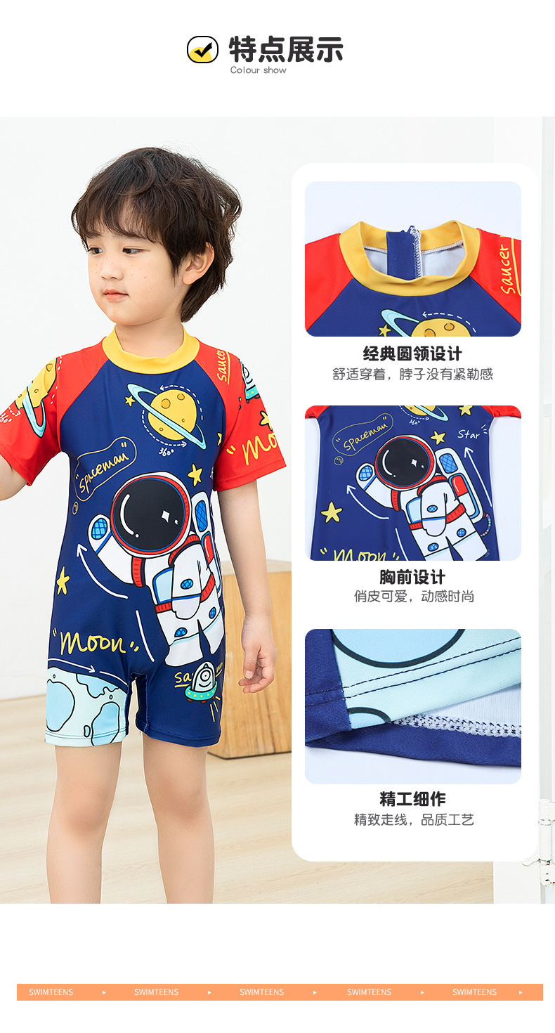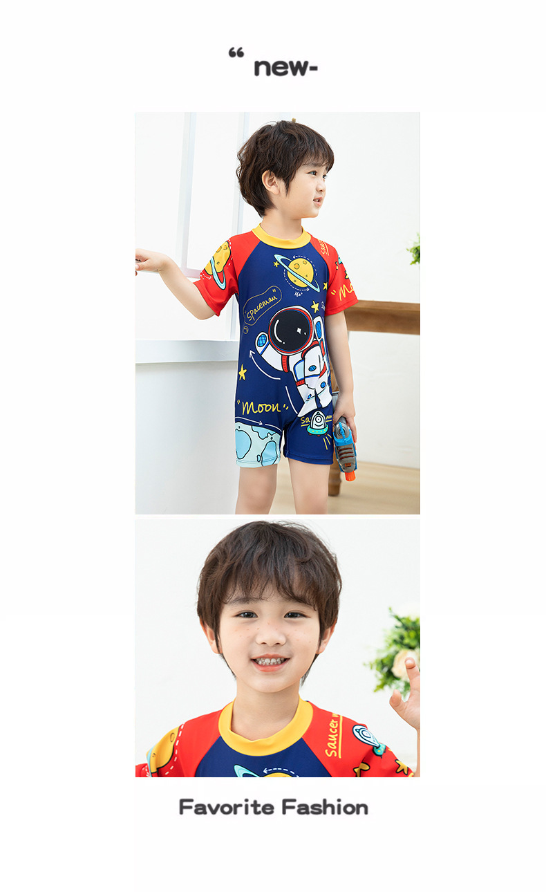 국경 간 어린이 수영복 여름 새로운 원피스 반소매 복서 만화 우주 비행사 아기 소년 수영복스토어 가기