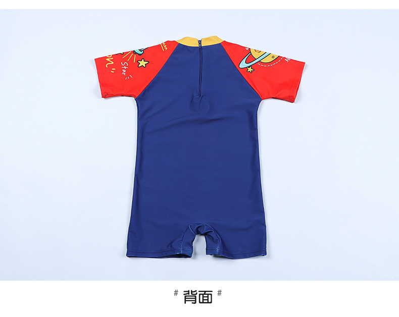 국경 간 어린이 수영복 여름 새로운 원피스 반소매 복서 만화 우주 비행사 아기 소년 수영복