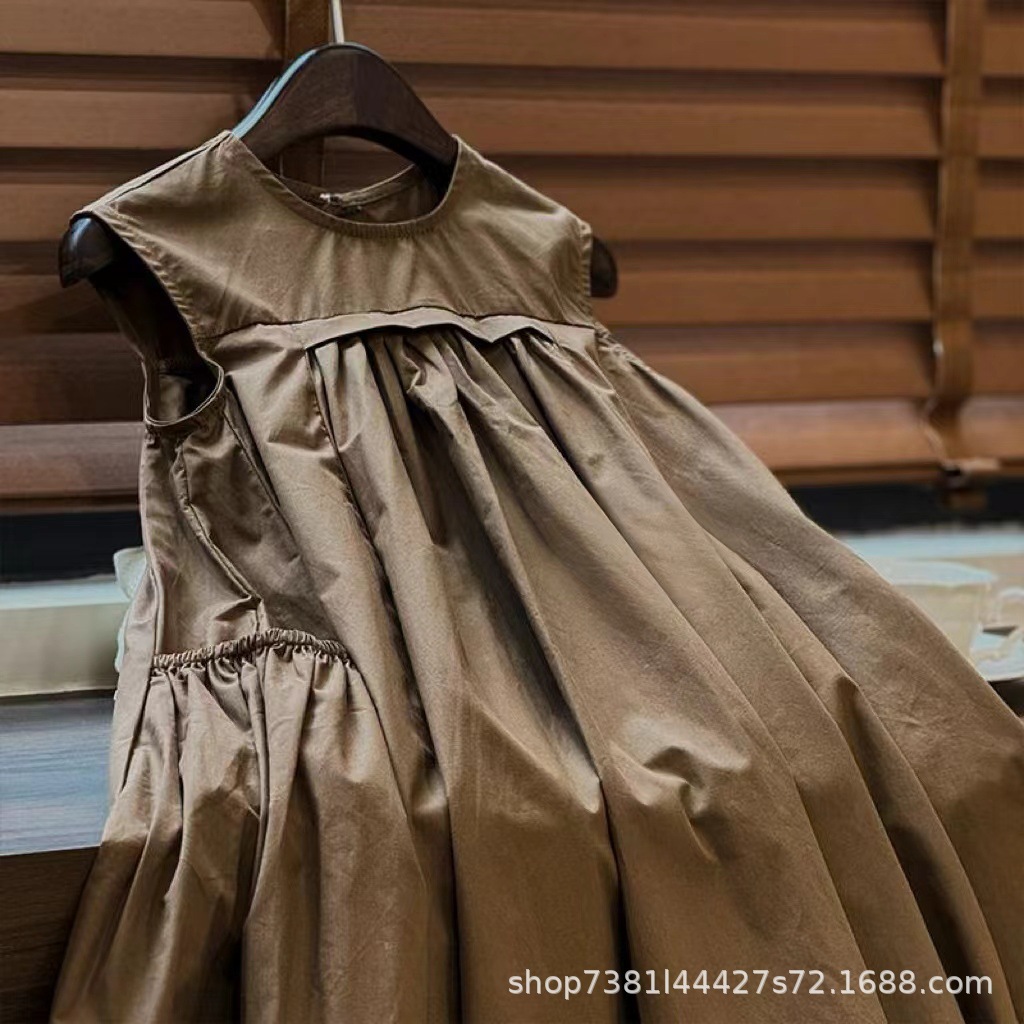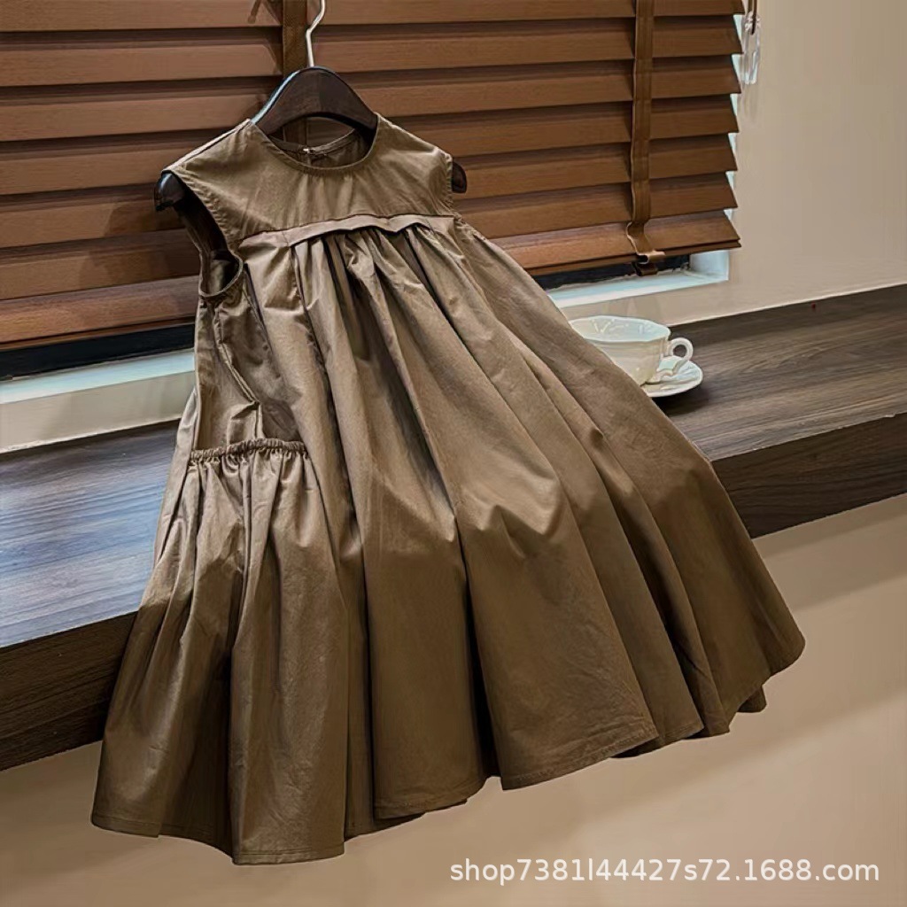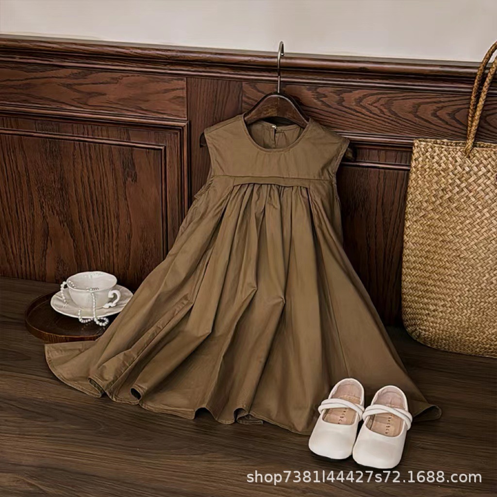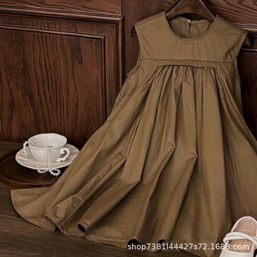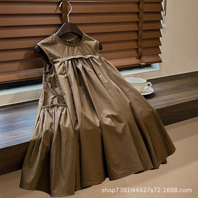 소녀 여름 새로운 패션 단색 중간 길이 모리 스타일 기질 미디어와 큰 어린이 민소매 조끼 원피스