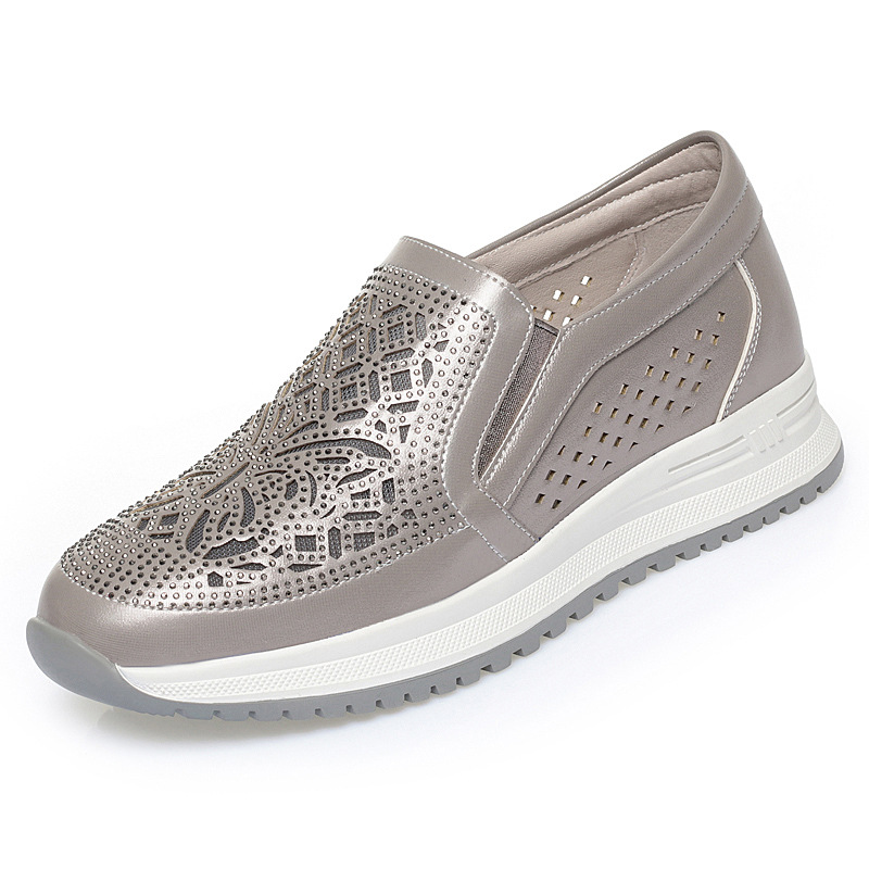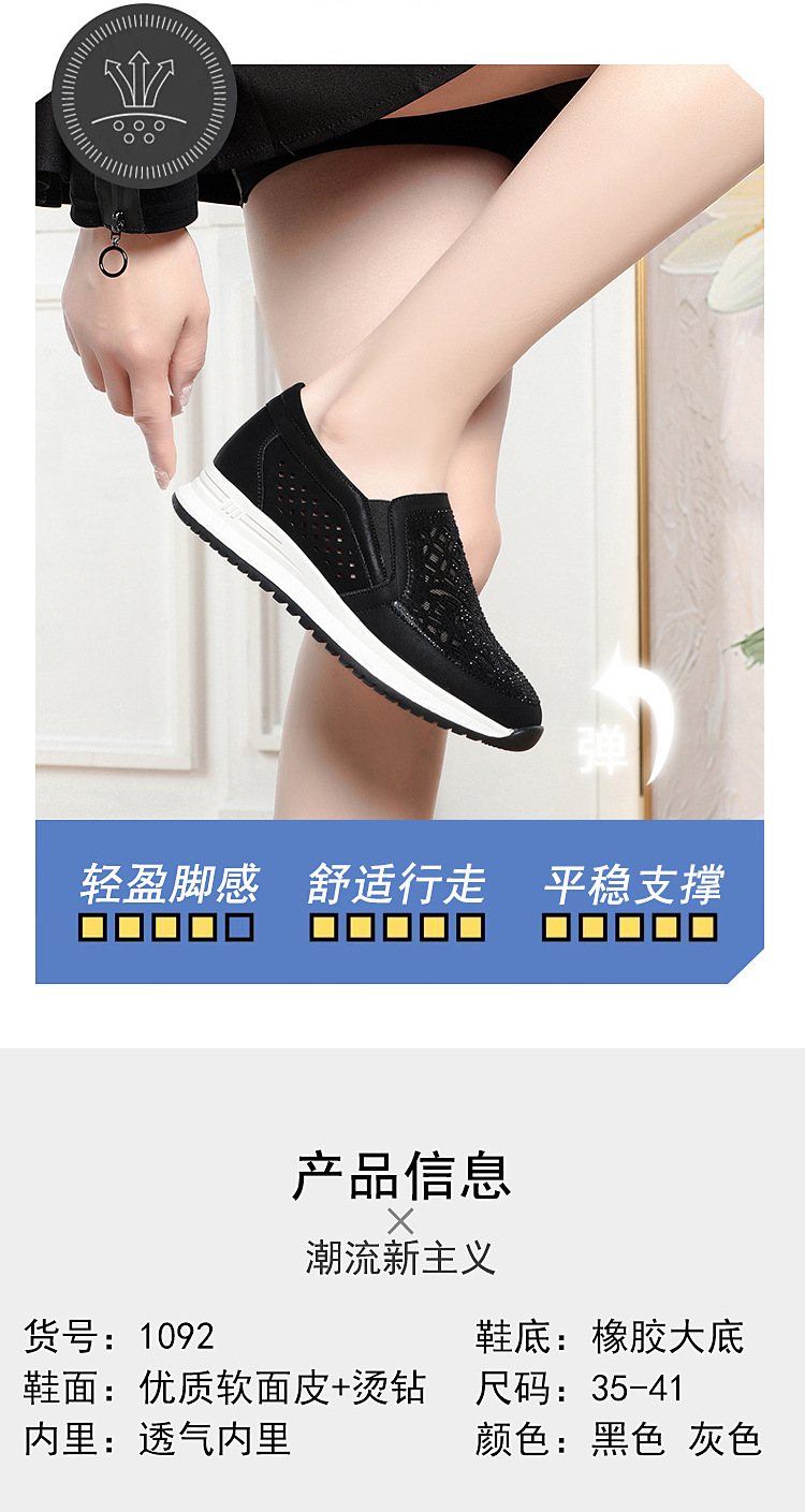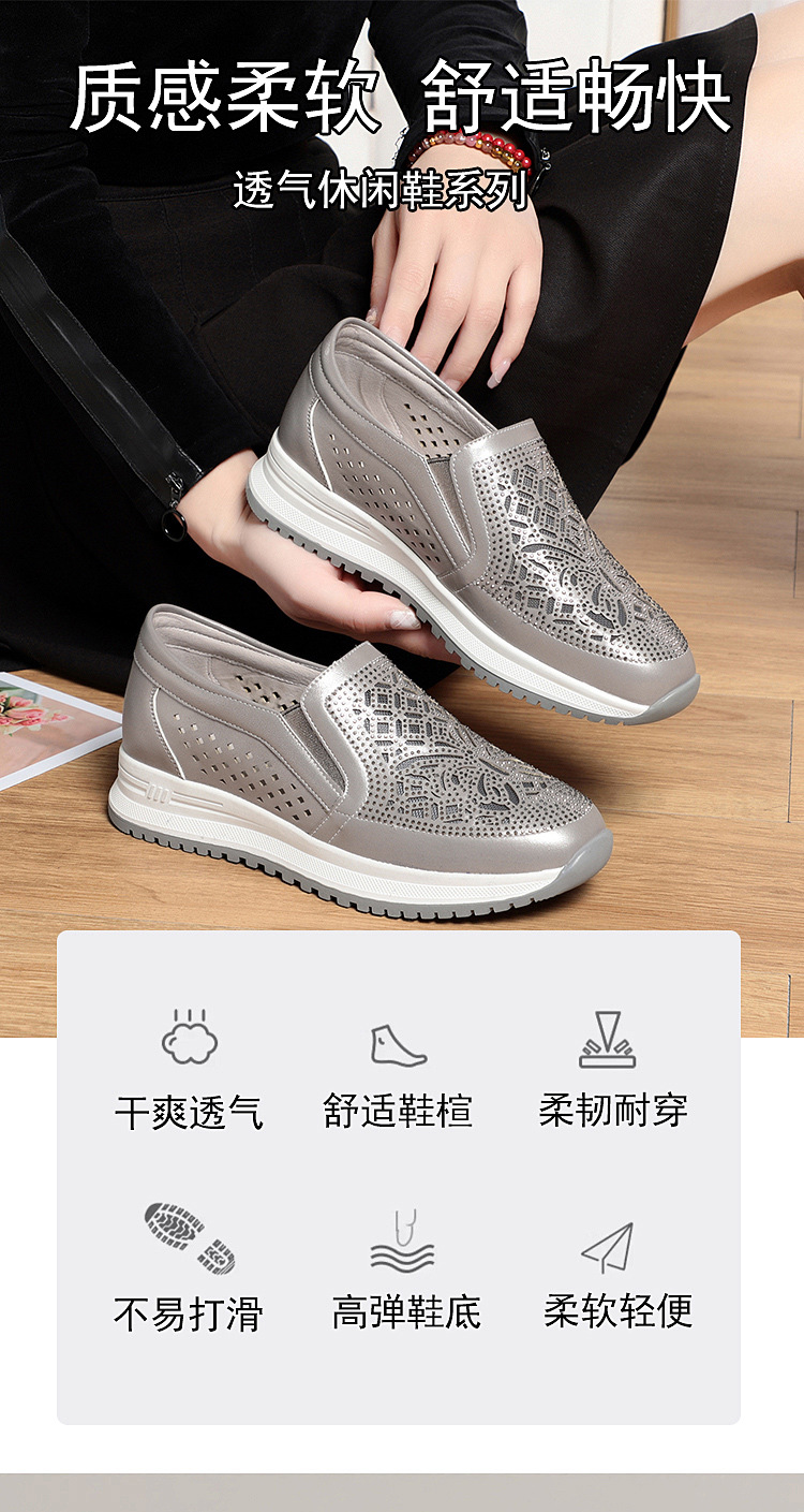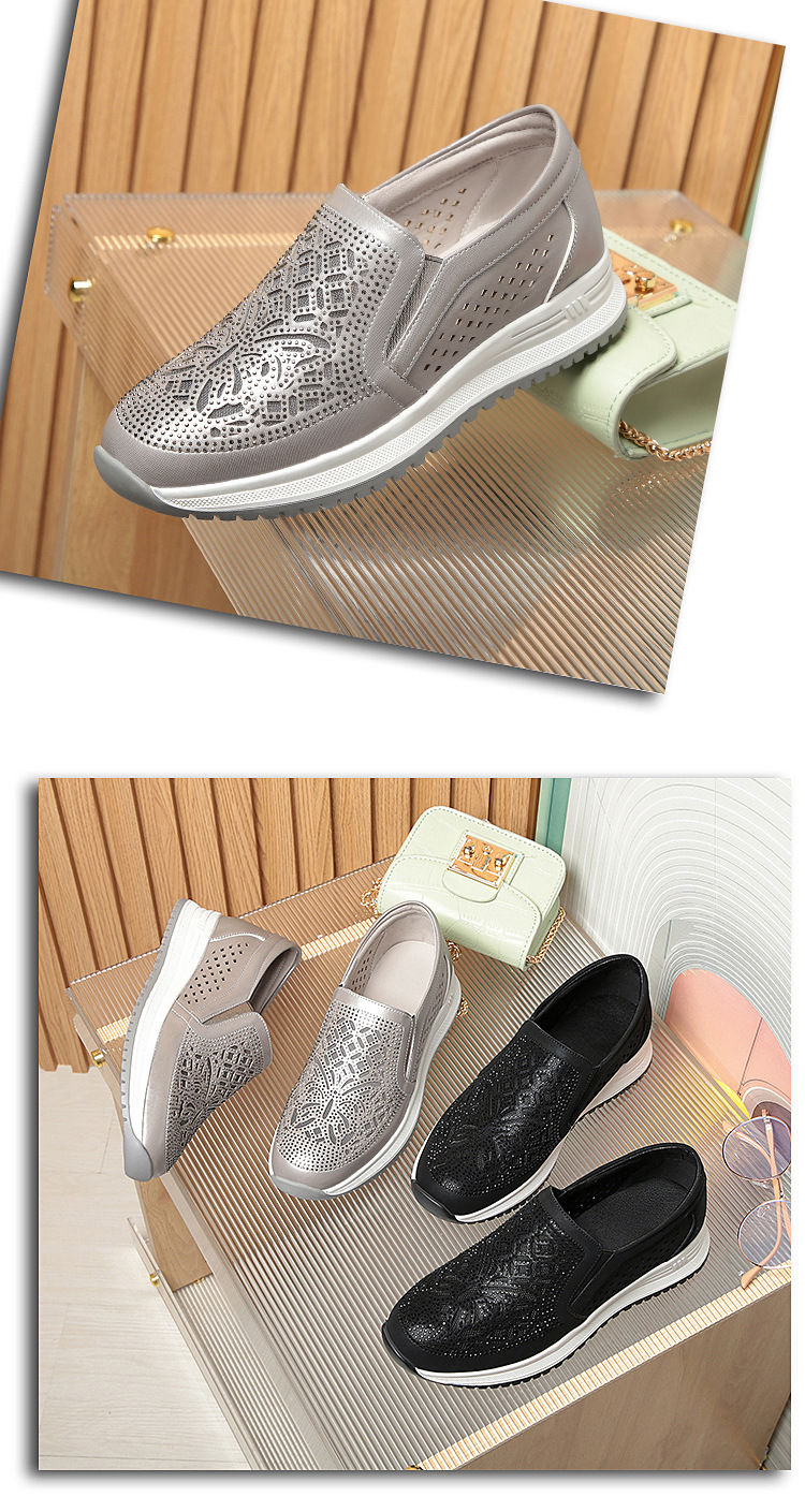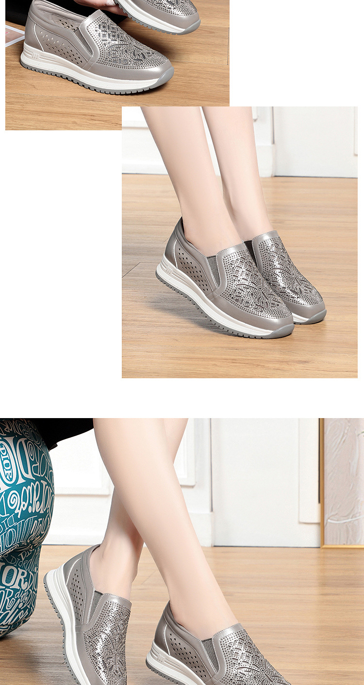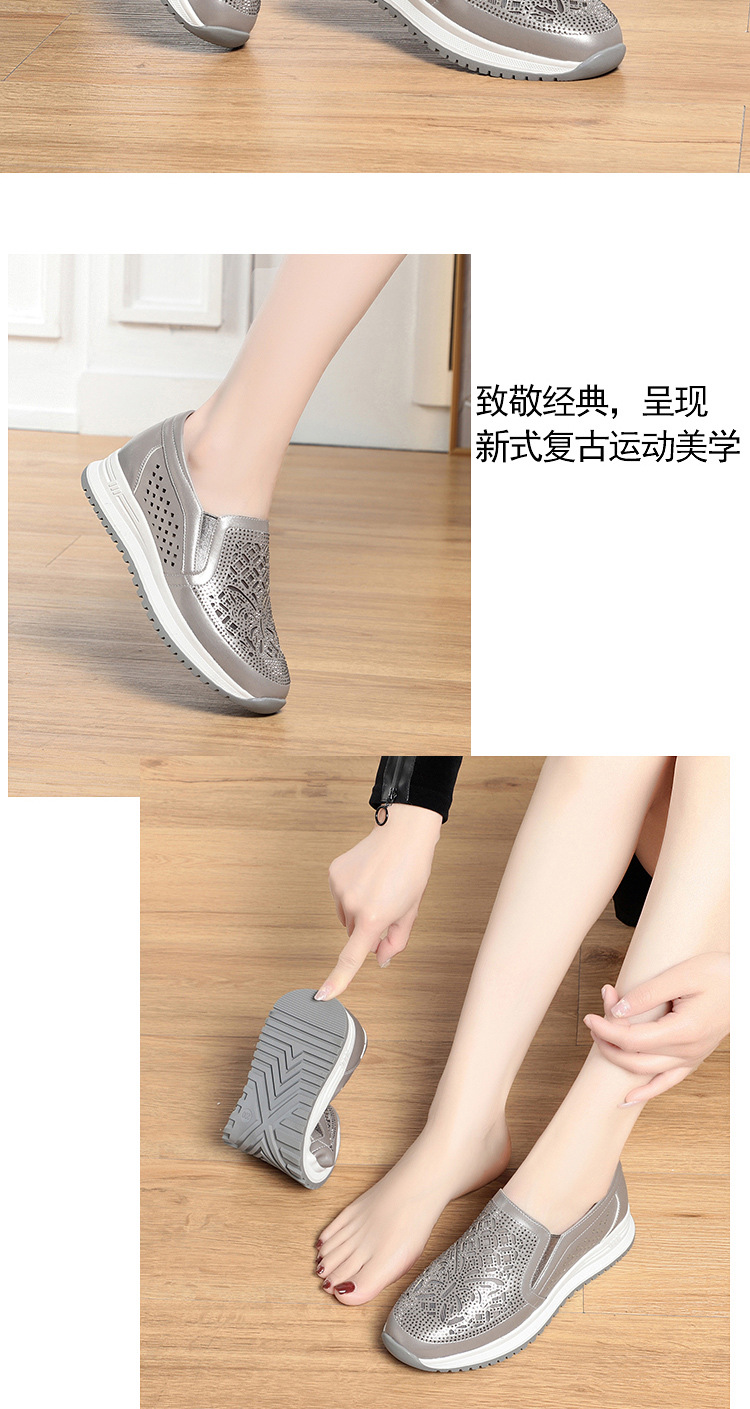 새로운 봄과 가을 부드러운 가죽 부드러운 바닥 편안한 로우 힐 라운드 토 홀 신발 스포츠 캐주얼 슬립 온 신발 중년 및 노인 어머니