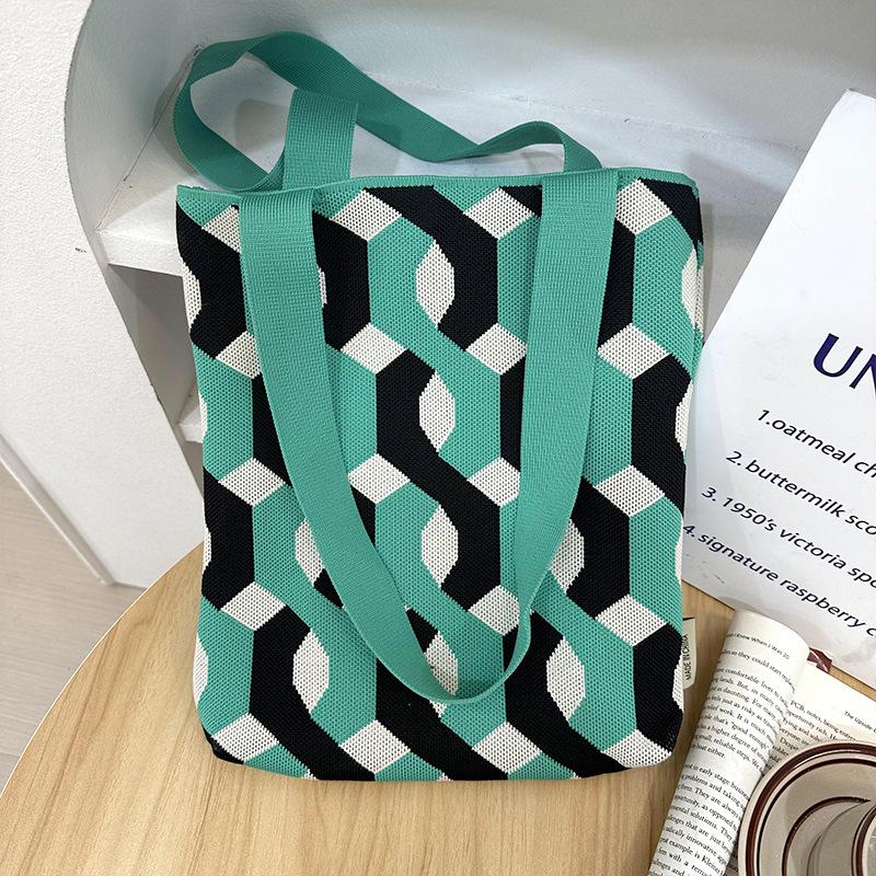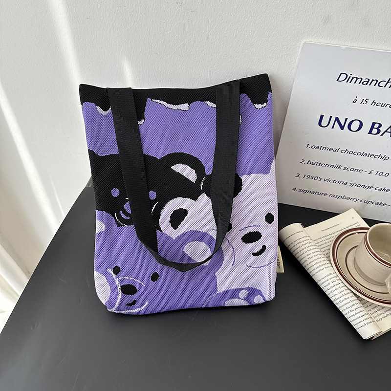 니트 숄더백 한국 스타일 짠 패션 만화 다용도 대용량 학생 통근 도시락 튜토리얼 핸드백