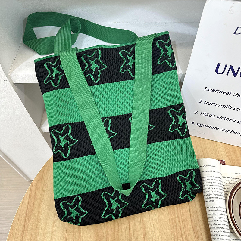 니트 숄더백 한국 스타일 짠 패션 만화 다용도 대용량 학생 통근 도시락 튜토리얼 핸드백스토어 가기