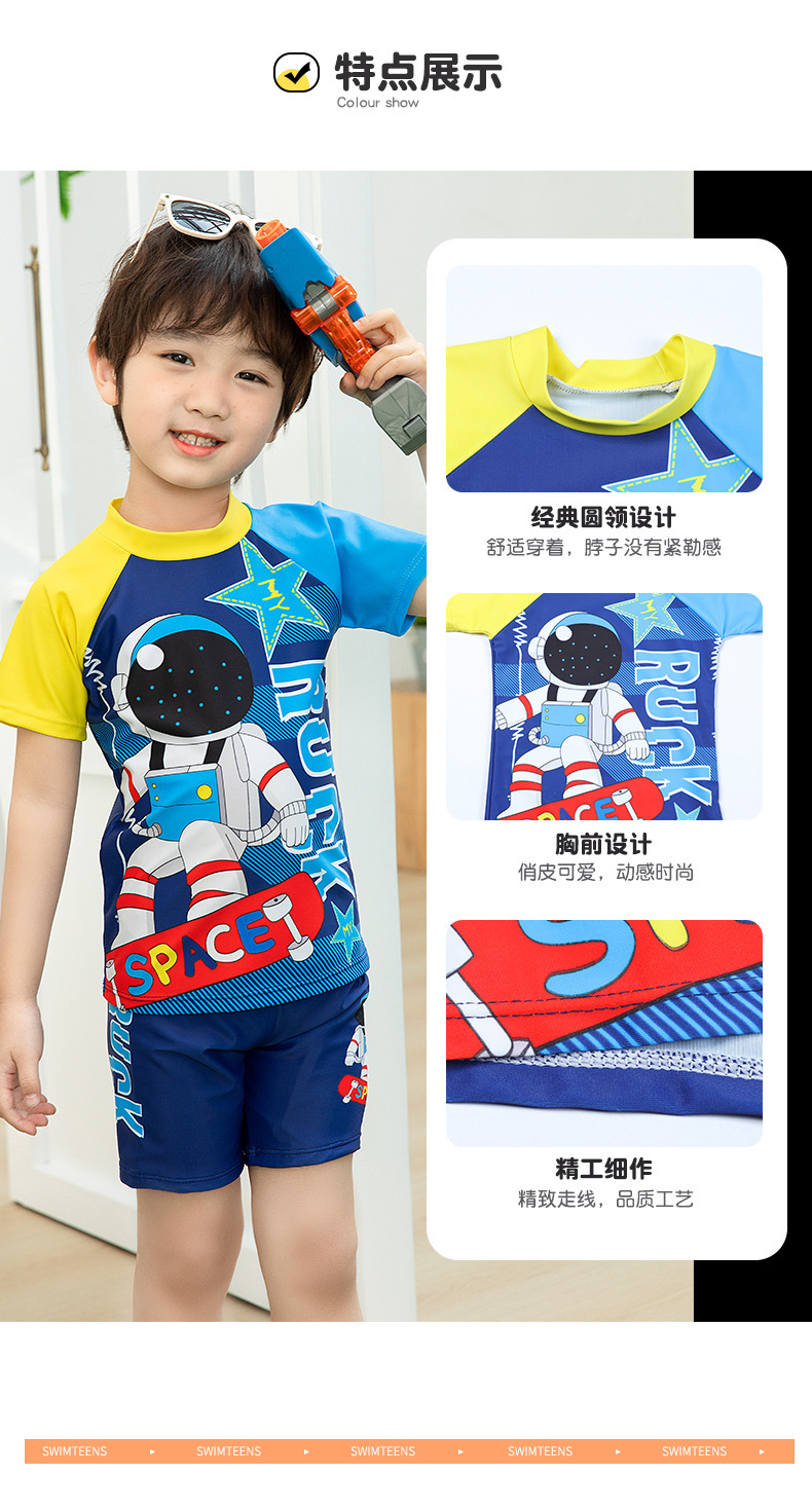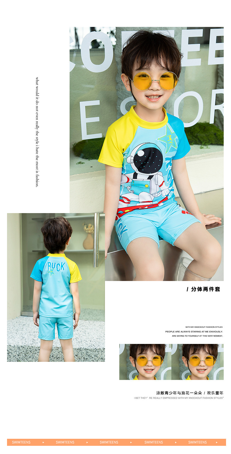 만화 분할 복서 반바지 어린이 수영복 귀여운 중형 및 어린이 소년 태양 보호 소년 수영복 수영 트렁크 세트스토어 가기