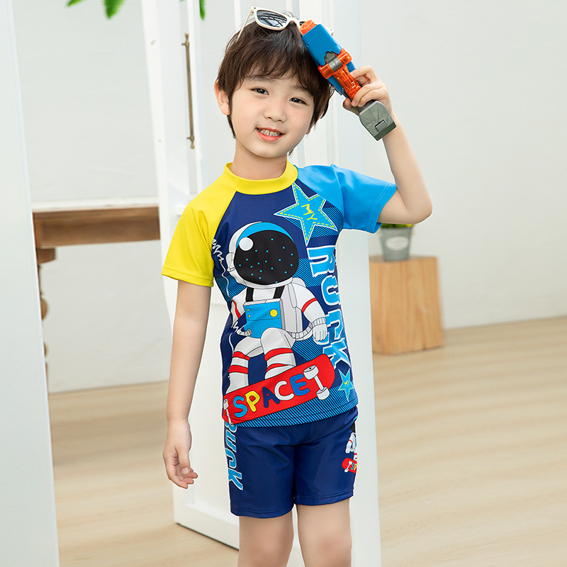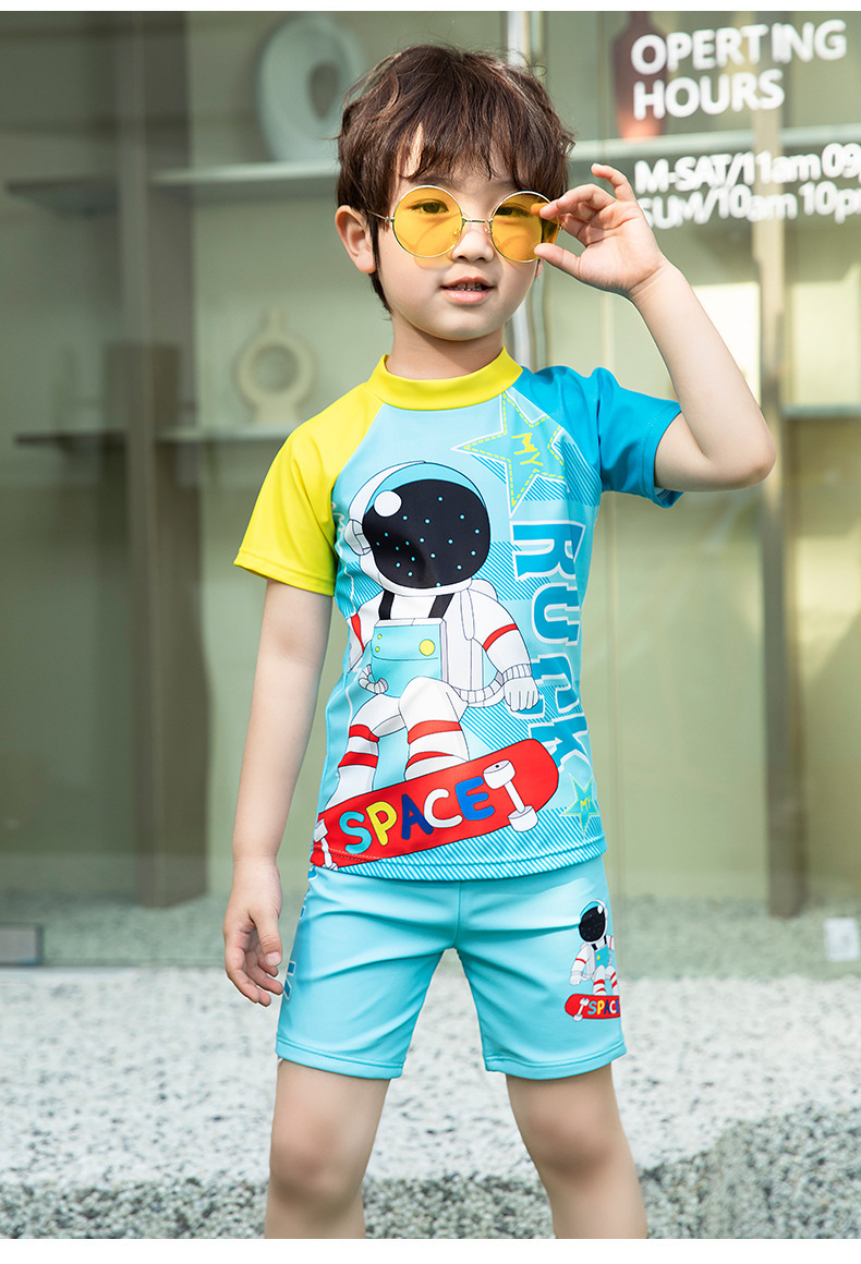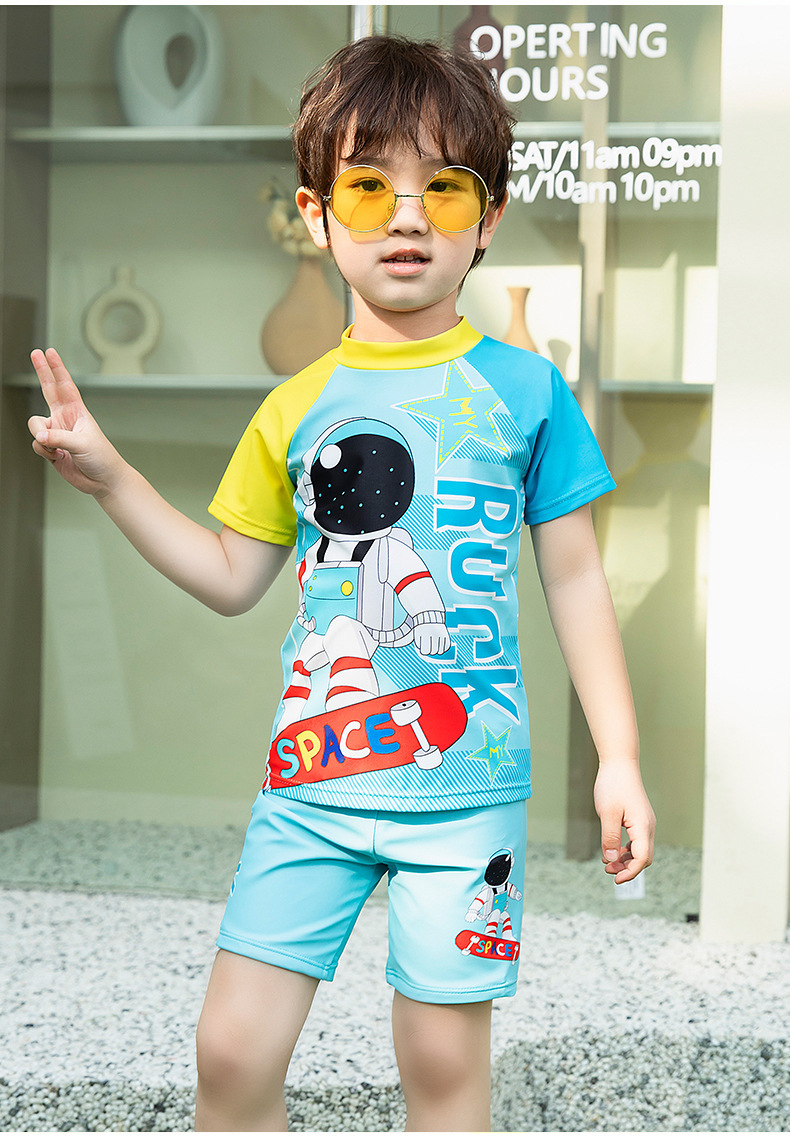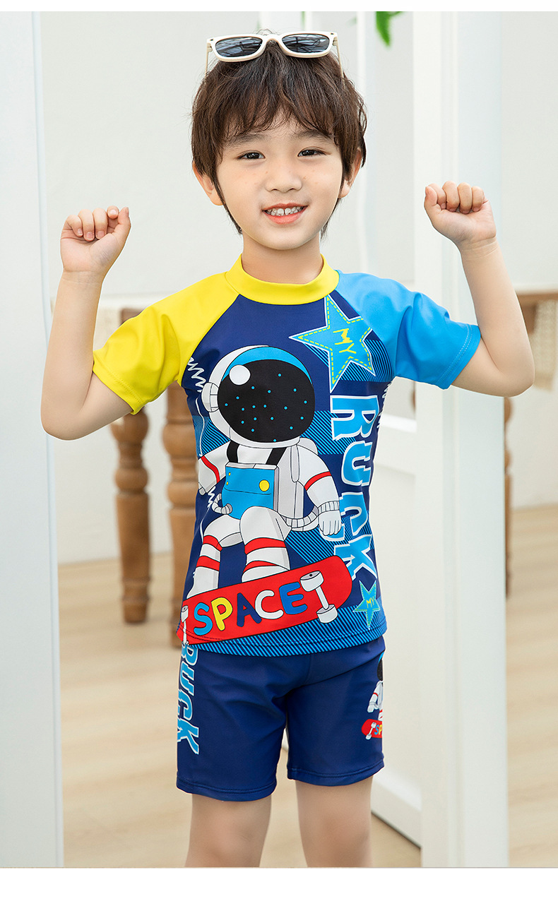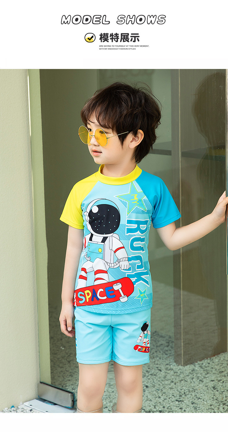 만화 분할 복서 반바지 어린이 수영복 귀여운 중형 및 어린이 소년 태양 보호 소년 수영복 수영 트렁크 세트
